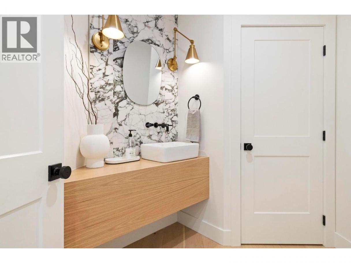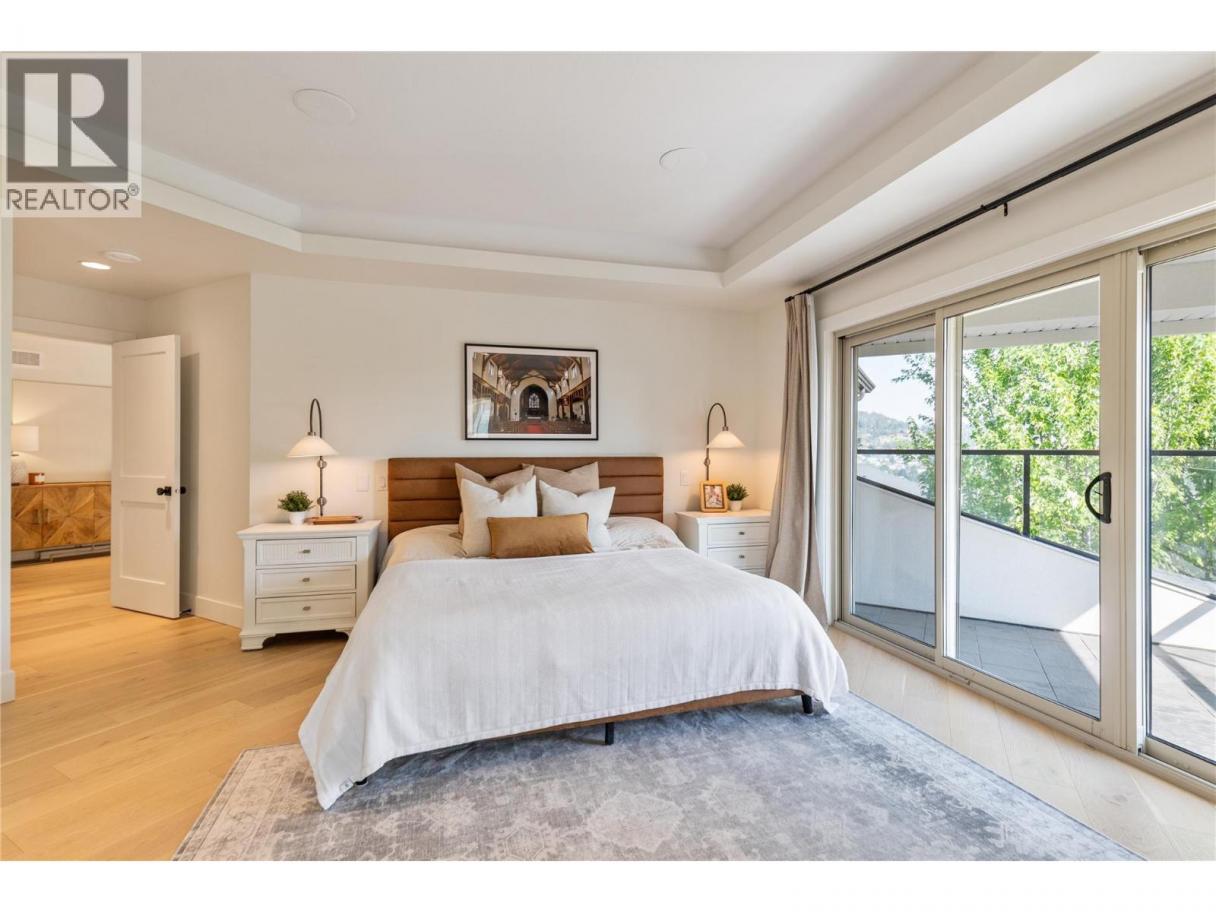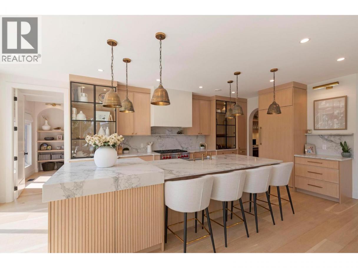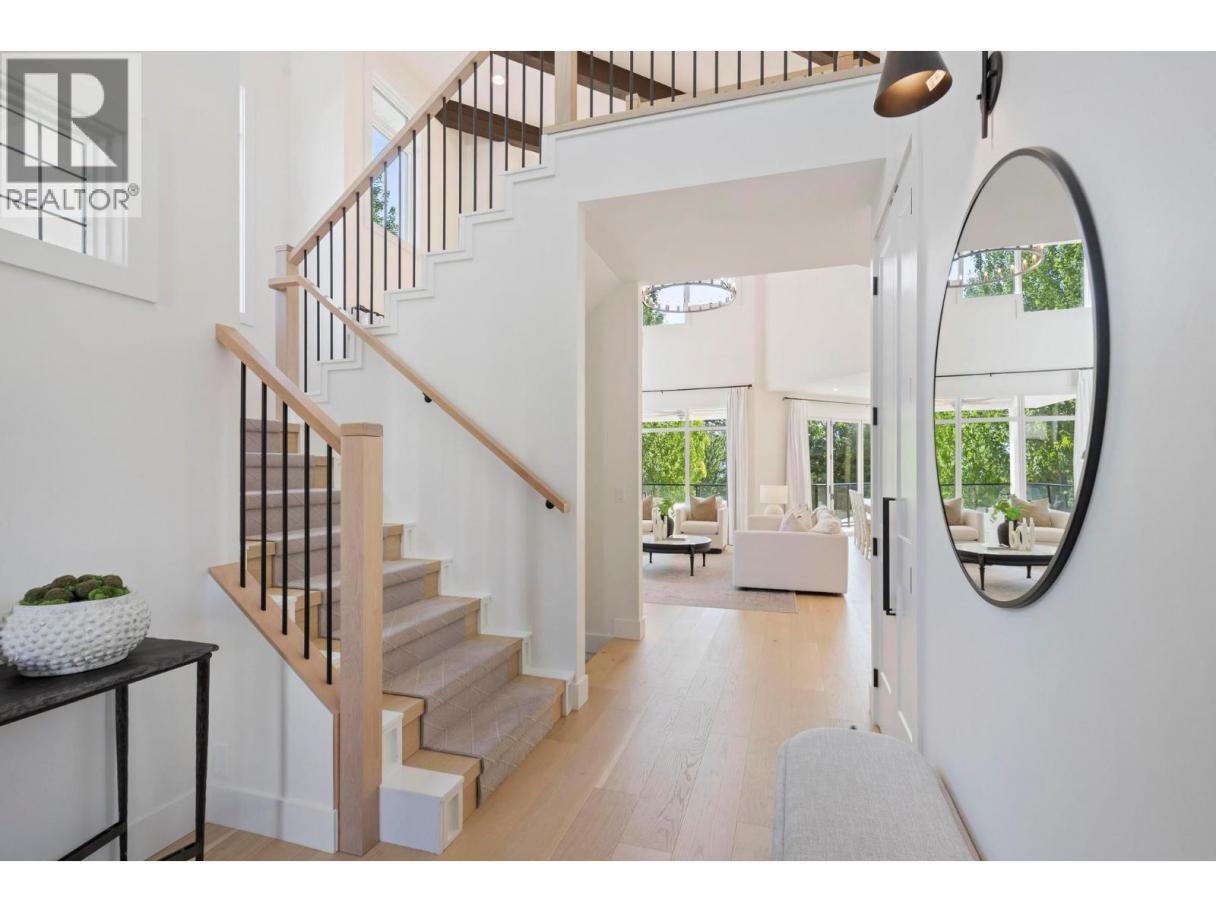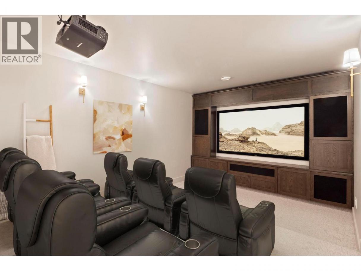 This exceptional luxury home is nestled on a quiet cul de sac in Kelowna’s prestigious Glenmore neighbourhood and was reimagined in 2023 by an award winning design and build team. Offering over 5,000 sq ft, it is ideal for elegant entertaining and multigenerational living. The stunning living room features soaring 18 foot vaulted ceilings, wide plank white oak flooring, statement wood beams, archways, and refined European inspired finishes. The custom chef’s kitchen includes integrated appliances, a six burner Wolf gas range, custom white oak cabinetry, quartz counters and backsplash, and an oversized walk in pantry. A main floor office with custom built ins overlooks the backyard. Upstairs are four generous bedrooms, including a primary retreat with private balcony, spa inspired ensuite, soaker tub, walk in shower, and walk in closet. The private backyard oasis offers a saltwater pool, hot tub, stamped concrete patio, gas fire pit, lush landscaping, and a full size basketball court that converts to a winter skating rink. RV parking and space for boats or trailers is included. Additional highlights include a movie room, private gym, and a flexible one or two bedroom walkout in law suite that is ideal for family, guests, or a mortgage helper. Minutes to downtown Kelowna and walking distance to schools, parks, and shopping, with mountain and sunset views and Sonos sound throughout. A rare Glenmore offering that combines luxury, lifestyle, and functionality. (id:6769)