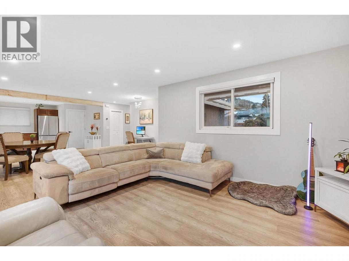 Set in the heart of the Black Mountain Community, this beautifully updated home offers privacy, flexibility, and exceptional outdoor living on a large, mature lot. Surrounded by established trees and open space, the setting is ideal for families, gardeners, or those seeking room to add a future shop while maintaining privacy. The main level has been thoughtfully remodelled into a bright, open-concept layout featuring two bedrooms and a stunning modern 5-piece bathroom. The living, dining, and kitchen areas flow seamlessly together, creating a welcoming space filled with natural light. Step directly out to a full-width deck spanning the back of the home, perfect for entertaining, relaxing, and enjoying the peaceful surroundings. The lower level offers excellent versatility with a fully self-contained 1 bedroom + den suite, complete with its own kitchen, living area, laundry, and private entrance. Covered and enclosed patio areas on this level provide additional outdoor living space with privacy and year-round usability. Located minutes from parks, trails, schools, and the Black Mountain Golf Club, this property combines lifestyle, comfort, and future potential in one of Kelowna’s most sought-after neighbourhoods. Located minutes from parks, trails, schools, and golf, with easy access to Big White and downtown, this home offers space, privacy, and flexibility in a true community setting. Love Where You Live! (id:6769)