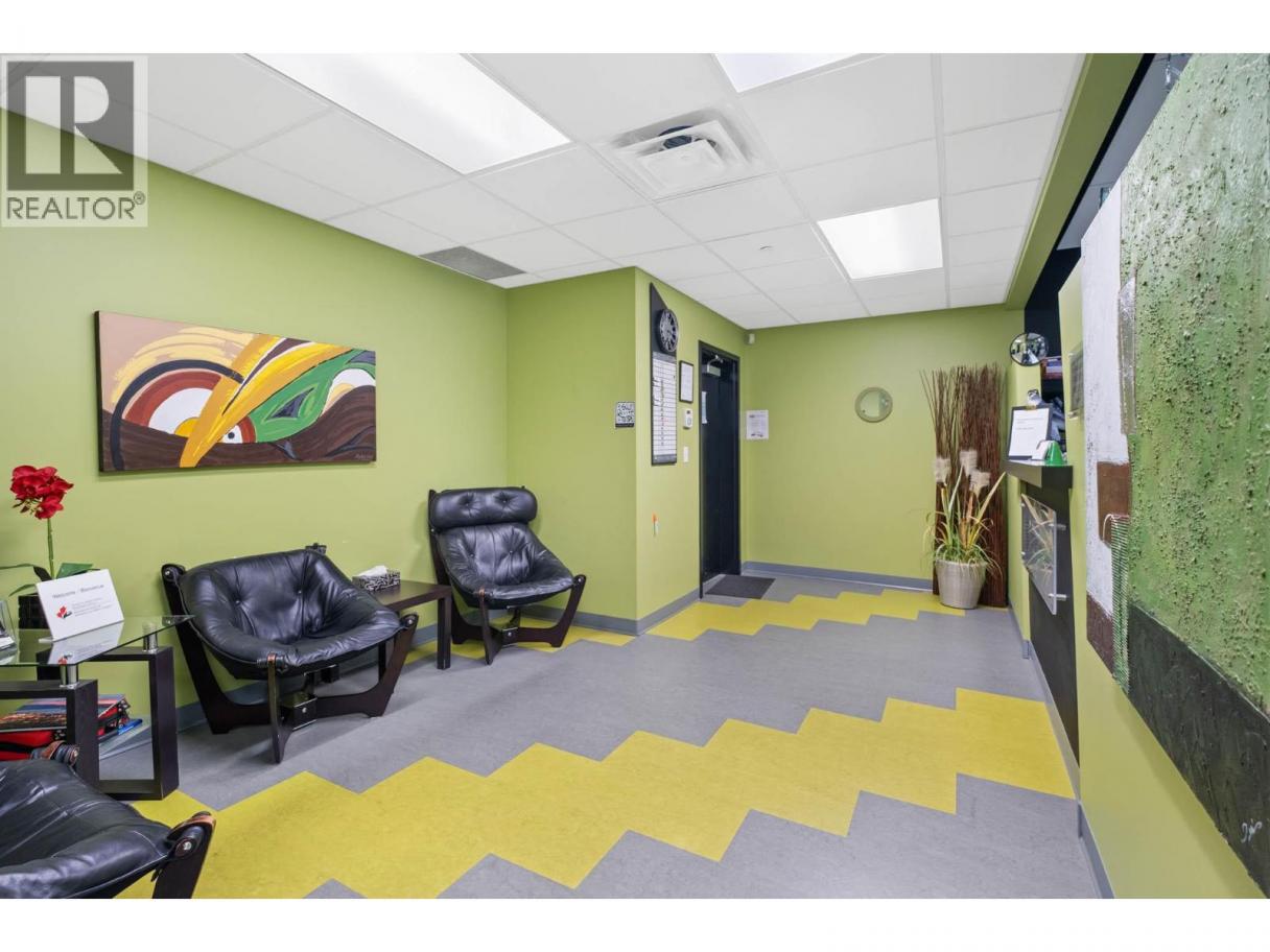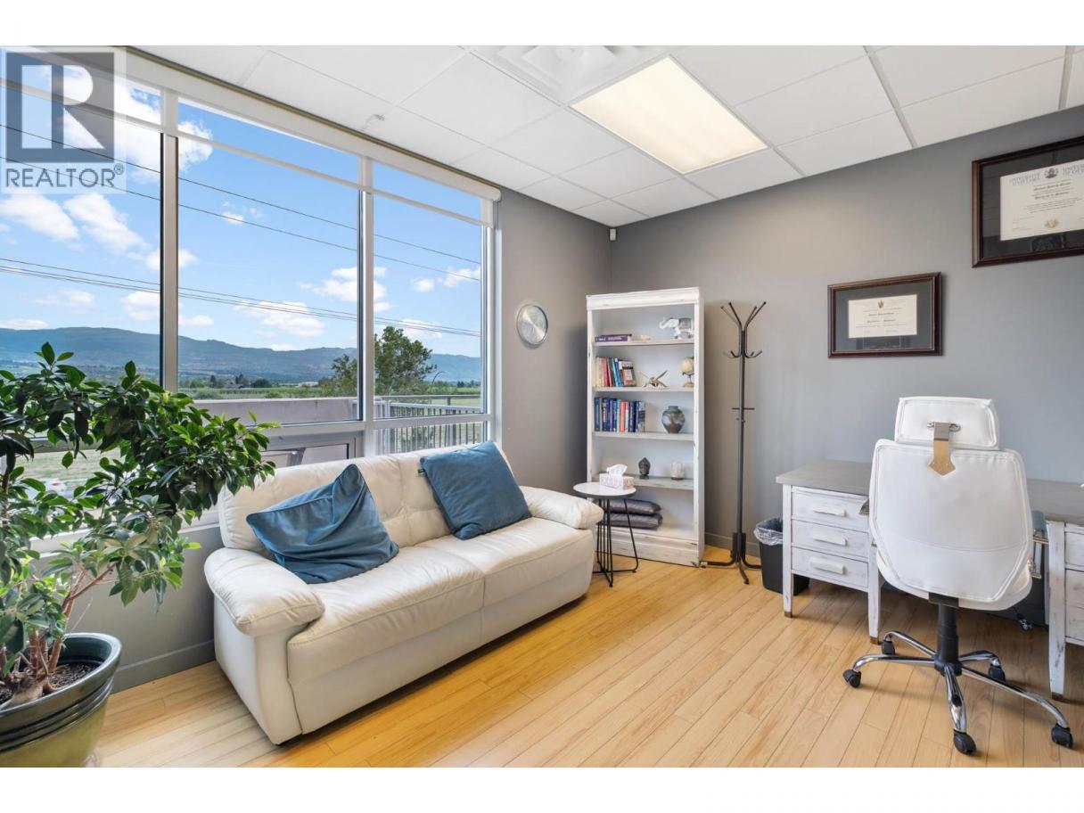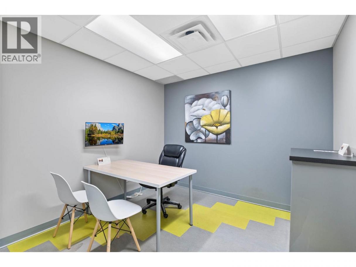 Second-floor Invue commercial unit offering approximately 1,694 sq. ft. in a concrete high-rise. The well-designed floor plan includes a welcoming reception area, 3 private offices, a large open area presently set up in cubicles and a dedicated staff room, complemented by eye catching designer finishes and colours throughout. Ideal for a wide range of professional and service-oriented uses including medical or dental clinic, physiotherapy or wellness practice, accounting or law office, real estate or insurance brokerage, tech or consulting firm, or boutique professional services (subject to applicable zoning). A key advantage is the built-in clientele from the building’s 92-unit residential component, providing consistent foot traffic and convenience-driven demand. The property is exceptionally well positioned in central Kelowna’s midtown core, just steps from Orchard Park Shopping Centre and directly behind Orchard Plaza, placing it within one of the city’s busiest commercial and retail corridors. Surrounded by major employers, transit routes, and established neighbourhoods, this location offers excellent accessibility for both clients and staff, with easy connections to Downtown, Highway 97, and surrounding communities. Additional features include outdoor space, access to common washrooms, two designated underground parking stalls, and visitor parking available on site. An opportunity to secure a high-quality commercial space in a central location. (id:6769)
