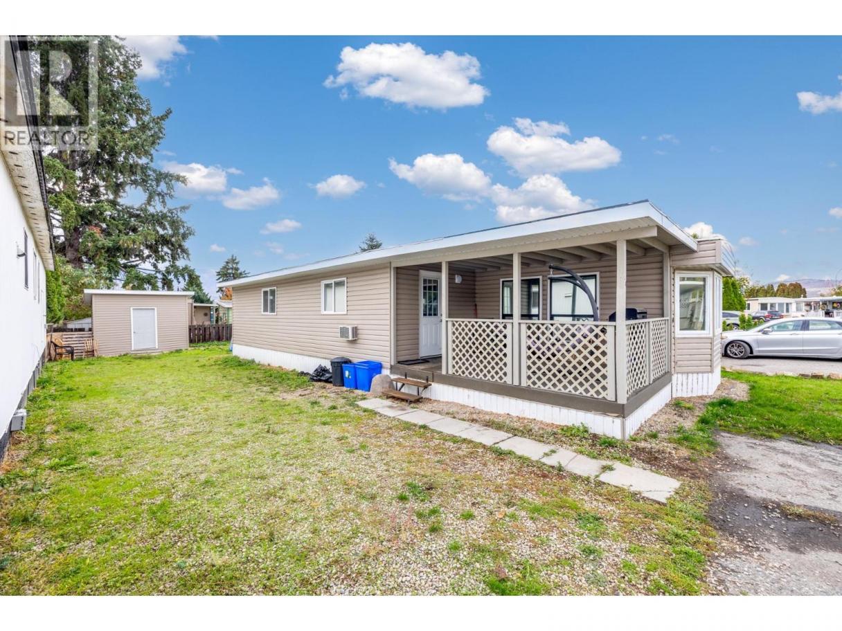 Welcome to this beautifully updated 2-bedroom, 1-bathroom manufactured home, located in the family- friendly section of Westgate Village. Thoughtfully renovated throughout, this home features modern kitchen cabinetry with granite countertops, and a refreshed bathroom complete with updated vanity, shower, toilet, and tilework. The freshly painted living area is bright and welcoming, complemented by a cozy wood-burning stove for added warmth and charm. The spacious primary bedroom includes a generous 65 sq.ft. walk-in closet that can easily double as a home office or den. Step outside to enjoy the covered deck, perfect for year-round relaxation, as well as ample parking and a large storage shed for your outdoor gear and extras. Centrally located near golf courses, shopping, wineries, restaurants, schools, and scenic walking and hiking trails. You’re also just minutes away from beautiful beaches and parks along Okanagan Lake. Enjoy the best of the Okanagan lifestyle; affordable, convenient, and move-in ready. (id:6769)