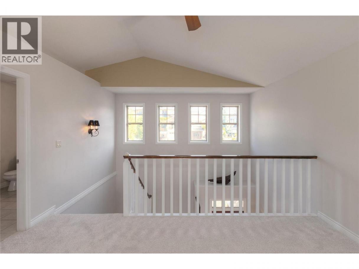 Fantastic Glenmore residence with sweeping views of Okanagan Lake, the city, and surrounding mountains. Set in a quiet, family-friendly neighbourhood just minutes from downtown Kelowna, parks, trails, and schools, this home blends comfort, functionality with breathtaking scenery. The main level showcases soaring ceilings, arched entryways, and a striking stone fireplace feature wall in the living room, framed by oversized windows. A bright kitchen with shaker style cabinetry, raised breakfast bar, and the lakeview dining area flows seamlessly onto a full-length deck—perfect for al fresco dining and evening sunsets. The primary suite is a private retreat with direct deck access, a spacious walk-in closet, and a spa-inspired ensuite with soaker tub and glass shower. Upstairs, a loft-style family room and guest suite capture stunning vistas, while the walkout lower level offers a large recreation room with fireplace, wet bar, and access to a covered patio. Two additional bedrooms, a full bath, and abundant storage complete this floor. The tiered backyard offers mature landscaping, rockwork, and a flat grassy area, ideal for play or gardening. A double garage with epoxy floors and extra driveway parking adds practicality. This home delivers exceptional Okanagan living—where sparkling city lights meet tranquil mountain and lake views. (id:6769)