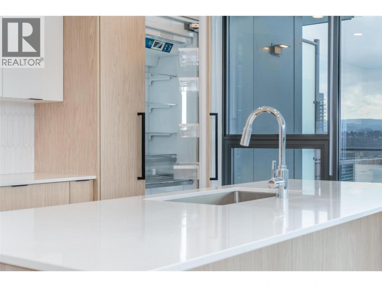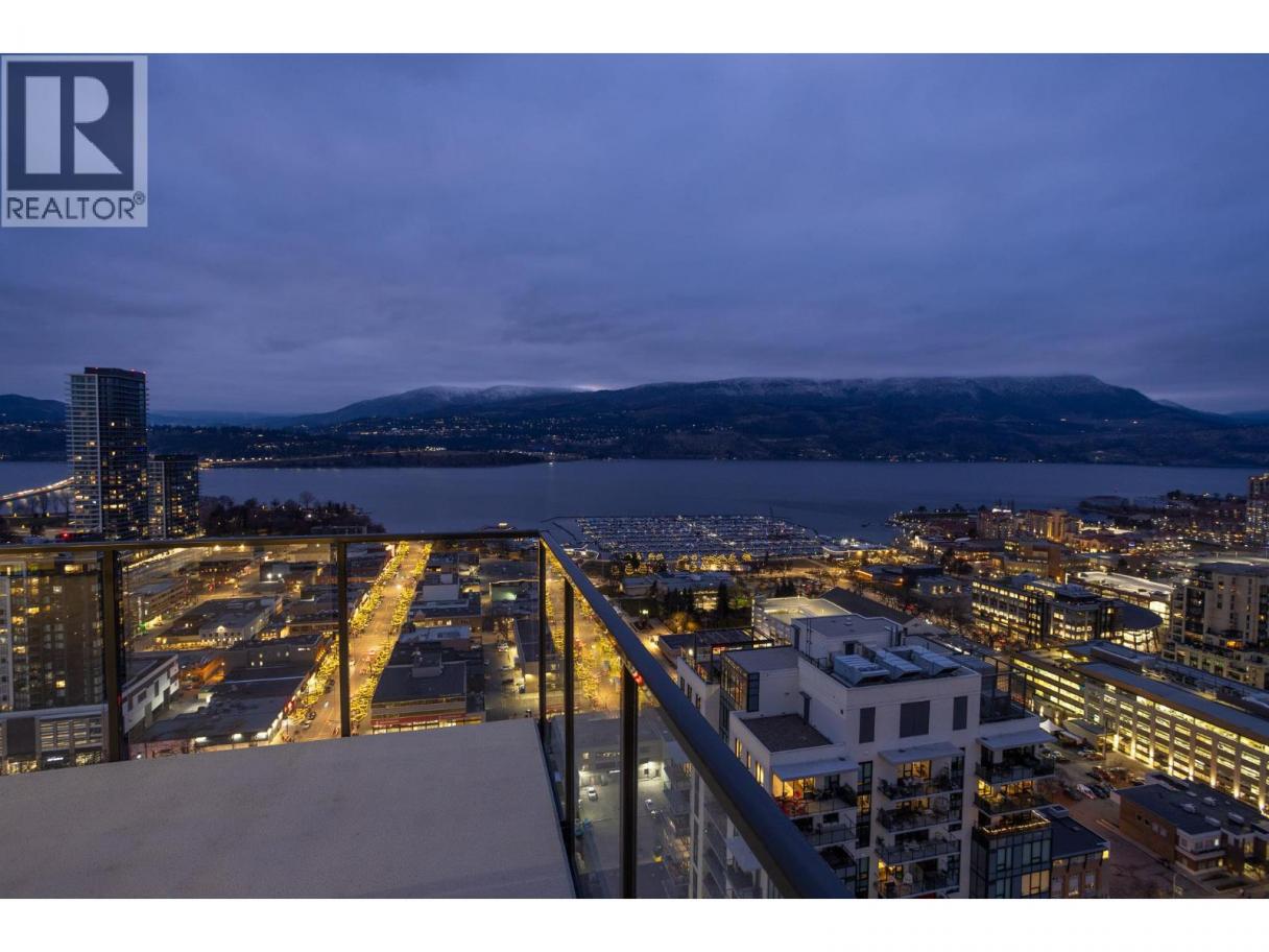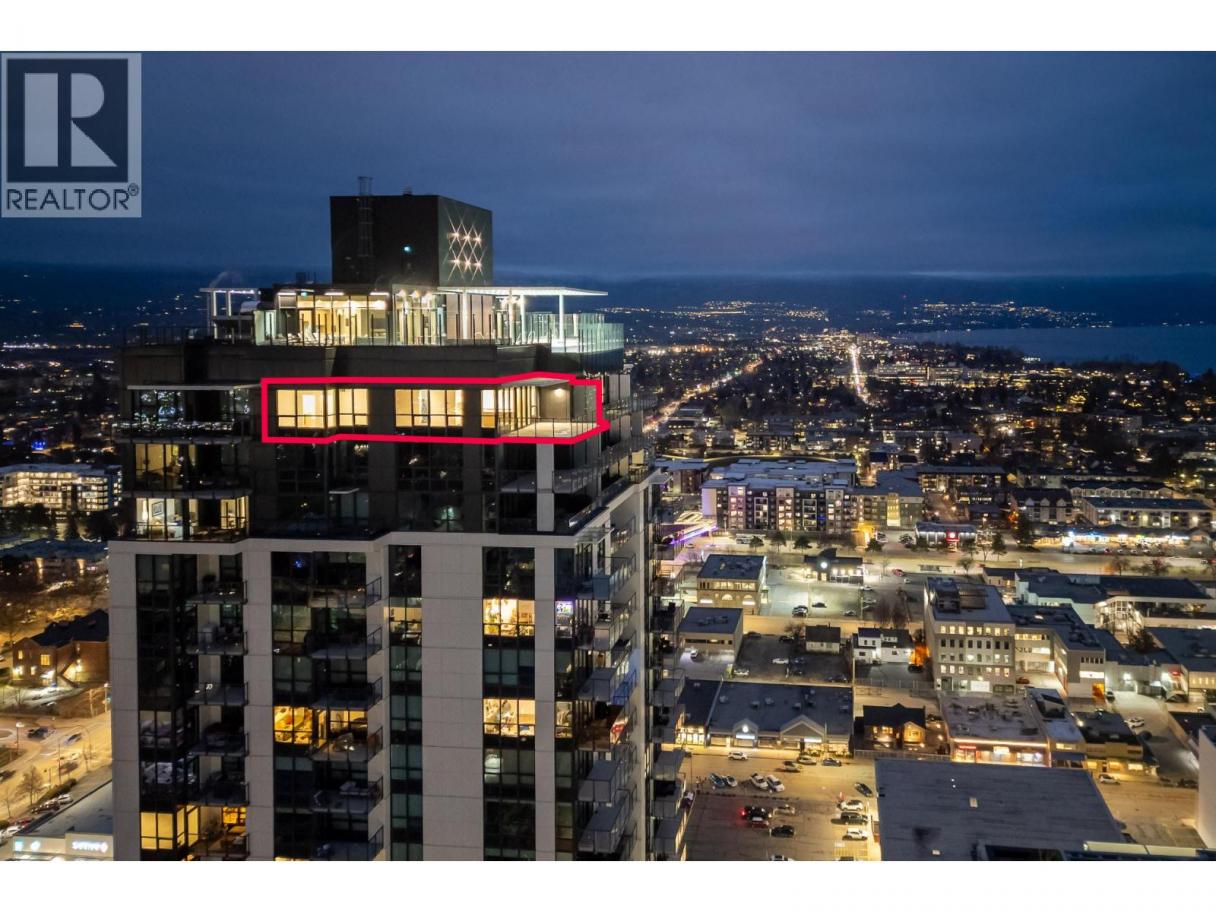 This 2 bedroom, 2 bath PENTHOUSE spans 998 sq. ft. and features a modern natural palette, luxury vinyl plank flooring, and high-end finishes throughout. The bright open-concept layout is framed by walls of windows showcasing sweeping lake, mountain, and city views. The chef’s kitchen boasts UPGRADED Bosch appliances including an induction cooktop, ultra quiet dishwasher, beautiful fridge/freezer and a beverage fridge. There is a large island with bar seating, built-in pantry, charging cubby/coffee station and generous storage, flowing seamlessly into the spacious living area. Step through dual sliding doors to the HUGE 330sqft partially covered deck - perfect for entertaining or unwinding, with a glass railing to take in all of the views. The primary suite includes a walk-in closet and sleek ensuite with walk-in shower, while the second bedroom is paired with a stylish 4-piece bath with tiled tub/shower combo. Enjoy in-suite laundry, pet-friendly living with no height restrictions, TWO PARKING stalls (one with EV charger) and storage. Residents have access to world-class amenities including a ROOFTOP POOL and HOT TUB (just a staircase away), outdoor BBQs, fire tables, lounge areas, fitness center, community garden, bocce court, and a dog run with wash station. Downtown living doesn’t get better than this! Just a few blocks from the beach and steps from shops, restaurants, and urban living, Bertram at Bernard offers the ultimate downtown lifestyle. GST paid. (id:6769)