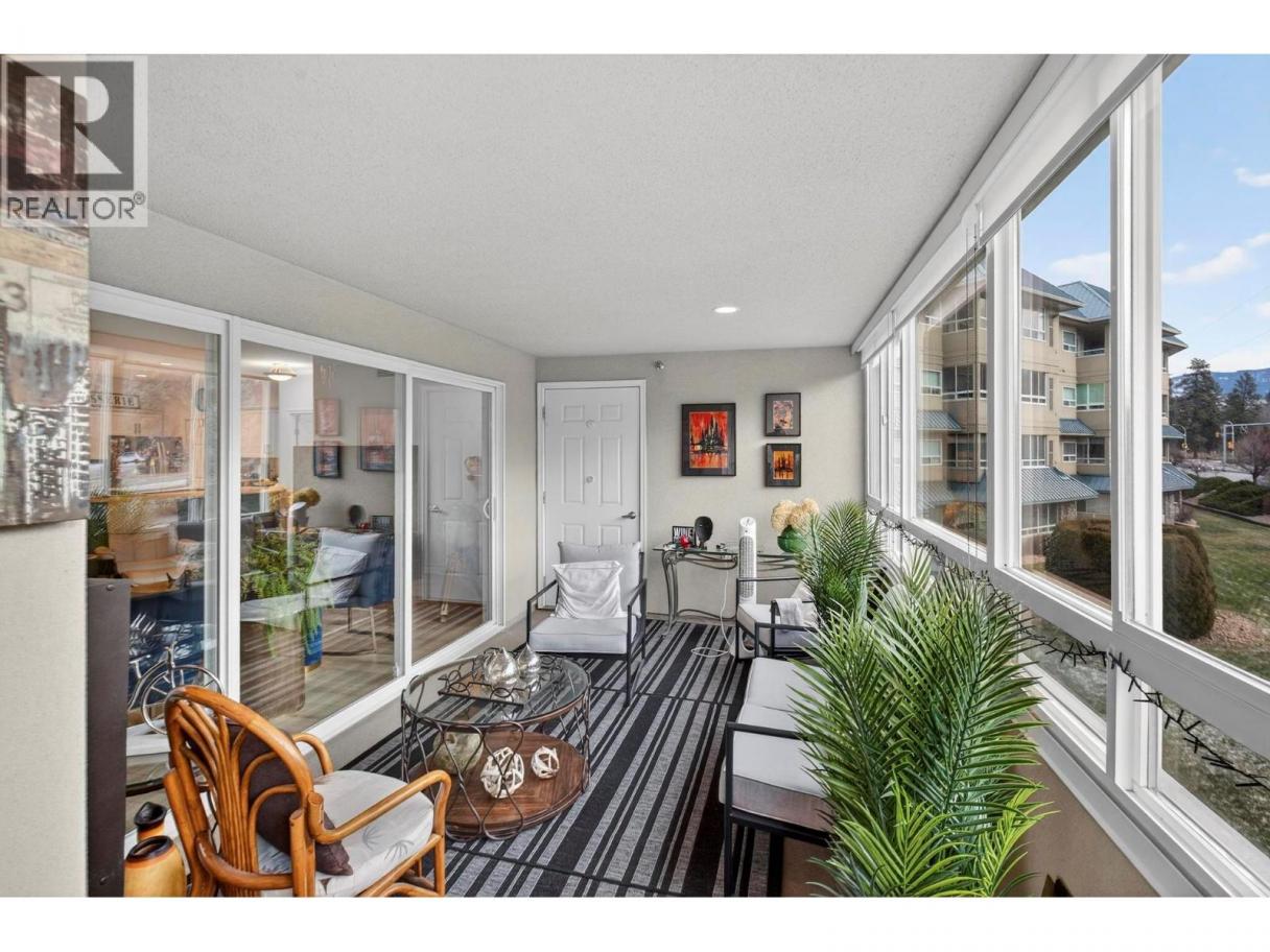 Vacant and ready for immediate possession!! Welcome to Unit 211 in Bristol Gardens, offering spacious condo living in one of Kelowna’s most walkable and convenient central locations. This beautifully updated home features over 1,300 sq/ft of bright, functional living space with a layout that feels more like a house than a condo. The floor plan includes two well-sized bedrooms separated by a large open living and dining area, plus a versatile den ideal for a home office or guest space. The kitchen offers quartz countertops, new stainless steel appliances, ample cabinetry, generous counter space, and a raised eating bar perfect for casual dining. Both bathrooms feature quartz counters, and the entire unit has been newly painted, creating a fresh, move-in-ready feel. The primary bedroom includes a full 4-piece ensuite. A dedicated laundry room with side-by-side washer and dryer, utility sink, and extra storage is a rare bonus. Enjoy year-round use of the enclosed sunroom with access from both the living room and primary bedroom, ideally positioned for privacy. Residents enjoy a stand-alone clubhouse, workshop, car wash bay, secure underground parking, and storage. This unit includes one underground parking stall and a generous storage locker. Central heating and air conditioning provide year-round comfort, one small pet is permitted, and rentals are allowed with restrictions. Steps to shopping, restaurants, Costco, Superstore, Orchard Park Mall, and Mission Creek Greenway. (id:6769)