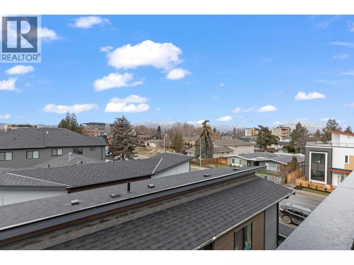 This newly built three-bedroom, three-bathroom townhome is located in Kelowna’s highly walkable South Pandosy neighbourhood, offering easy access to everyday amenities, outdoor recreation, and key destinations. Kelowna General Hospital and Okanagan College are both nearby, along with shopping, dining, transit, and waterfront parks. The home is thoughtfully arranged over three levels, providing a practical layout suited to modern urban living. The main level features an open kitchen and living area with quartz countertops, a gas cooktop, and contemporary finishes, as well as main-floor laundry, a utility area, and a convenient powder room. The second level includes three bedrooms, including a primary bedroom with a walk-in closet and ensuite, plus a full main bathroom serving the additional bedrooms. A private rooftop terrace offers an additional outdoor living space, while a fenced patio, balcony, and detached single garage add everyday functionality. Street parking is also available. Boyce-Gyro Beach Park is just minutes away and remains one of Kelowna’s most popular lakeside destinations. The recently completed waterfront park at the corner of Abbott Street and KLO Road further enhances access to green space, lakefront walking routes, and outdoor gathering areas. Pandosy is well known for its vibrant streetscape, local boutiques, cafés, and restaurants, as well as its connection to the Abbott Street corridor and nearby beaches. Covered by a 2-5-10 New Home Warranty. (id:6769)