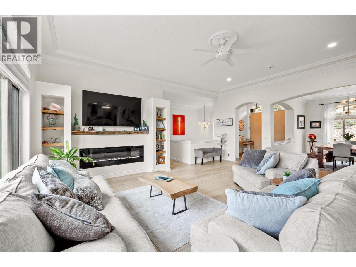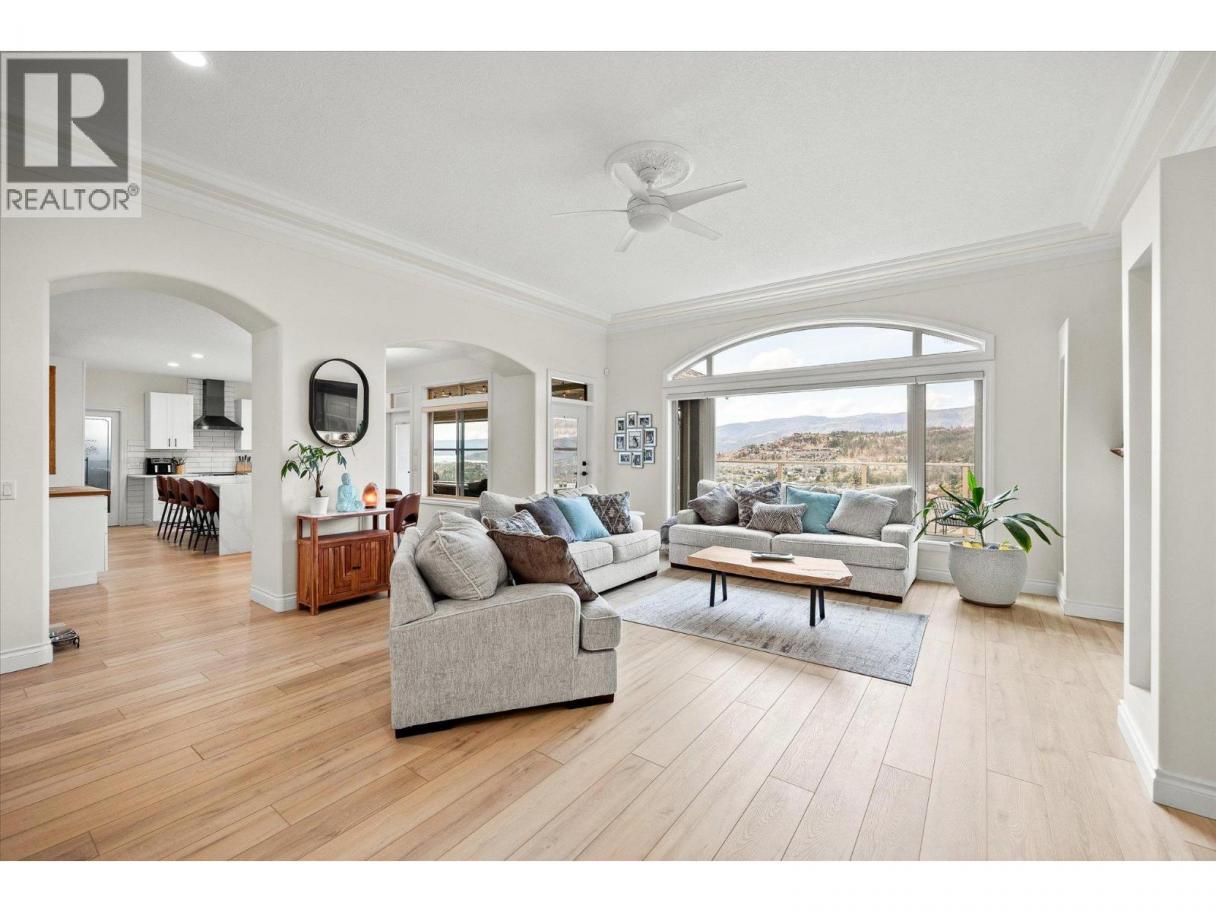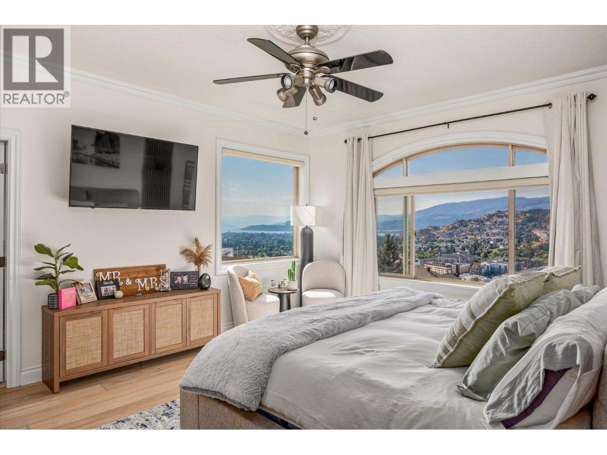 Elevate your lifestyle with this executive walkout rancher showcasing some of the best views in Kelowna. Perched in the sought-after Dilworth Mountain community of Denali Court, this residence offers over 5,200 sq. ft. of thoughtfully designed living space blending elegance with comfort. Inside, 12-foot ceilings, gleaming floors, and expansive windows frame the city skyline and shimmering lake. The gourmet kitchen features custom cabinetry, quartz countertops, perfect for entertaining and seamlessly connected to both indoor and outdoor living areas. A highlight is the unique indoor/outdoor pool. Low-maintenance and usable year-round, it provides endless enjoyment. Oversized bay doors open for sunny, open-air lounging. A steam shower completes this private wellness oasis—ideal for relaxation or fitness. The garage design is rare: an oversized two-car garage on the main level plus a single garage below, attached to a private office with separate entrance. Perfect for remote work, a studio, or quiet retreat. Situated on a 0.26-acre corner lot, the home offers more space and privacy than most nearby. Parking for up to nine vehicles, including RV space, adds convenience. Downtown Kelowna is only five minutes away for shopping, dining, and entertainment. Whether enjoying the panoramic views, retreating to the luxurious pool and steam room, this residence delivers the ultimate combination of luxury, nature, and convenience in one of the city’s most coveted locations. (id:6769)