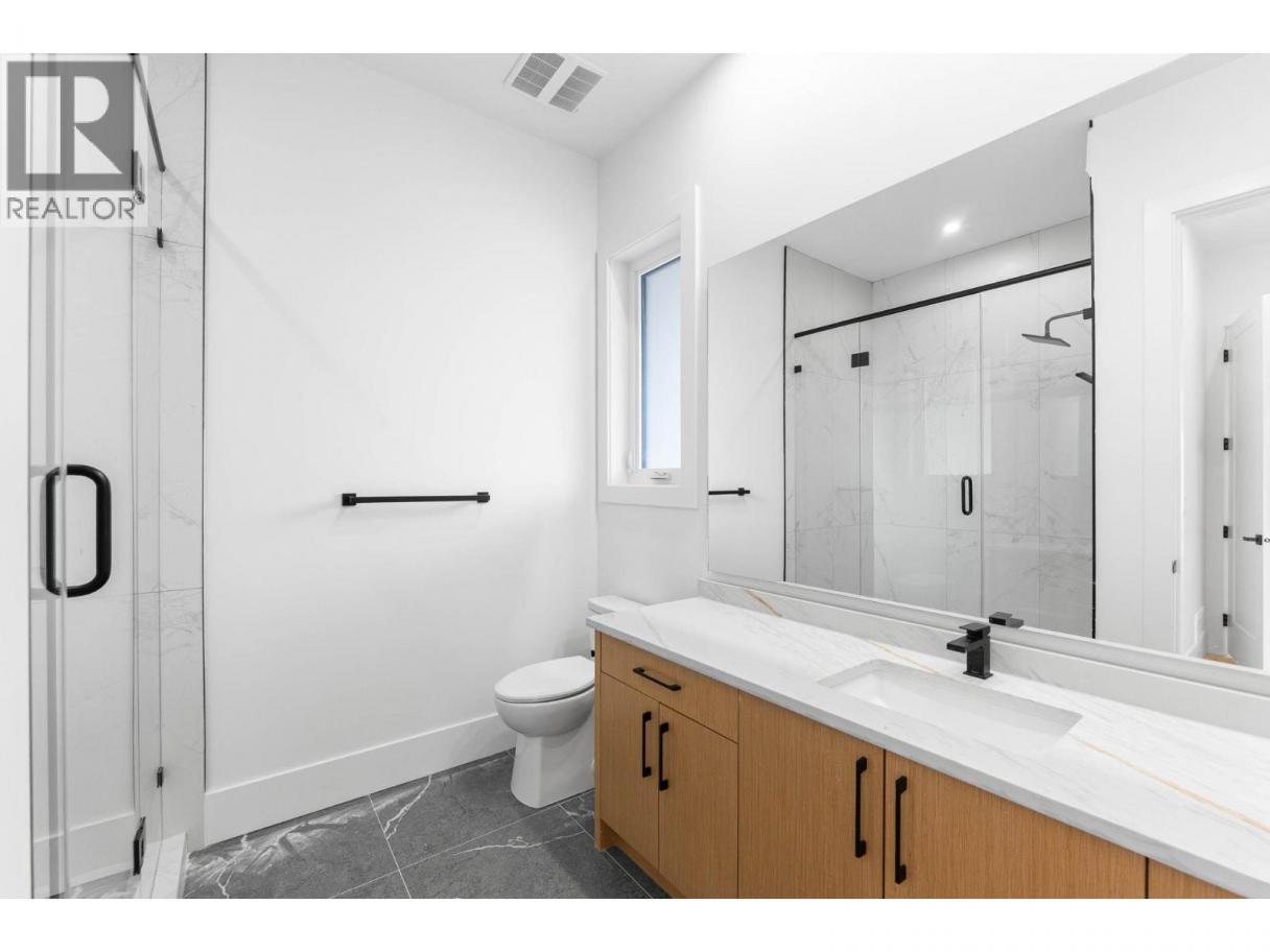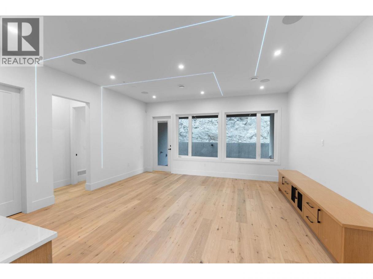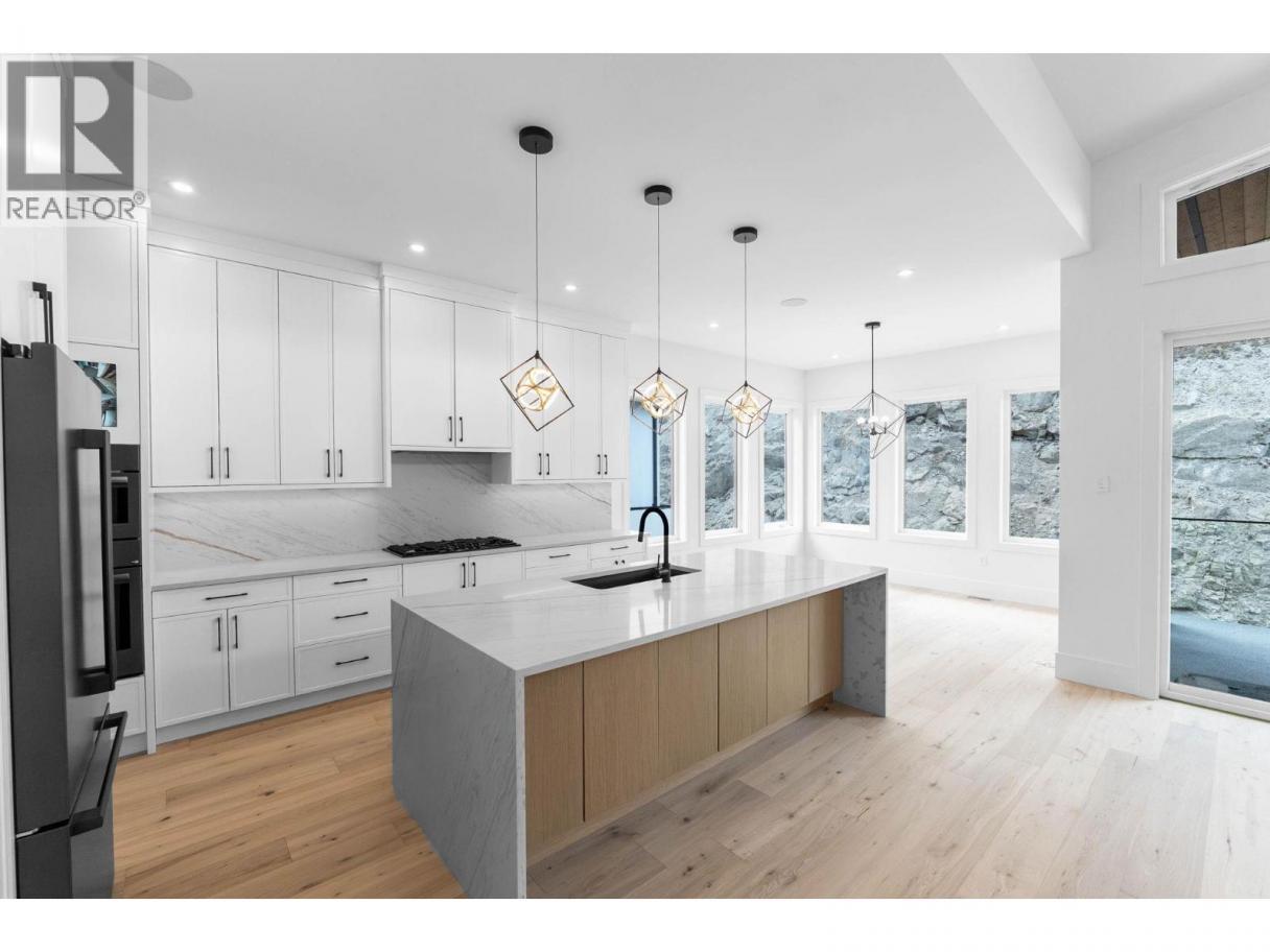 Experience luxury living on Kirschner Mountain with this brand-new designer home featuring over 3,800 sq ft of modern elegance and functionality. Step inside to a grand open-concept living space with soaring ceilings, a striking fireplace, and gorgeous hardwood floors throughout. Enjoy seamless home automation with smart-controlled lighting, zoned sound system, and built-in cameras, complemented by a built-in vacuum for convenience. The main kitchen showcases high-end Bosch appliances with wood cabinetry, while the spice kitchen and basement wet bar feature premium acrylic finishes. Upstairs, relax in your primary suite with a private balcony offering unobstructed mountain views—no home in front and a generous green space beside for extra privacy. A theatre room, front and rear balconies, and a double-car garage complete the main residence. The legal 2-bedroom suite off to the side offers ideal rental income potential or extended family living. Enjoy this home in one of Kelowna’s most sought-after communities. Enjoy a blend of comfort, technology, and style—perfect for families or investors seeking a luxury home with income potential. Price + GST. (id:6769)
