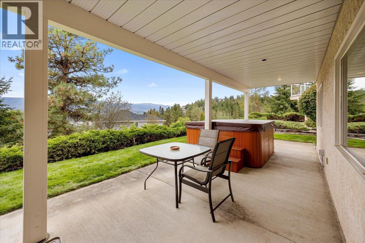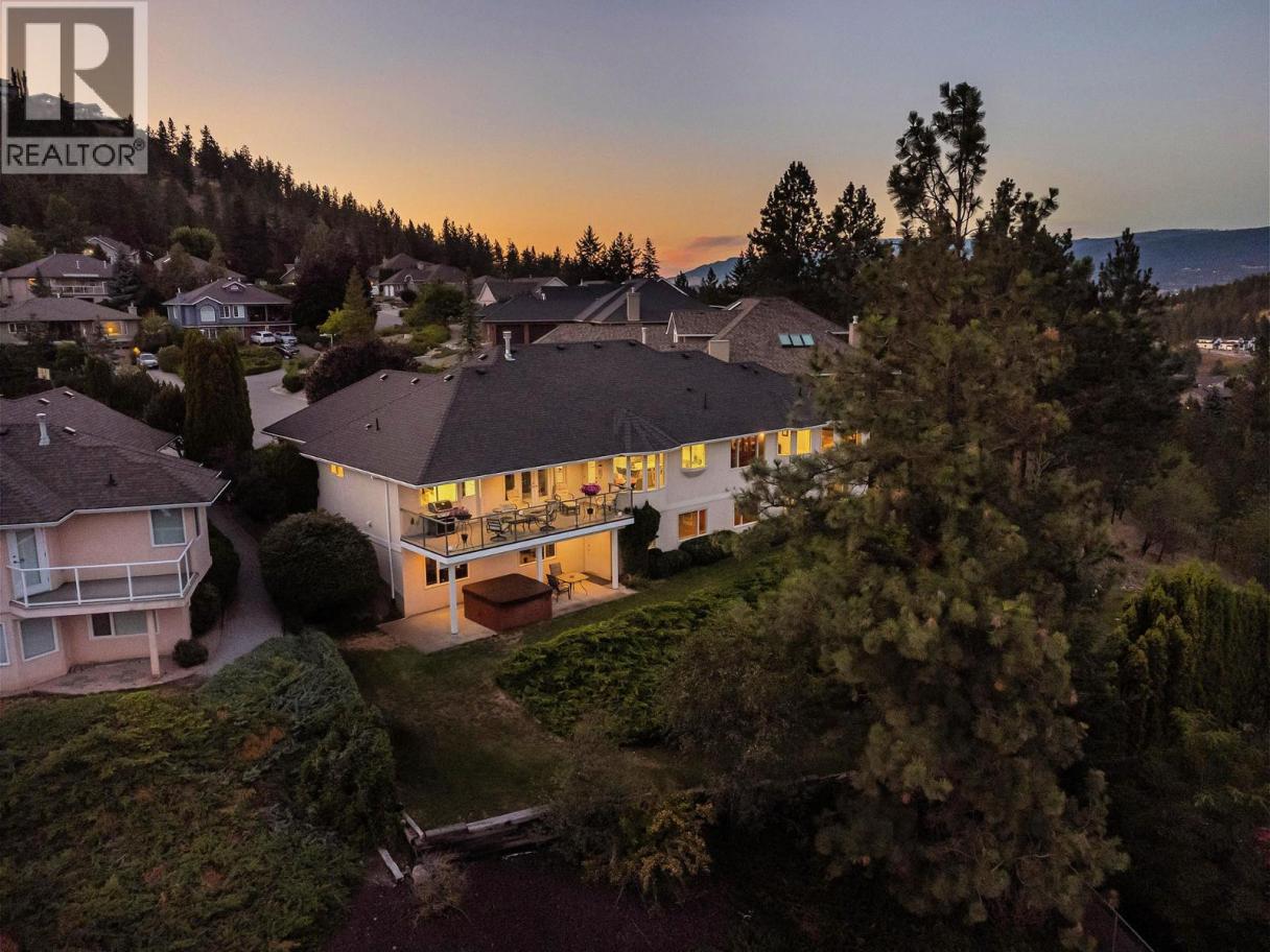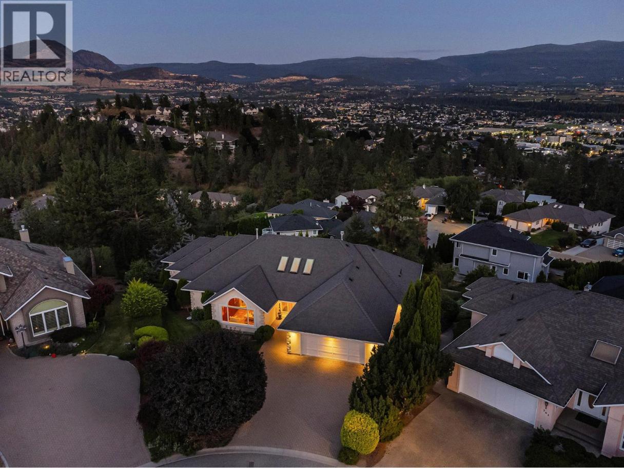 Set on a quiet cul-de-sac in the desirable Dilworth Mountain community, this spacious 4,799 sq. ft. walk-out rancher offers an exceptional blend of space, privacy, and panoramic views. Thoughtfully designed for main-level living, this immaculately maintained residence captures sweeping views of the valley, city, and surrounding mountains from nearly every principal room. The chef’s kitchen is both functional and elegant, appointed with granite countertops, soft-close cabinetry, premium KitchenAid appliances, and a charming bay-window breakfast nook. Seamless indoor-outdoor flow leads to a covered upper deck. The main floor also features a vaulted-ceiling family room with a gas fireplace, a formal dining area, a versatile office or bedroom, and a generously sized primary suite with a private 5-piece ensuite. The fully finished walk-out lower level extends the home’s appeal, offering two spacious bedrooms, a renovated bath, a large recreation room, and an impressive theatre with coffered ceilings and a private kitchenette. Outside, the covered lower patio with hot tub invites quiet relaxation, while the expansive, tiered backyard—complete with mature landscaping and underground irrigation—offers space for a future pool. Situated on a rare, oversized lot in one of Kelowna’s most coveted neighbourhoods, this home blends timeless comfort with boundless potential. Just minutes to downtown, top schools, golf, and trail networks—this is Dilworth living at its finest. (id:6769)