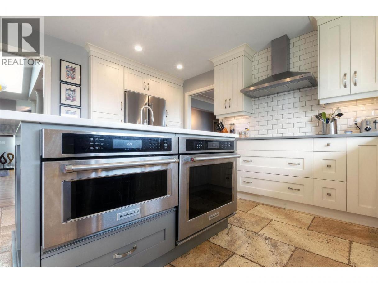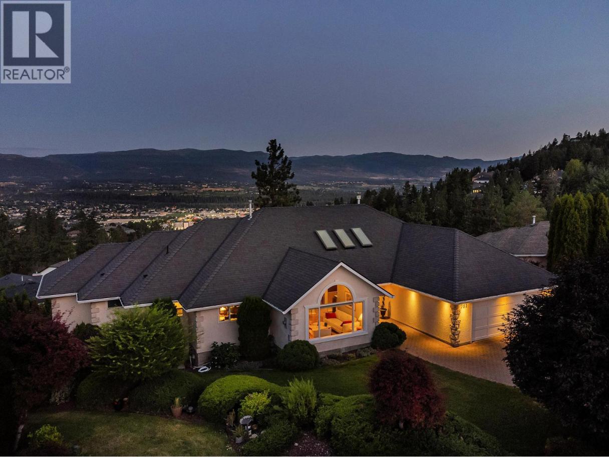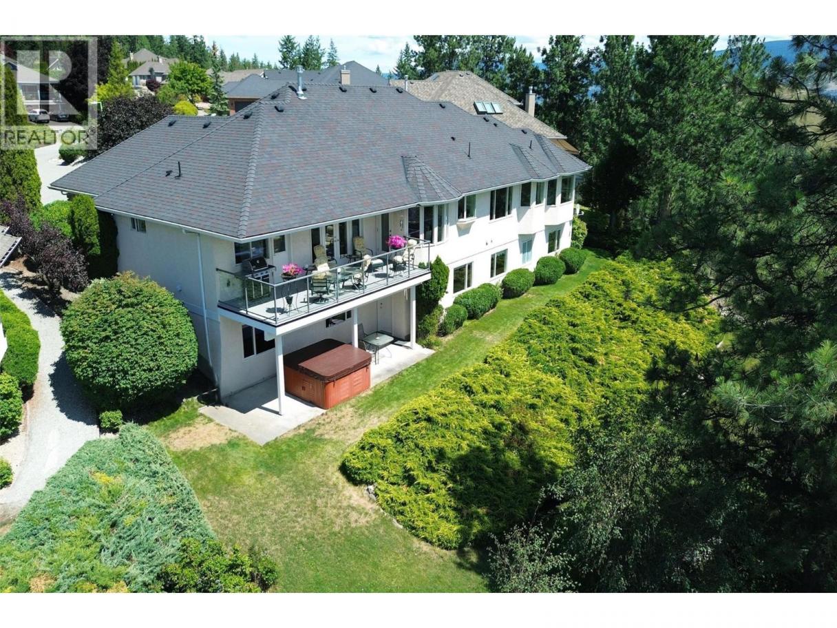Set on a quiet cul-de-sac in the desirable Dilworth Mountain community, this spacious 4,799 sq. ft. walk-out rancher offers an exceptional blend of space, privacy, and panoramic views. Thoughtfully designed for main-level living, this immaculately maintained residence captures sweeping views of the valley, city, and surrounding mountains from nearly every principal room. The chef’s kitchen is both functional and elegant, appointed with granite countertops, soft-close cabinetry, premium KitchenAid appliances, and a charming bay-window breakfast nook. Seamless indoor-outdoor flow leads to a covered upper deck. The main floor also features a vaulted-ceiling family room with a gas fireplace, a formal dining area, a versatile office or bedroom, and a generously sized primary suite with a private 5-piece ensuite. The fully finished walk-out lower level extends the home’s appeal, offering two spacious bedrooms, a renovated bath, a large recreation room, and an impressive theatre with coffered ceilings and a private kitchenette. Outside, the covered lower patio with hot tub invites quiet relaxation, while the expansive, tiered backyard—complete with mature landscaping and underground irrigation—offers space for a future pool. Situated on a rare, oversized lot in one of Kelowna’s most coveted neighbourhoods, this home blends timeless comfort with boundless potential. Just minutes to downtown, top schools, golf, and trail networks—this is Dilworth living at its finest. (id:6769)
