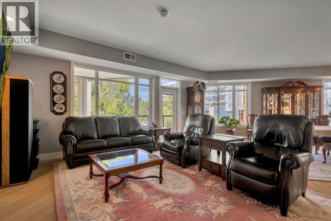 Your Lake-Adjacent Sanctuary Awaits! Downsize without compromise — enjoy single-level living that retains generous square footage and all the comforts of a house. Picture morning coffee on one of your two expansive balconies, offering outdoor space with views that will become your personal entertainment venue. This large 2-bedroom plus den at Essence delivers the Lower Mission lifestyle you've been searching for. The open concept floor plan allows you to enjoy a sun-drenched living area where kitchen, dining, and living room spaces flow seamlessly together. The primary suite is your luxurious retreat with a spa-inspired ensuite, which includes dual vanities, a walk-in shower, and a soaking tub and generous walk-in closet Every detail whispers quality: nine-foot ceilings, quartz countertops throughout, premium appliances, and remarkable soundproofing ensures your peace and privacy. The versatile den offers flexibility for your lifestyle. Two heated secure underground parking stalls and same-floor storage complete the package. Building amenities include a fully-equipped fitness center, secure bike storage, entertainment lounge for hosting, and a stunning second-floor terrace with pergola and shuffleboard for enjoying summer evenings. Steps to Okanagan Lake, Mission Park Greenway, and Eldorado-Manteo dining and recreation hotspots. You're not just buying a condo—you're buying a lifestyle. Pet & rental friendly. Make this your everyday home and start living the Okanagan dream. (id:6769)