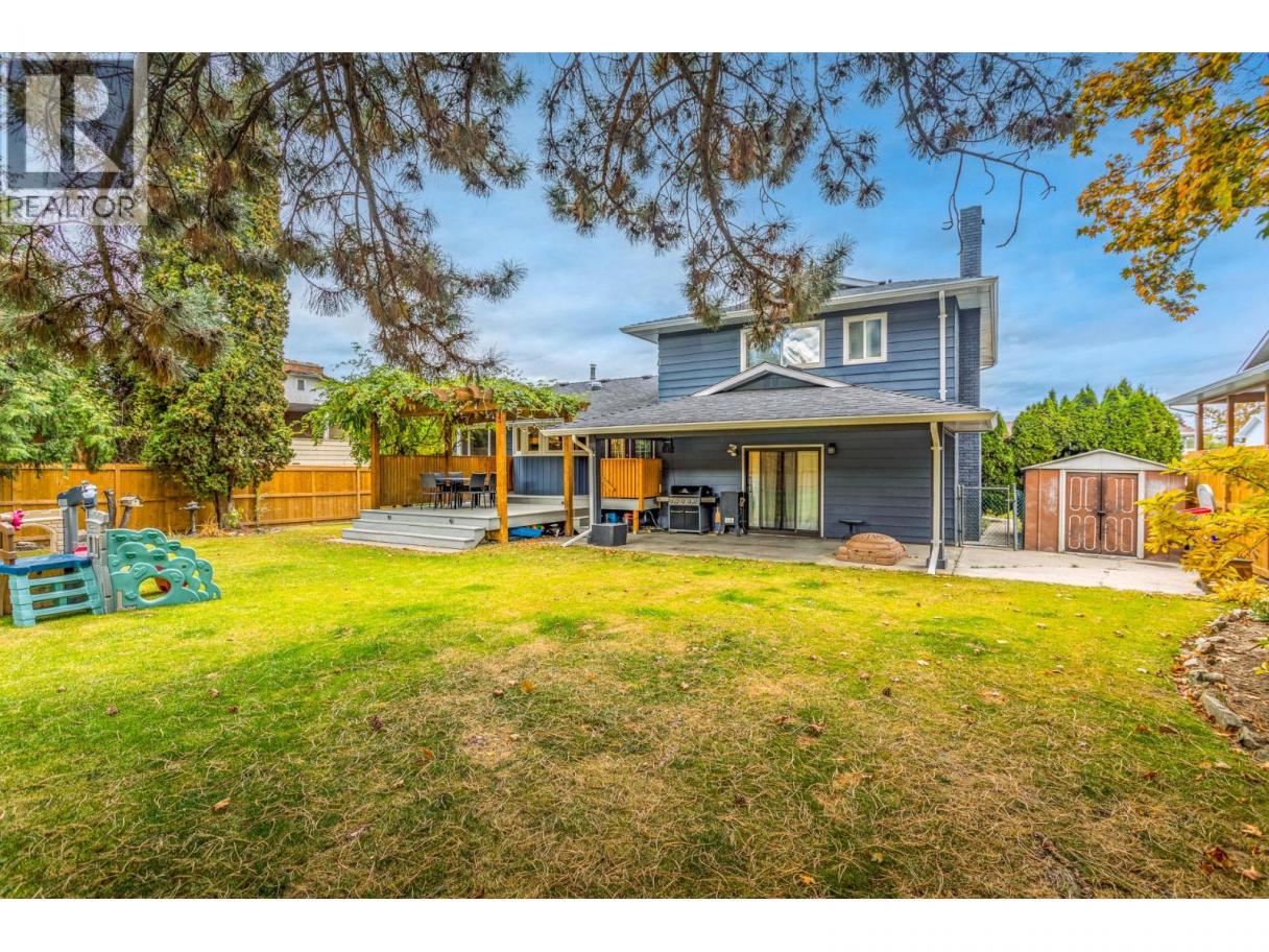 Welcome to your move-in-ready sanctuary in the quiet heart of Springvalley, perfectly situated on a fully fenced, south-facing, and beautifully landscaped lot just steps from the Mission Creek Greenway and steps from both Springvalley Elementary and Middle school. This tastefully updated home offers ultimate peace of mind with recent ""big-ticket"" upgrades, including a newer roof, windows, exterior, flooring, and central vacuum system. The bright main level features gleaming hardwood floors and a renovated chef’s kitchen complete with custom soft-close cabinetry and stainless steel appliances; from here, French doors lead to a stunning cedar deck with a stunning pergola, ideal for outdoor entertaining and living. The functional multi-level layout includes a cozy family room with a gas fireplace and covered patio access, a private den/office, and four spacious bedrooms all on the same level—including a primary suite with a private ensuite. Storage is never an issue thanks to the massive utility room and a 450-square-foot crawl space. The backyard is a true showstopper, featuring a brand-new 10 x 12 shed and ample room for a future pool, plus dedicated space for your RV or boat. Located minutes from schools, shopping, and parks, this home combines modern comfort with the perfect Okanagan lifestyle. (id:6769)