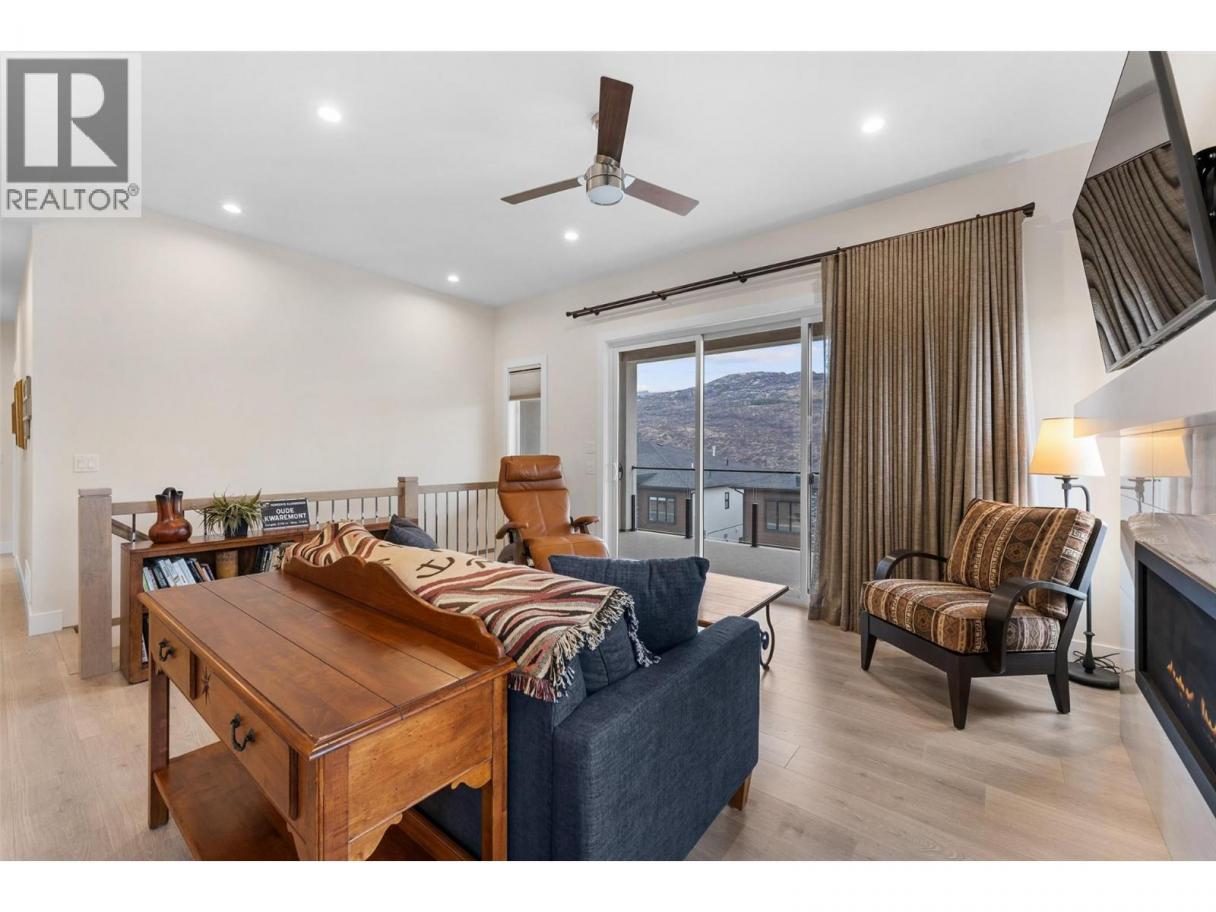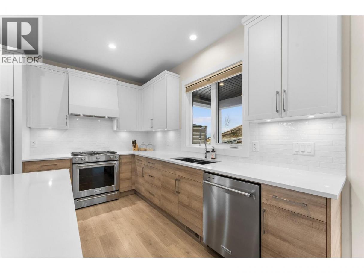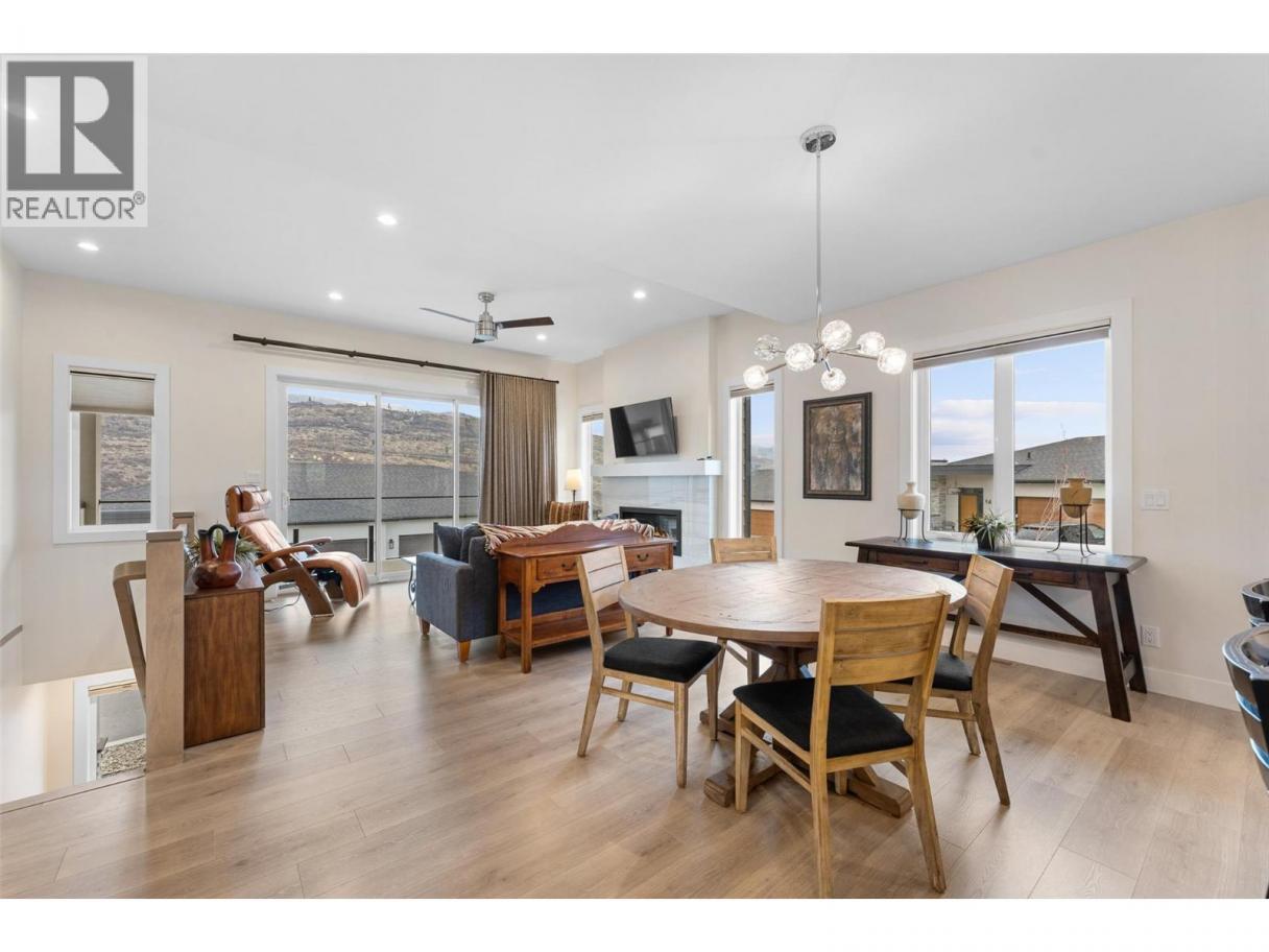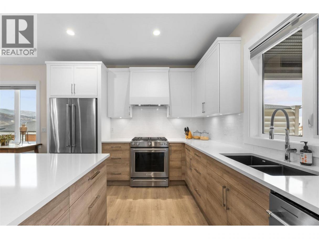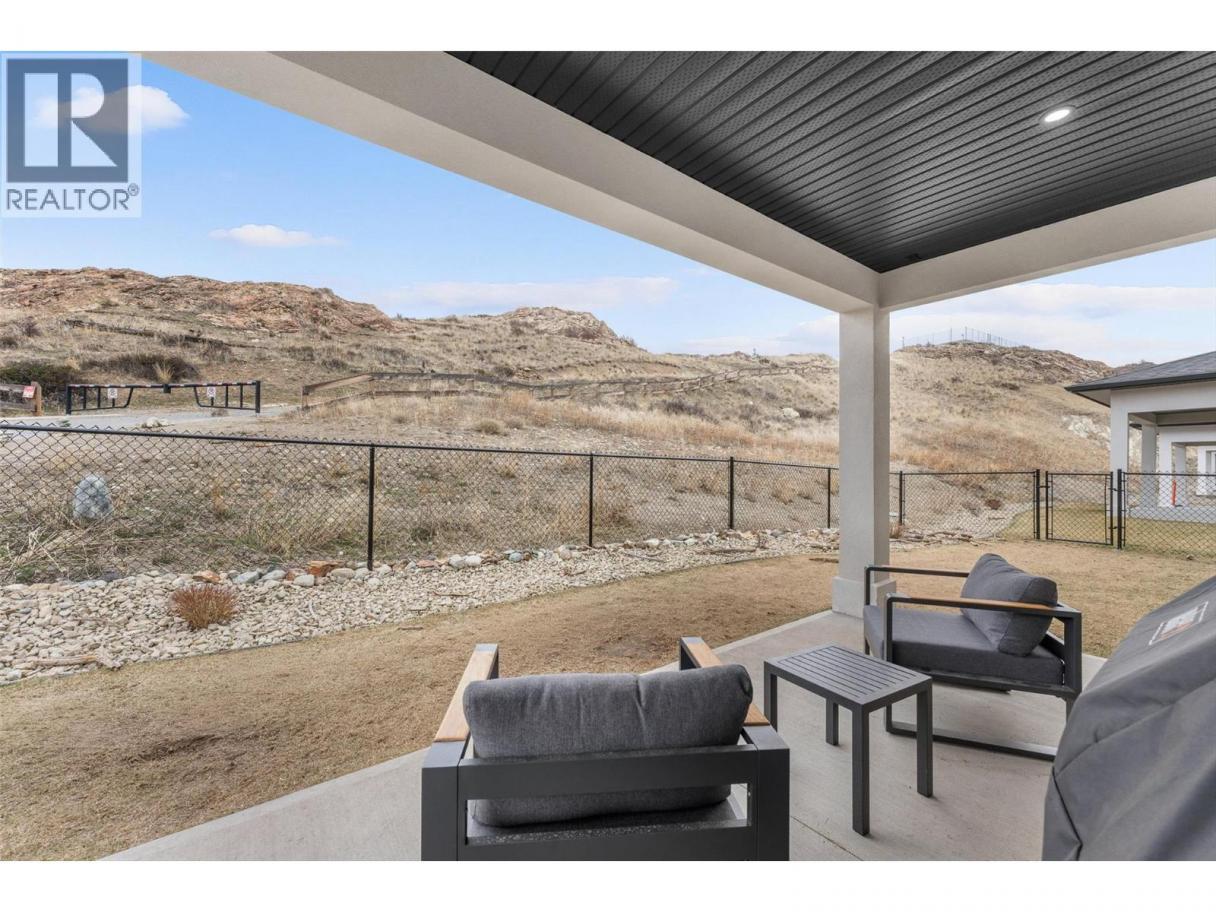 Perched at the edge of Kuipers Peak at South Ridge in the Upper Mission, this corner unit half-duplex has approximately$50K in upgrades. This home was built for people who want to be closer to nature without giving up a single modern convenience. The main level is where the home truly comes alive. High ceilings and natural light pour through generous windows, creating a space that feels both elevated and welcoming. The open kitchen features a large central island with seating for four, two-tone cabinetry, and quartz countertops, flowing seamlessly into the dining and living areas. A gas fireplace anchors the living room, while sliding doors lead to a covered deck with glass railings. The primary suite includes a spa-like ensuite with heated tile floors, a tiled walk-in shower with two shower heads and a built-in bench, plus a walk-in closet. A second bedroom, full bath, butler's pantry with built-in microwave, and laundry complete this level. The lower level offers a bedroom, four-piece bath, dedicated office, and recreation room with a wet bar, ideal for guests or a home gym. Walk out to the fully fenced backyard with a covered patio where sunshades keep you comfortable on warm afternoons. A two-car garage provides parking and storage. Located in a new community with quiet, no-through-access streets, you're three minutes from the new Mission Village shopping center, and steps to the trails of Thomson Flats, where the hills invite you to hike, bike, and explore. (id:6769)