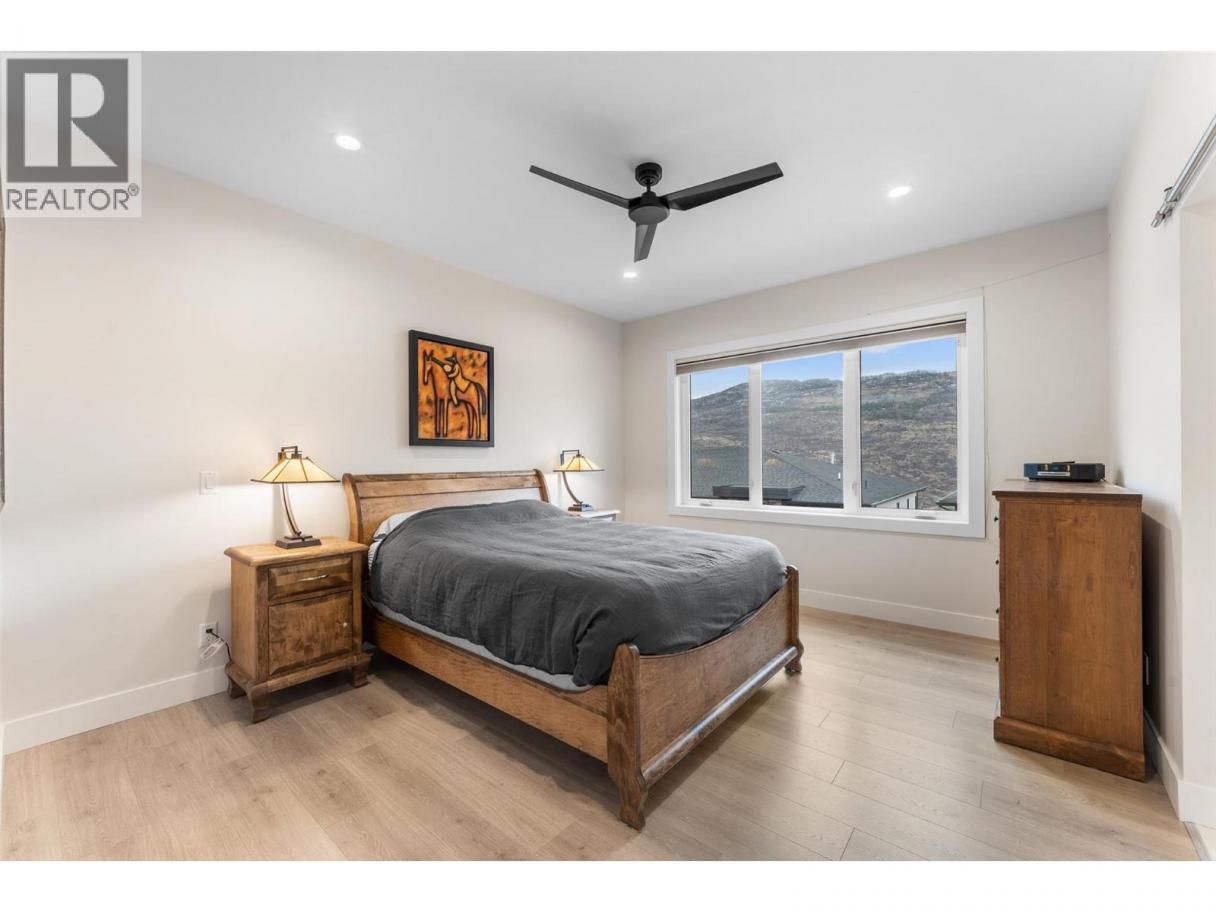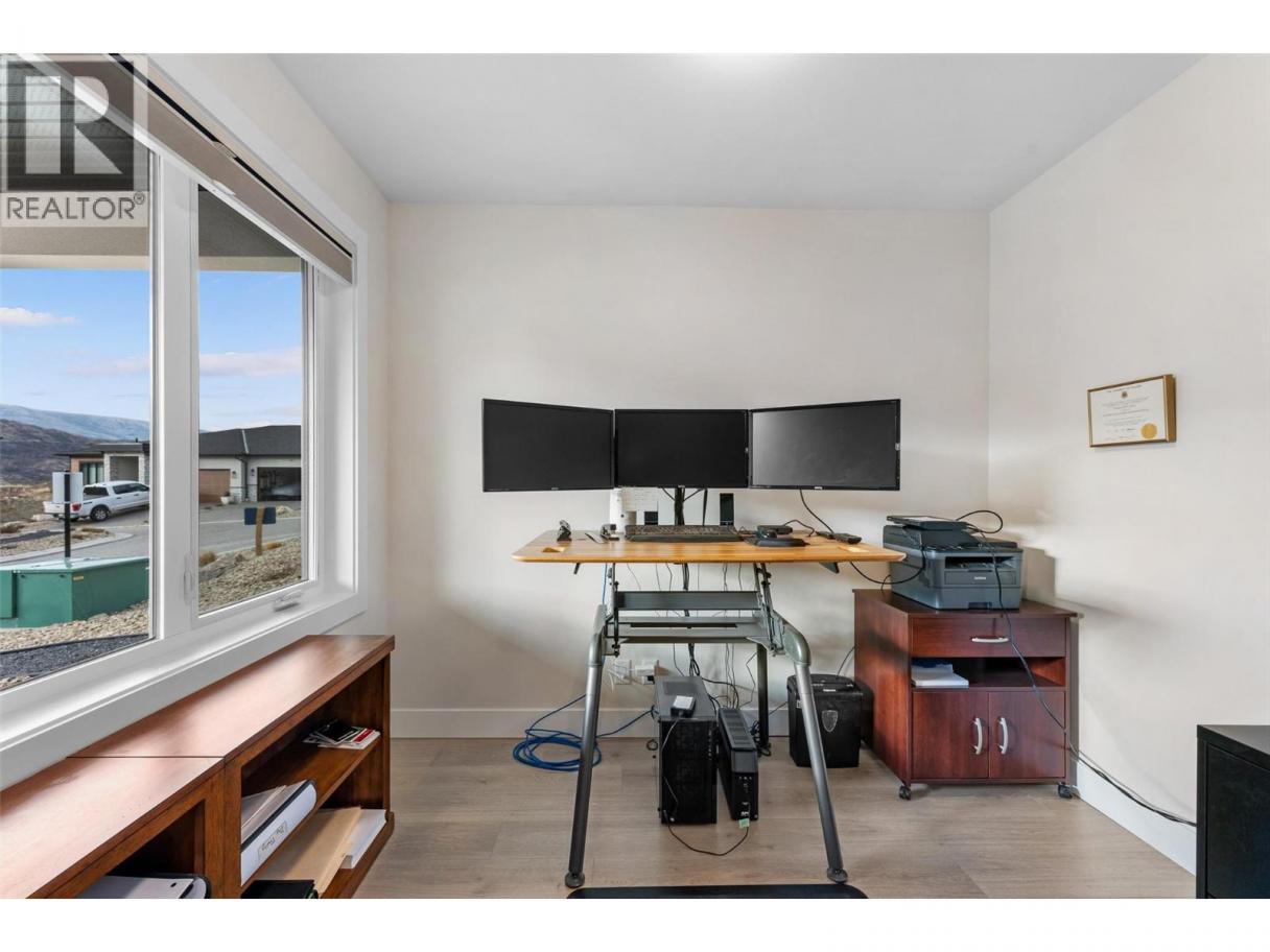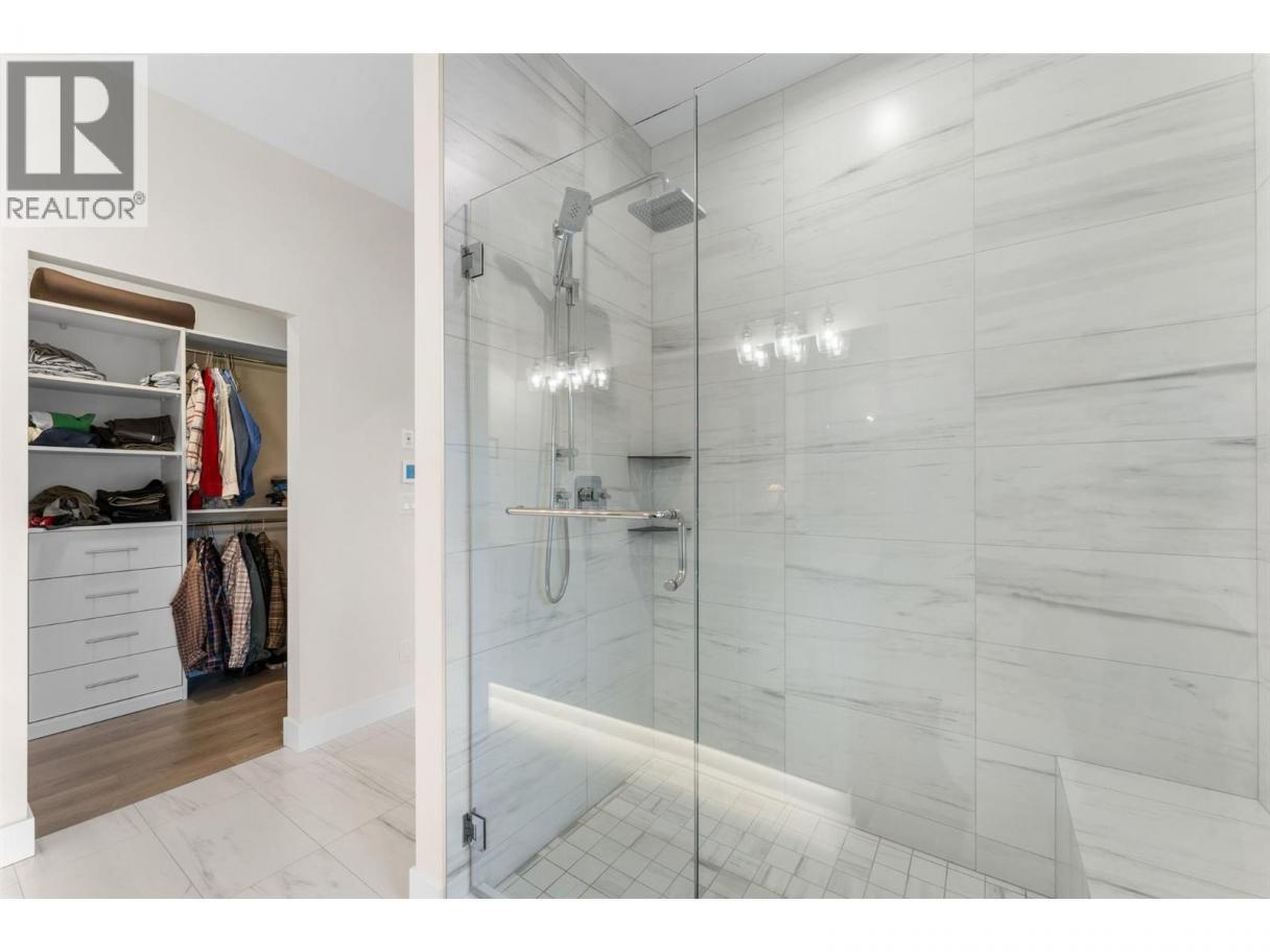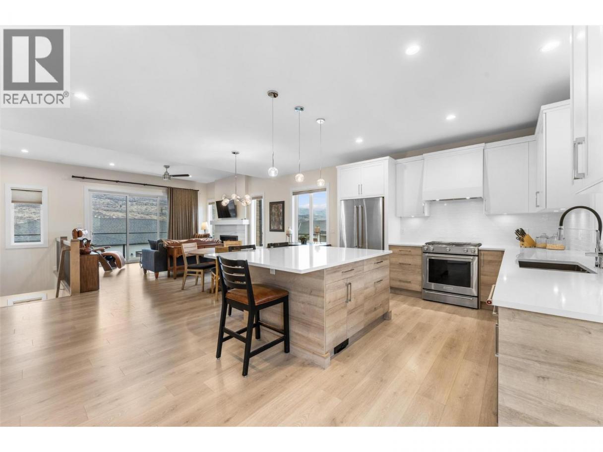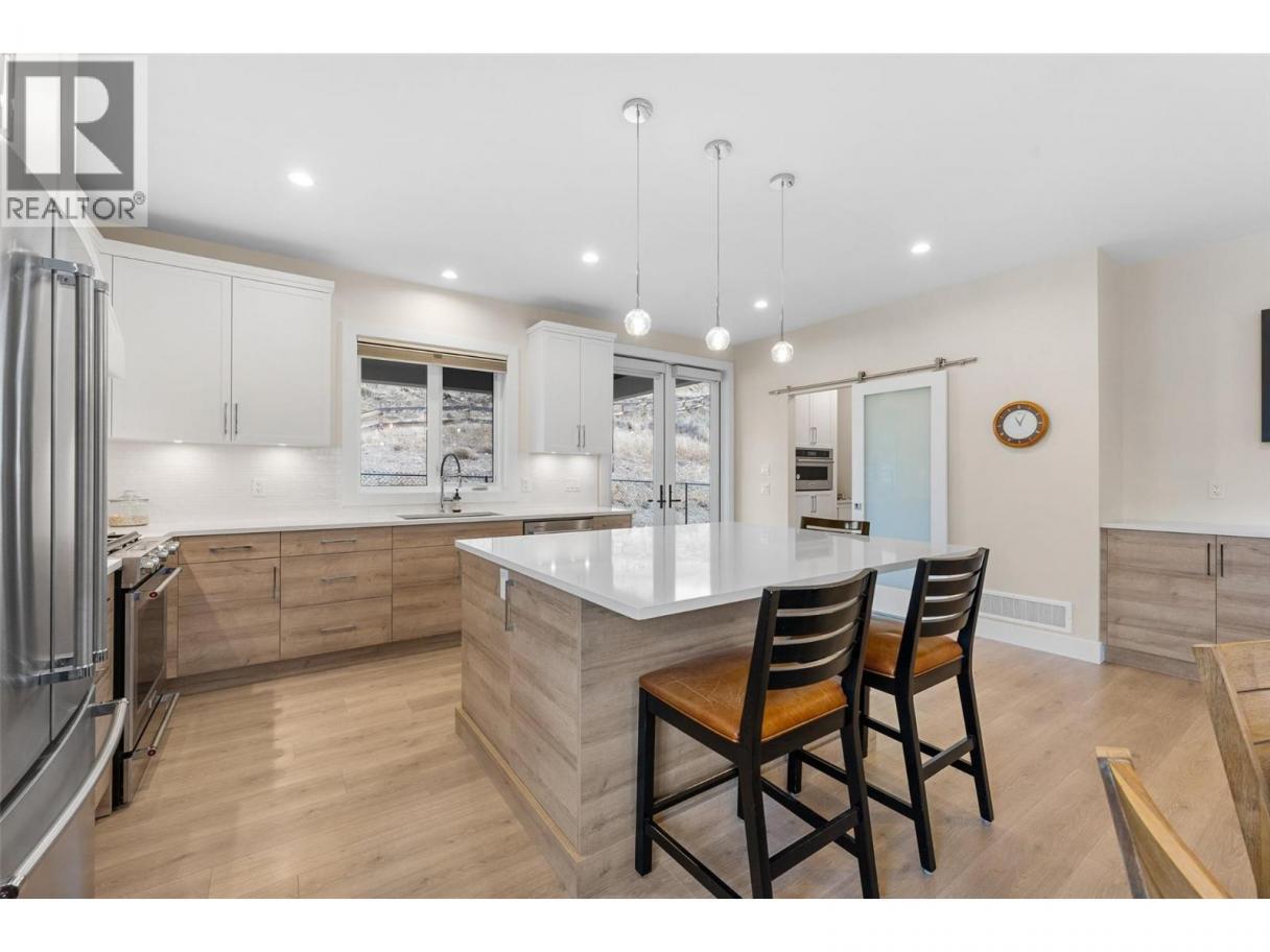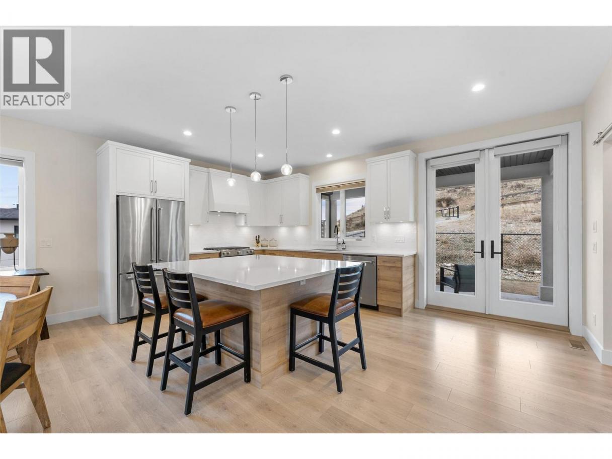 Perched at the edge of Kuipers Peak at South Ridge in the Upper Mission, this corner unit half-duplex has approximately$50K in upgrades. This home was built for people who want to be closer to nature without giving up a single modern convenience. The main level is where the home truly comes alive. High ceilings and natural light pour through generous windows, creating a space that feels both elevated and welcoming. The open kitchen features a large central island with seating for four, two-tone cabinetry, and quartz countertops, flowing seamlessly into the dining and living areas. A gas fireplace anchors the living room, while sliding doors lead to a covered deck with glass railings. The primary suite includes a spa-like ensuite with heated tile floors, a tiled walk-in shower with two shower heads and a built-in bench, plus a walk-in closet. A second bedroom, full bath, butler's pantry with built-in microwave, and laundry complete this level. The lower level offers a bedroom, four-piece bath, dedicated office, and recreation room with a wet bar, ideal for guests or a home gym. Walk out to the fully fenced backyard with a covered patio where sunshades keep you comfortable on warm afternoons. A two-car garage provides parking and storage. Located in a new community with quiet, no-through-access streets, you're three minutes from the new Mission Village shopping center, and steps to the trails of Thomson Flats, where the hills invite you to hike, bike, and explore. (id:6769)