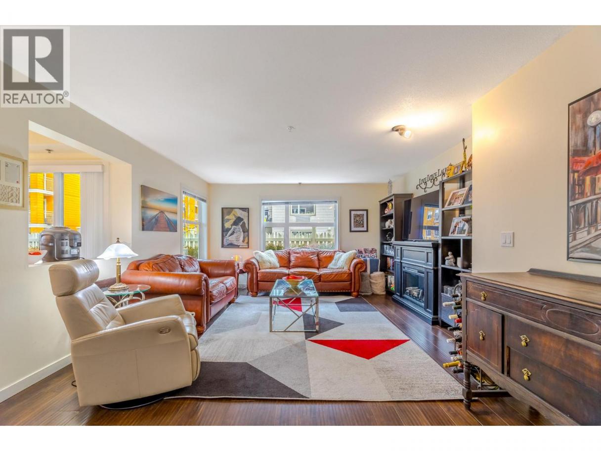 This level entry, first floor, two bedroom, two bath corner unit feels like a townhouse with its two outdoor patios and its spacious fenced yard. Featuring over 1140 sq. ft. of living space, 9 ft ceilings, light filled windows, an efficient kitchen with access to the entertainment patio/yard and a large great room. On either side of the main living space the bedrooms find their own tranquility & privacy - the primary suite offers dual walk-in closets and an ensuite with soaker tub; while the second bedroom boasts a large closet, access to a private outdoor patio and delights in a 3 piece ensuite which doubles as the main bathroom. Situated in a fantastic complex with an interior courtyard complete with pool, beach volleyball and bbq area, and located in a central location close to transit, schools & shops. Comes with storage locker and secured parking in the garage! (id:6769)