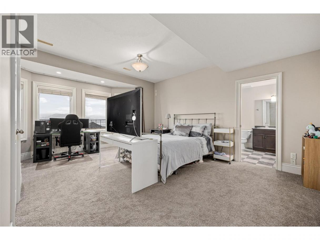 Panoramic views of Okanagan Lake define this stunning residence in prestigious Kettle Valley. Offering over 5,500 sq ft of thoughtfully designed living space, this 5 bed + den/ 5 bath home is ideal for families who value space, function, and effortless entertaining. The main level features high ceilings, an open-to-above design, an updated kitchen with generous counter space, dining area, den/office, and the convenience of laundry, pantry, and double-car garage all on one floor. Upstairs, the large primary bedroom impresses with a 6 piece ensuite, walk-in closet, a private balcony with breathtaking views, while boasting an additional loft space with it's own private balcony and two additional bedrooms (one with another private balcony). The lower level is perfectly suited for kids, guests, or entertaining, complete with a spacious rec room, wet bar, cold room, two bedrooms, two bathrooms, ample storage, and a separate entrance leading directly to the pool deck. Outside, enjoy a large heated pool with an expansive, fully fenced deck area, including covered spaces ideal for hosting, relaxing, and taking in unforgettable views. Updates throughout include flooring, carpets and bathroom vanity countertops. Situated in a highly-desirable area, you're walking distance to parks, an elementary school, a convenience store, and public transit right at your door and only a 5 minute drive to save-on foods, shoppers, and Starbucks. Contact us today to book your private showing today! (id:6769)