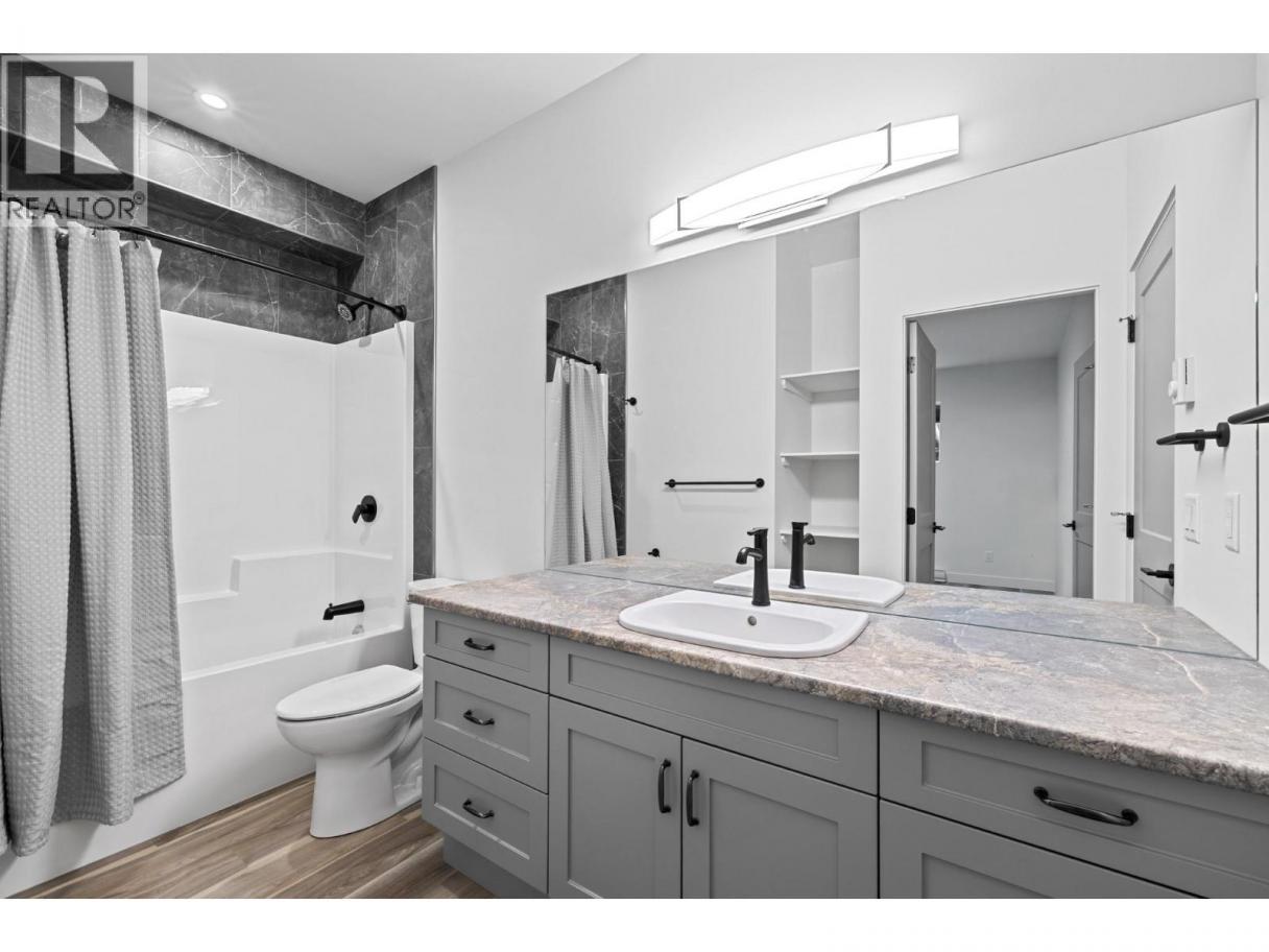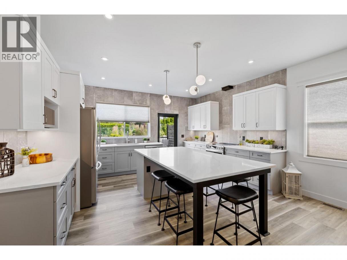 Perched in the highly sought-after Lakeview Heights neighbourhood, this home offers an elevated position with beautiful lake views, quick access to town & exceptional garage space—an ideal combination for modern Okanagan living. With 3,420 sq. ft. of thoughtfully designed space, this home delivers outstanding versatility, including a 1-bedroom legal suite, an oversized garage & a backyard with room for a pool. The main level is bright & welcoming, featuring an open-concept living area anchored by a cozy gas fireplace & seamless access to the backyard & covered patio—perfect for indoor-outdoor entertaining. The spacious, family-friendly kitchen is designed for gathering, complete with a large work island, ample cabinetry & generous storage. The primary bedroom offers a private retreat with a walk-in closet & a luxurious 5-piece ensuite showcasing a double vanity, soaker tub & separate tiled shower. Two additional bedrooms, a full bathroom, a convenient powder room & laundry complete the main floor. Downstairs, the lower level includes a rec room, an additional bedroom & a full bathroom for the main home, along with a self-contained 845 sq. ft. legal suite featuring its own entrance & laundry—ideal for extended family or excellent rental income potential. Set in a prime Lakeview Heights location just minutes to shopping, schools, wineries, beaches and downtown West Kelowna, this home delivers elevated views, everyday convenience and space to grow—all in one exceptional package. (id:6769)