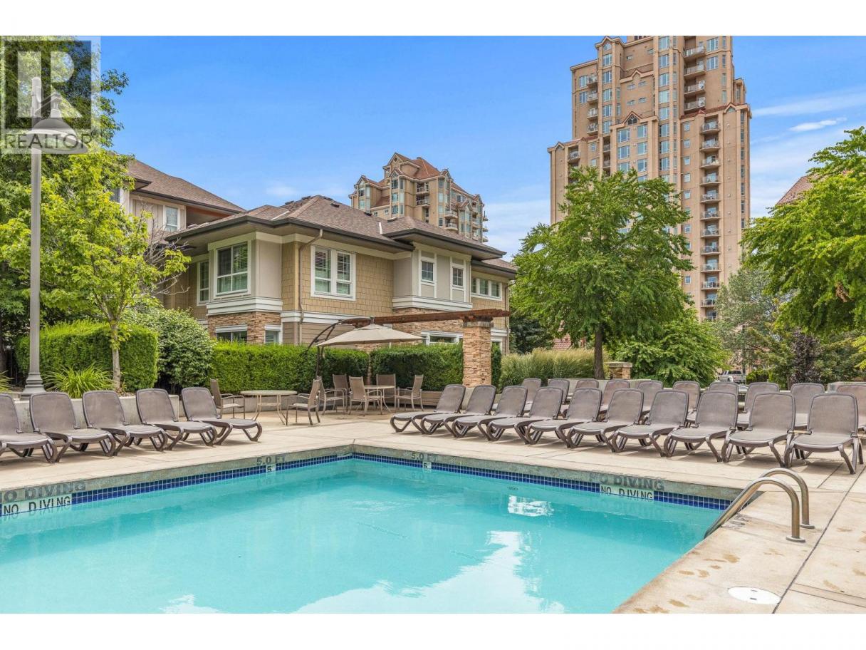 Gorgeous 8th-floor condo in the Skye Tower at Waterscapes. This 2-bedroom plus den, 2-bath home offers a sought-after layout with Okanagan Lake and mountain views. Floor-to-ceiling windows fill the space with natural light, paired with a modern kitchen featuring granite countertops, stainless steel appliances, a gas stovetop range, and peninsula seating. The living room includes a built-in electric fireplace and access to a lakeview patio. Bedrooms are thoughtfully separated for privacy, with the primary suite offering a walk-in closet and 5-piece ensuite. Includes one parking stall and storage locker. Enjoy resort-style amenities with a gym, outdoor pool, and two hot tubs, steps from the waterfront and downtown Kelowna. (id:6769)