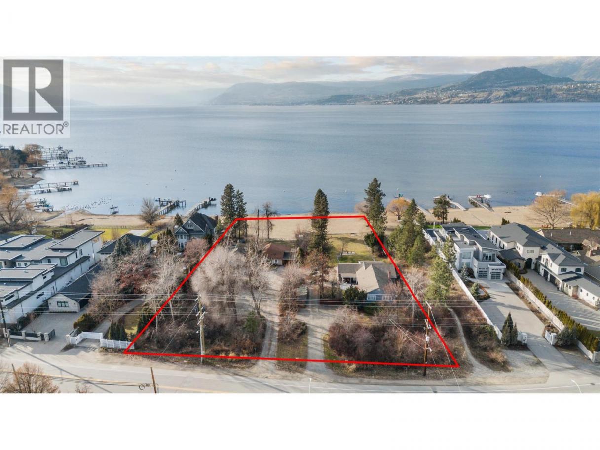 A truly rare and irreplaceable offering on Okanagan Lake! This exceptional waterfront estate comprises two side-by-side lakefront properties (MLS 10373808) 200 feet of prized shoreline across roughly 1.6 acres — a scale and frontage that is virtually impossible to recreate. Set along one of Kelowna’s most sought-after locations, the property features flat, usable land, expansive lake views, and direct access to the water, including a natural beach setting. The home provides immediate enjoyment while offering flexibility for future plans. Beyond the lifestyle appeal, this property presents a compelling land and development opportunity allowing for multiple planning pathways, including the potential to retain the properties as a private estate, or explore future redevelopment options subject to municipal approval. The site benefits from full municipal servicing, a significant advantage for any future vision. The combination of substantial shoreline, lot size, zoning flexibility, and location creates a rare opportunity for buyers who recognize the long-term value of waterfront land scarcity. Waterfront opportunities of this calibre are becoming increasingly rare, particularly those that allow for immediate enjoyment while preserving future possibilities. This is a once in a lifetime opportunity to secure a meaningful stretch of Okanagan Lake shoreline and shape the future in one of Kelowna’s most prestigious waterfront corridors. Don't miss your chance to invest here! (id:6769)