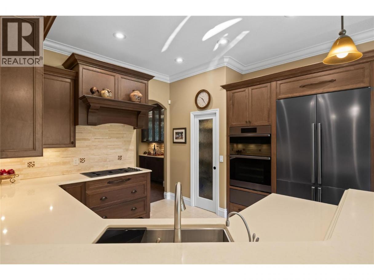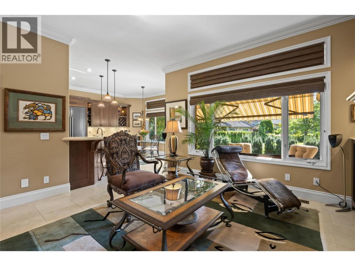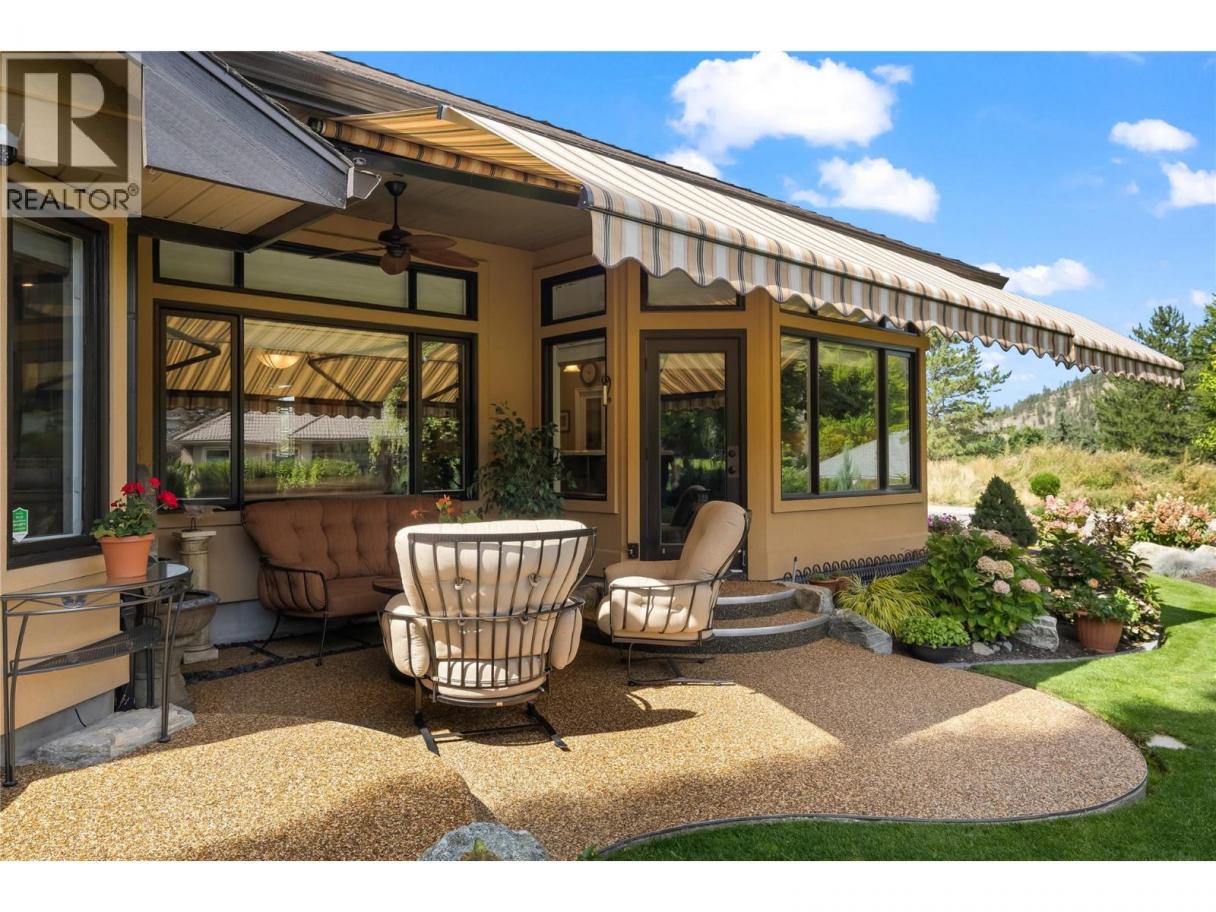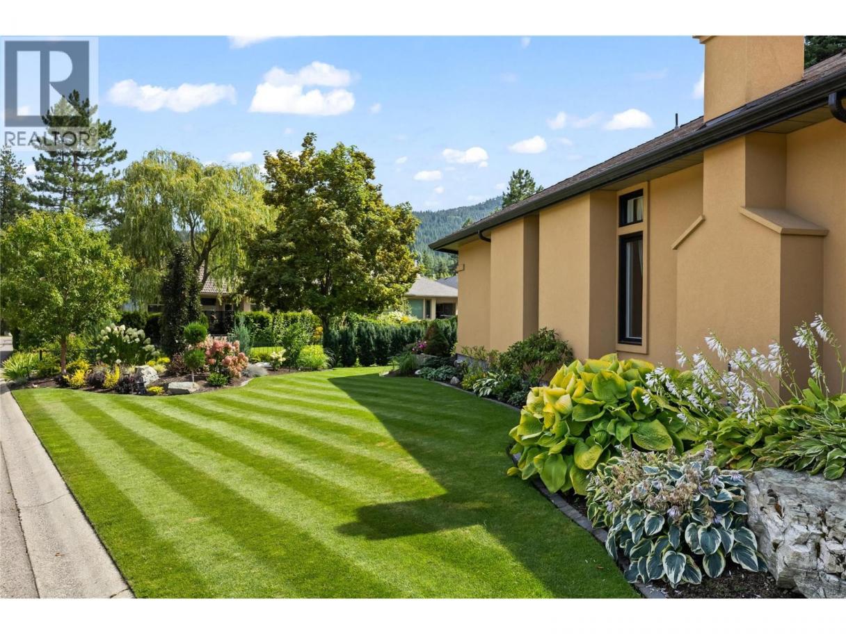Welcome to 3992 Gallaghers Parkway in the prestigious Gallaghers Canyon Golf Resort. This classic Torrey Pines floor plan in the premier ""Canyon Community"" is true functional living. With soaring ceilings, expansive windows, and ultimate privacy, the home seamlessly blends indoor elegance with outdoor living. The sunny patio with motorized awnings and upgraded landscaping provides a serene retreat on a green belt and is a short walk to the Scenic Canyon Regional Park trails. Inside, the recent renovation has had no detail overlooked—custom maple cabinetry, Cambria quartz countertops, NZ wool carpet and imported travertine tile flow throughout. The gourmet kitchen features premium appliances, wine fridge, and a walk in pantry, while the family room & great room each boast stone fireplaces and designer lighting. The luxurious primary suite offers a spa-inspired ensuite with heated floors, freestanding tub, dual vanities, and frameless glass, rain shower. Additional highlights include a unique, dedicated media room (or 3rd bed) with 92” screen and surround sound speakers that will take movie night to the next level! Some mechanical updates include a new furnace/AC, hot water tank and roof in 2018 and the home offers an oversized garage plus a crawl space for ample storage. Gallaghers’ amenities include an indoor pool, fitness centre, tennis, and vibrant social scene—this residence offers the best of resort-style living in one of Kelowna’s most desirable communities. (id:6769)