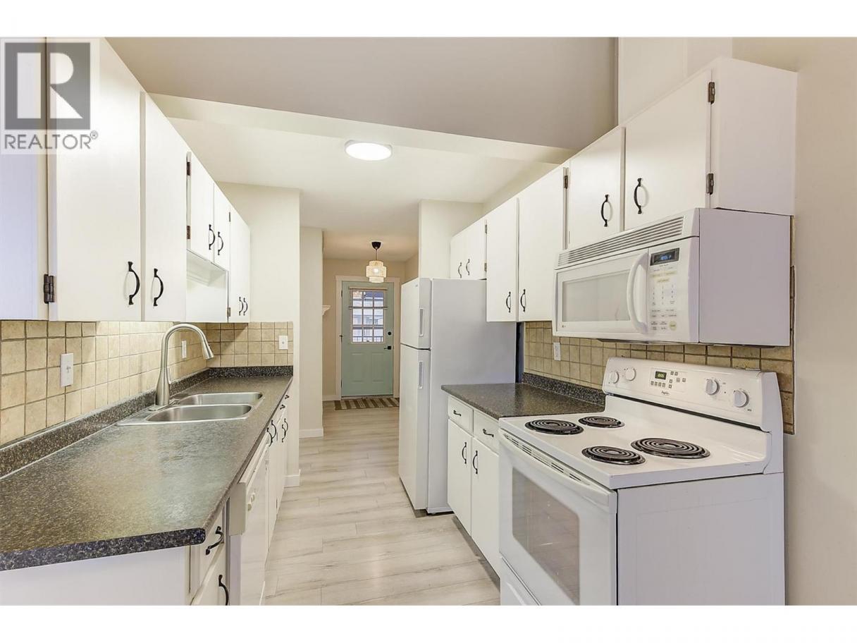 Welcome to this beautifully renovated 2-bedroom, 2-bathroom townhouse tucked into a quiet pocket of Rutland—directly across from Centennial Park. This home blends warmth, character, and convenience in all the right ways. Inside, you’ll be wowed by huge vaulted ceilings finished with tongue-and-groove cedar, creating a stunning sense of space. A cozy wood-burning fireplace with a shiplap mantle anchors the living area, perfect for relaxed evenings at home. The thoughtful layout includes two generous bedrooms, with the primary featuring a walk-in ensuite. Recent upgrades include hot water tank, windows, and a brand-new carport roof—so the big items are already done. Step outside to the back patio where mature trees create a true forest-like oasis, offering privacy and an unbeatable outdoor vibe. Storage is abundant with two dedicated storage units (one in the carport and one on the deck). Three portable A/C units are included for year-round comfort & Enjoy low strata fees. A rare combination of character, updates, & location—this one won't last long! Surrounded by world-class wineries, golf, skiing, lakes & beaches, international airport, UBCO, & OC. Stop scrolling and start living! Book a viewing today (id:6769)