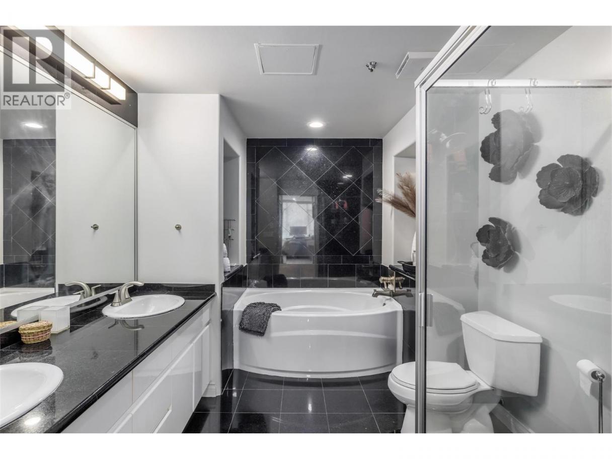 RARELY AVAILABLE - Waterfront Sub-Penthouse at the center of Kelowna’s downtown core! Set directly on the lake with access to private moorage. The Penthouse comes with 2962 square feet all on one floor at “The Lagoons”. Enjoy sweeping views of The Lake, City, and Mountains from your 4 private decks with Italian non-slip tiling. The layout features 3 bedrooms each with their own ensuite, plus a guest bath and den. The kitchen is equipped with two islands, granite and quartz countertops, custom cabinetry and premium appliances by Miele, KitchenAid, and LG. The formal dining area with wet bar flows into the grand living room that is framed by floor-to-ceiling windows and hosts the gas fireplace. The Master Bedroom has large bay windows, deck access, a generous walk-in closet, and a 5-piece spa-inspired ensuite with soaker tub and tiled shower. Additional highlights include hardwood flooring, extensive built-ins, integrated media wiring by Beyond Audio and meticulous finishings throughout. Residents of The Lagoons enjoy resort-style amenities: indoor and outdoor pools, hot tub, sauna, gym, clubhouse, bike storage, and secure parking. This is the pinnacle of waterfront city living—luxury, convenience and breathtaking views in one. (id:6769)