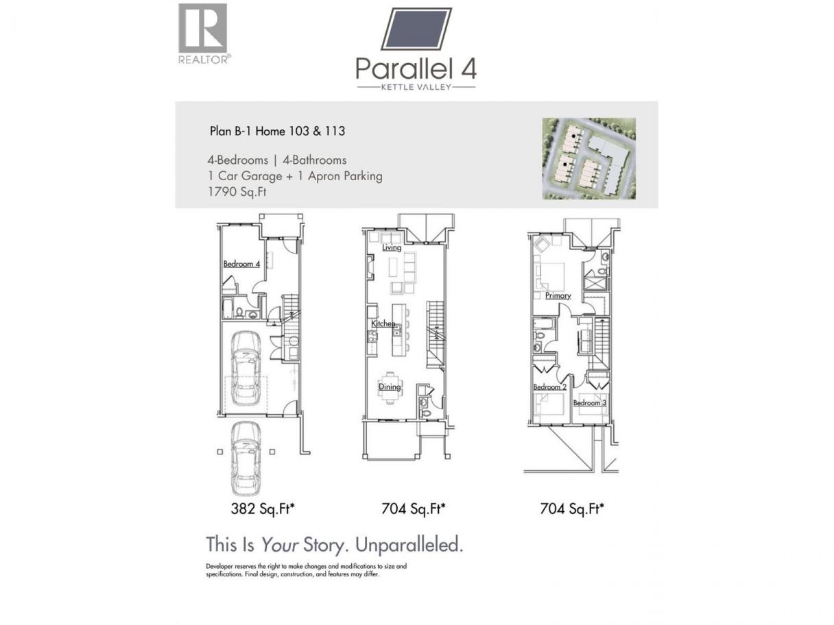 Unparalleled Living in Kettle Valley. Why Wait for Someday? Your Kettle Valley Story Starts Now. Brand New, Move-In Ready Townhomes, Live/Work Homes, & Condos. Welcome to Parallel 4, the newest addition to Kettle Valley—Kelowna’s award-winning, family-friendly neighbourhood. It’s a hub designed around the 4 cornerstones of an unparalleled life: community, nature, purpose, & growth. Enjoy all the benefits of a brand-new home – stylish & modern interiors, new home warranty, No PTT (some conditions apply), & the excitement of being the first to live here. This 4-bed, 4-bath townhome offers views of Okanagan Lake & neighbouring parks. The stylish kitchen is the centre of the main living area, & features an oversized waterfall island, quartz countertops & backsplash, & designer brass fixtures. Access the front patio from the dining room, & enjoy movie-night in the comfortable living room. The primary suite, with an ensuite and walk-in closet, is on the upper floor alongside two additional bedrooms. A fourth bedroom and bathroom are on the lower level. Other thoughtful details include custom shelving in closets, roller blind window coverings, an oversized single-car garage roughed in for EV charging, and a fenced yard. Located across Kettle Valley Village Centre, enjoy a walkable lifestyle close to the school, shops, pub and parks. Townhomes starting from $734,900. Photos & virtual tour of a similar home. Showhome open Sat-Sun 12-3pm. (id:6769)
