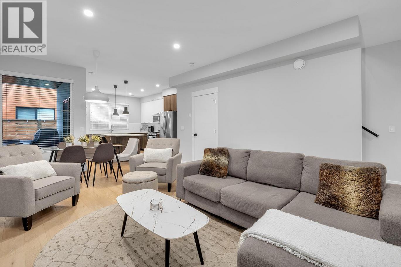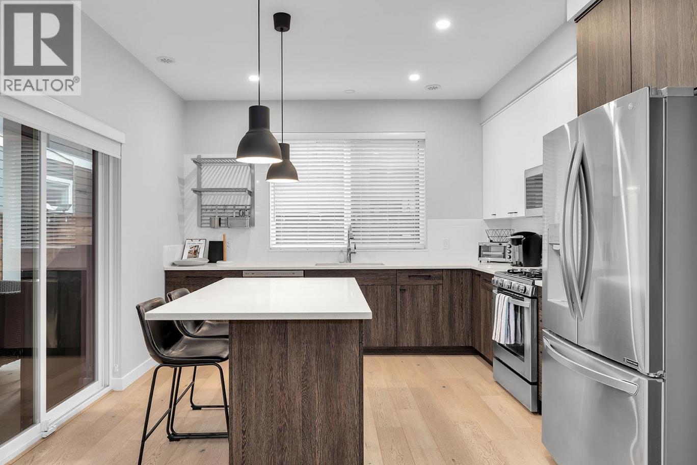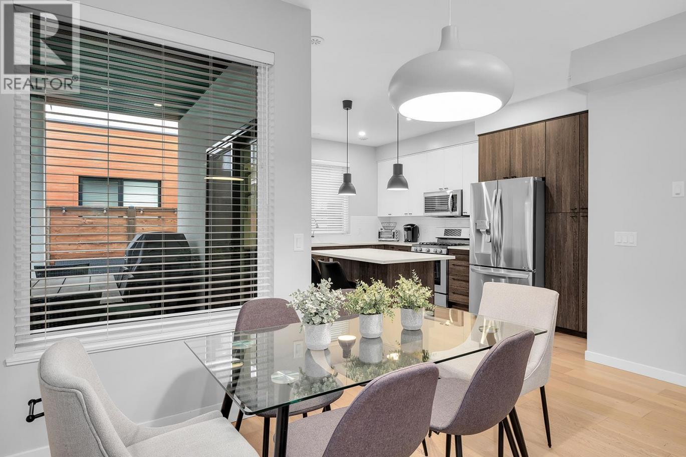 Located in Kelowna South, this 2-storey townhome offers an organized layout, private outdoor space, and a walkable lifestyle close to everything that matters. Approximately 1,545 sq ft is thoughtfully designed with a welcoming foyer that opens into connected living, dining, and kitchen spaces, creating an easy flow for everyday life. The kitchen stands out with sleek quartz countertops, high end stainless steel appliances, and modern pendant lighting, with direct access to the covered patio and small fenced yard featuring low maintenance synthetic turf. A main floor bedroom adds flexibility for guests or a home office, alongside a convenient 2 piece bathroom and utility closet. Upstairs, the primary bedroom is set apart with a walk-in closet and private ensuite, while two additional bedrooms share a full 4 piece bathroom. Laundry is located on the upper level for everyday convenience. Large windows and skylights bring in natural light throughout both levels. A detached single-car garage accessed from the rear laneway adds functionality, all within an intimate four-plex setting. The front porch adds charm and curb appeal, while the backyard offers a quiet spot to unwind. Set in a central, walkable Kelowna South location, beaches, shopping, dining, transit, KGH, and schools are all within an easy stroll. Ideal for those looking to upgrade, or investors seeking a well located townhome with strong lifestyle appeal. (id:6769)
