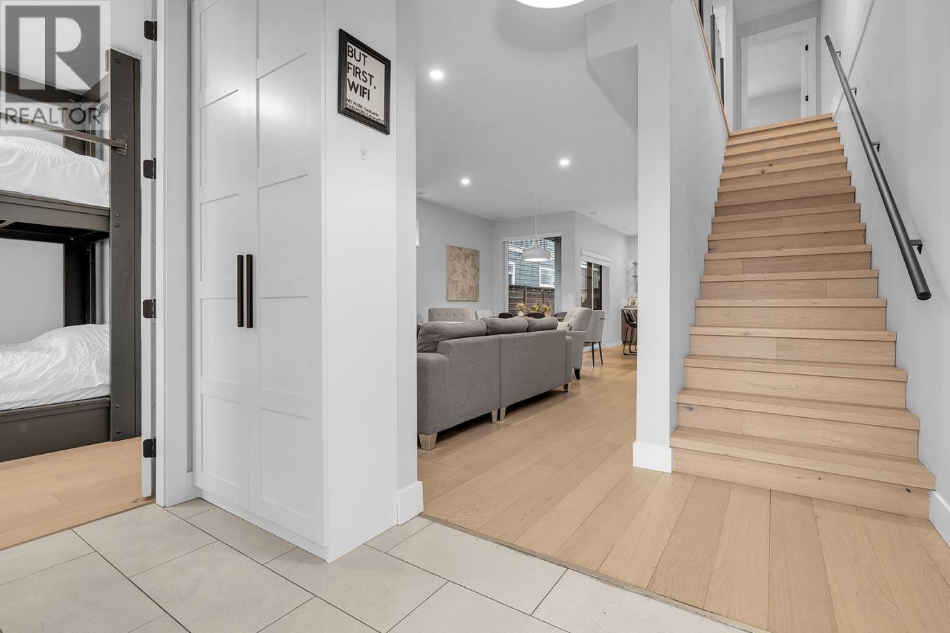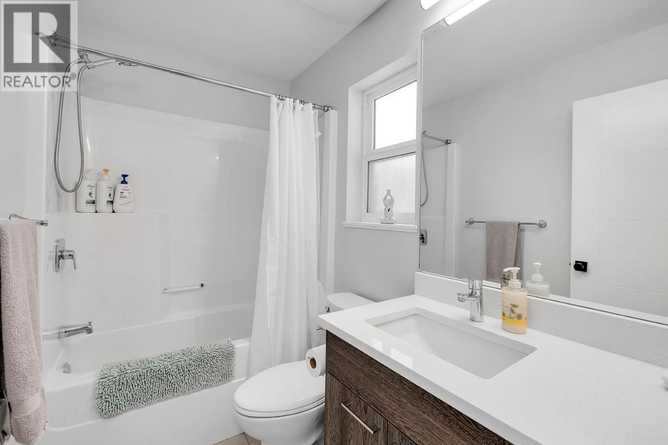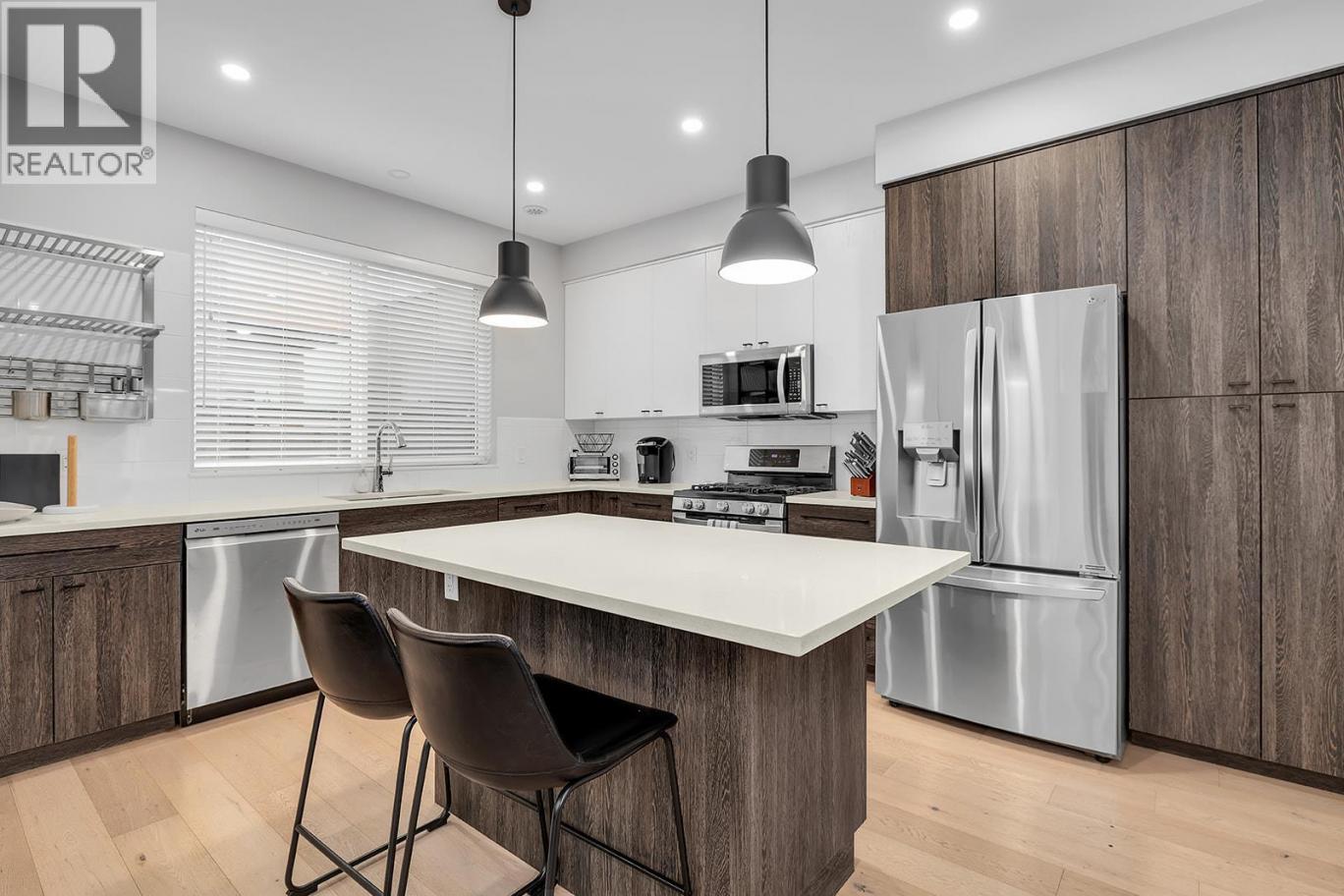 Located in Kelowna South, this 2-storey townhome offers an organized layout, private outdoor space, and a walkable lifestyle close to everything that matters. Approximately 1,545 sq ft is thoughtfully designed with a welcoming foyer that opens into connected living, dining, and kitchen spaces, creating an easy flow for everyday life. The kitchen stands out with sleek quartz countertops, high end stainless steel appliances, and modern pendant lighting, with direct access to the covered patio and small fenced yard featuring low maintenance synthetic turf. A main floor bedroom adds flexibility for guests or a home office, alongside a convenient 2 piece bathroom and utility closet. Upstairs, the primary bedroom is set apart with a walk-in closet and private ensuite, while two additional bedrooms share a full 4 piece bathroom. Laundry is located on the upper level for everyday convenience. Large windows and skylights bring in natural light throughout both levels. A detached single-car garage accessed from the rear laneway adds functionality, all within an intimate four-plex setting. The front porch adds charm and curb appeal, while the backyard offers a quiet spot to unwind. Set in a central, walkable Kelowna South location, beaches, shopping, dining, transit, KGH, and schools are all within an easy stroll. Ideal for those looking to upgrade, or investors seeking a well located townhome with strong lifestyle appeal. (id:6769)