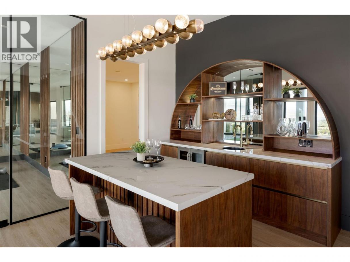 This architectural masterpiece blends modern sophistication with timeless elegance, set high above the city for sweeping lake, valley & mountain views. Designed for both grand entertaining & intimate living, the main level flows from a dramatic 2-storey living room with marble fireplace to a chef’s kitchen with Fisher & Paykel appliances, waterfall-edge marble island, butler’s pantry & dining area opening to a covered deck. The primary suite is a private retreat with panoramic views, spa-inspired ensuite & boutique-style walk-in closet. A stylish den, powder room & mud/laundry complete this level. Upstairs offers two view bedrooms with walk-in closets & ensuites, plus a lounge with wet bar & sun deck leading to the rooftop patio. The lower level is an entertainer’s dream — recreation room, wet bar, glass-enclosed gym, wine room & walkout to a covered patio. A fully self contained 1-bedroom legal suite with private entry provides flexibility for guests or premium rental income. Throughout, luxury finishes — marble, custom millwork, Lutron lighting & accent stair lighting — create a cohesive, elevated style. This is Upper Mission living without compromise. (id:6769)