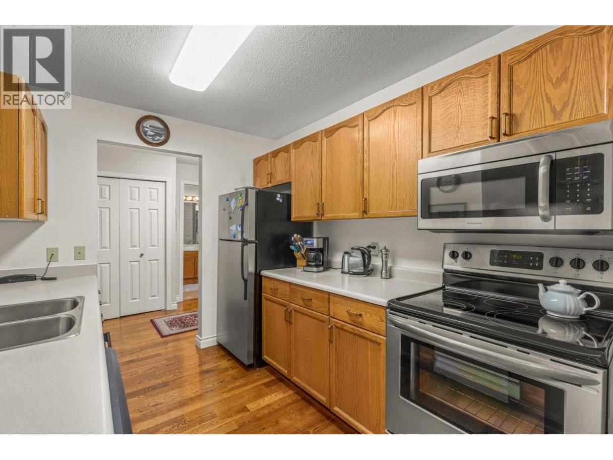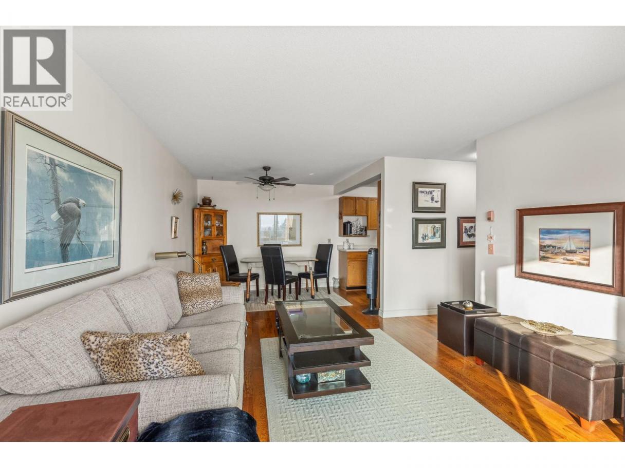 Welcome home to a life of comfort, convenience, and peace of mind in this beautifully maintained, sought-after senior building. This is more than just a condo; it’s a secure and welcoming environment designed for you to thrive. This spacious 2-bedroom, 1-bathroom condo has been meticulously updated and maintained, offering a truly turnkey living experience. Step inside to discover elegant, updated hardwood flooring that flows throughout the main living areas. Rest easy in both bedrooms, featuring noise-reducing triple-pane windows for ultimate tranquility and energy efficiency. The main bathroom has also been tastefully updated to provide a fresh, modern feel. One of the property's finest features is your private patio, an inviting space to enjoy your morning coffee while taking in breathtaking views of the sparkling lake and majestic mountains. Safety and convenience are paramount here. Park your car and enjoy true walkability to everything you need: Health & Essentials: Doctors' offices, Save-on-Foods, and Shoppers Drug Mart are all within a short stroll. Leisure & Fitness: Grab a coffee at Starbucks, or stay active with easy access to the community pool and gym. Nature: For the avid walker or nature lover, beautiful walking trails are literally right out your front door. Okanagan Lake: A short 5-minute drive transports you to the shores of Okanagan Lake, perfect for a relaxing swim or simply sitting back to enjoy the scenery. Schedule your private viewing today! (id:6769)