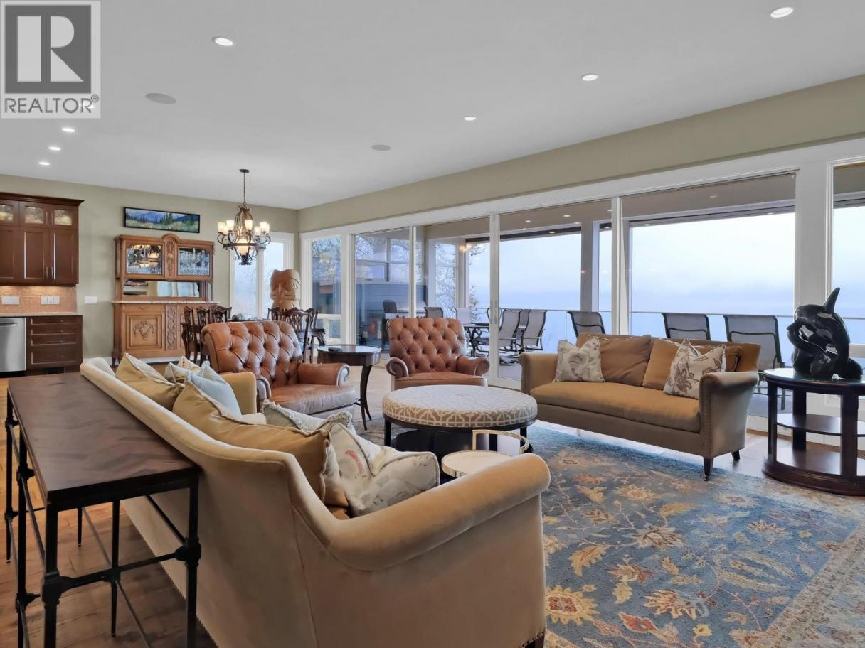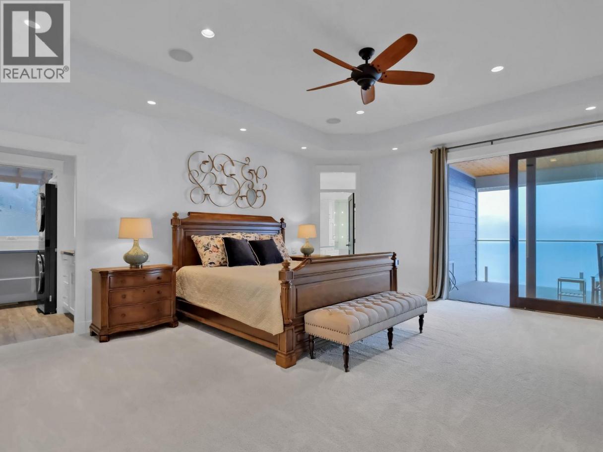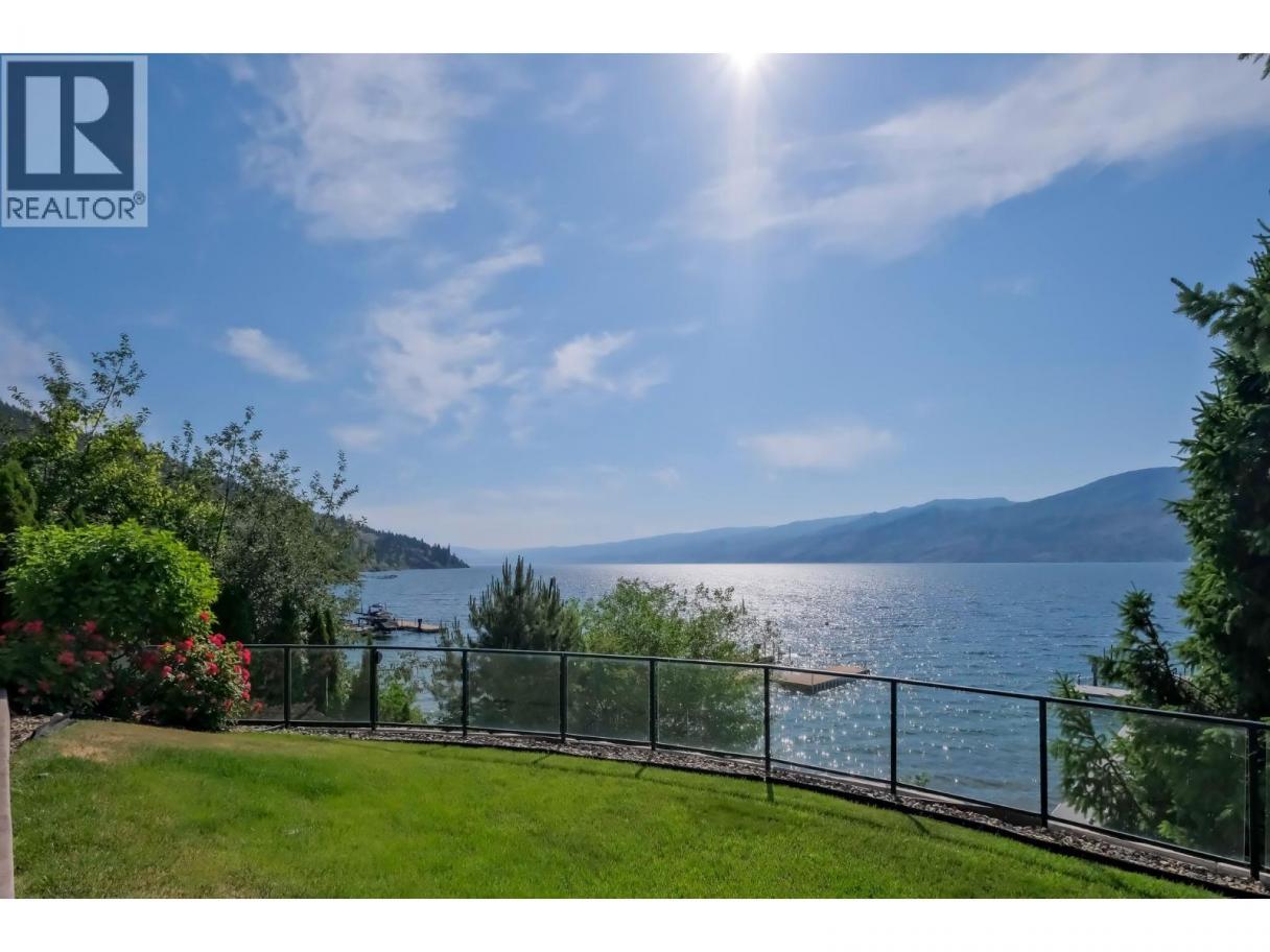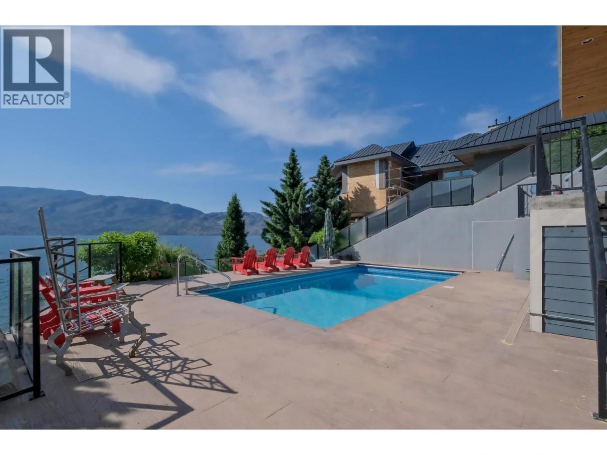 Exceptional PEACHLAND LAKESHORE ESTATE offers a rare combination of luxury and functionality. Situated on .31 acres with easy access to sandy beaches and 52 ft of lakefront. This meticulous landscape and the FENCED yard creates a private sanctuary. The main residence boasts an ELEVATOR that CONNECTS ALL THREE floors, ensuring ACCESIBILITY for everyone. The open concept floor plan features a stunning GLASS wall that opens onto a large stamped concrete deck, offering breathtaking views of the LAKE, MOUNTAINS, POOL and DOCK. The spacious PRIMARY suite includes an attached office, luxurious ensuite, private deck and laundry room. NEW hot tub on a covered deck overlooks the lake. Above the spacious THREE BAY GARAGE with new epoxy floors is a charming GUEST COTTAGE with FOUR BEDROOMS, kitchen, laundry and one and a half bathrooms. A breezeway seamlessly connects the cottage to the main home. Enjoy outdoor living with an INGROUND HEATED POOL overlooking the lake. Enjoy BOATING from pile driving deck equipped with a 7 TON BOATLIFT. (id:6769)