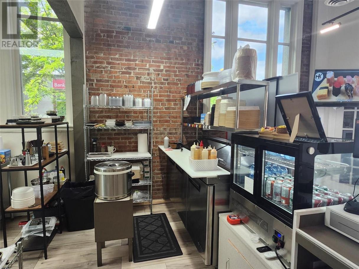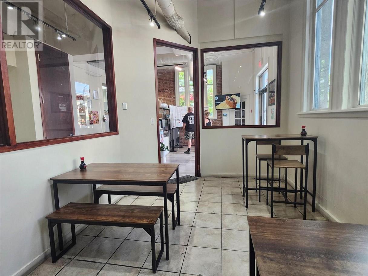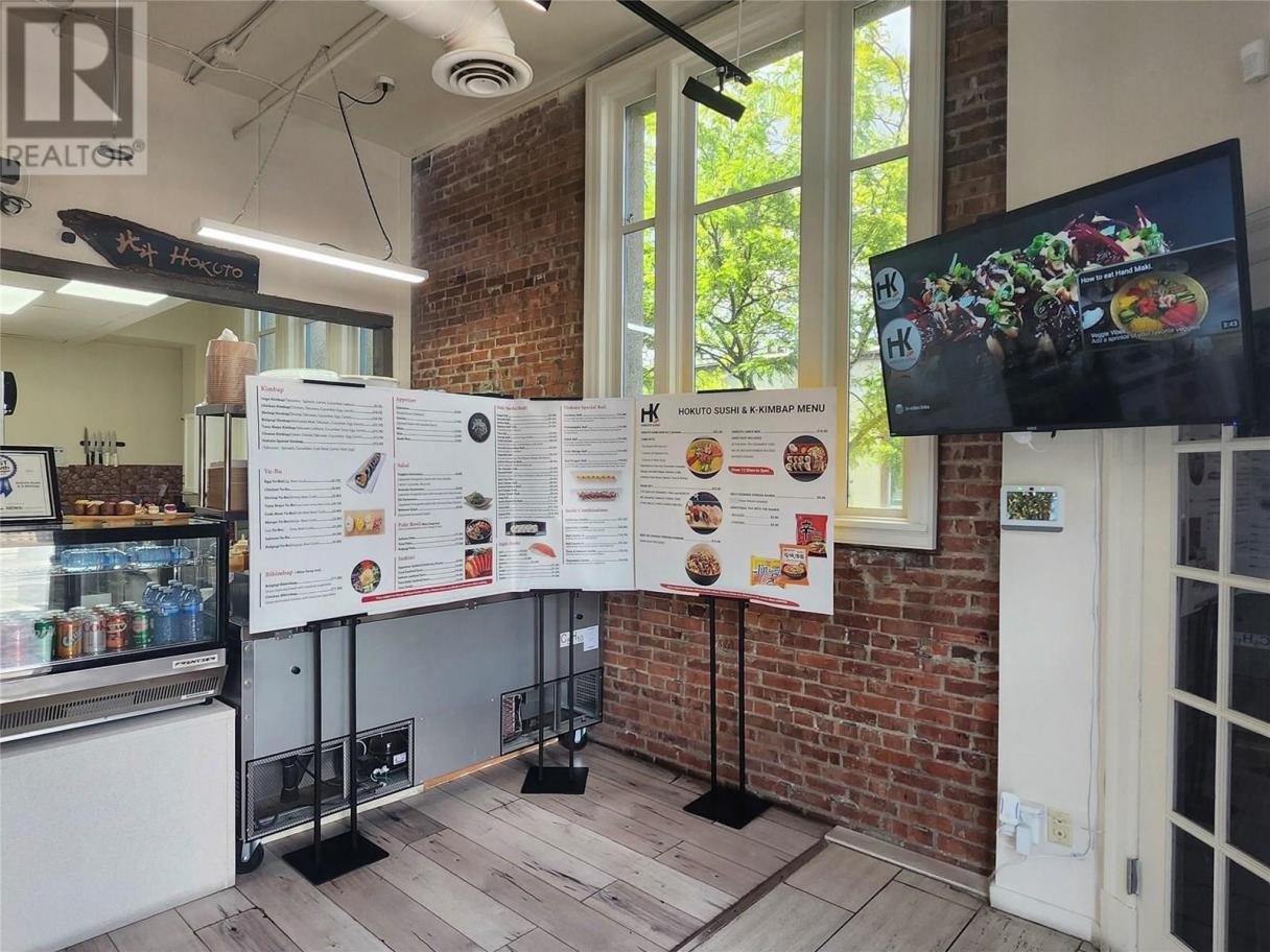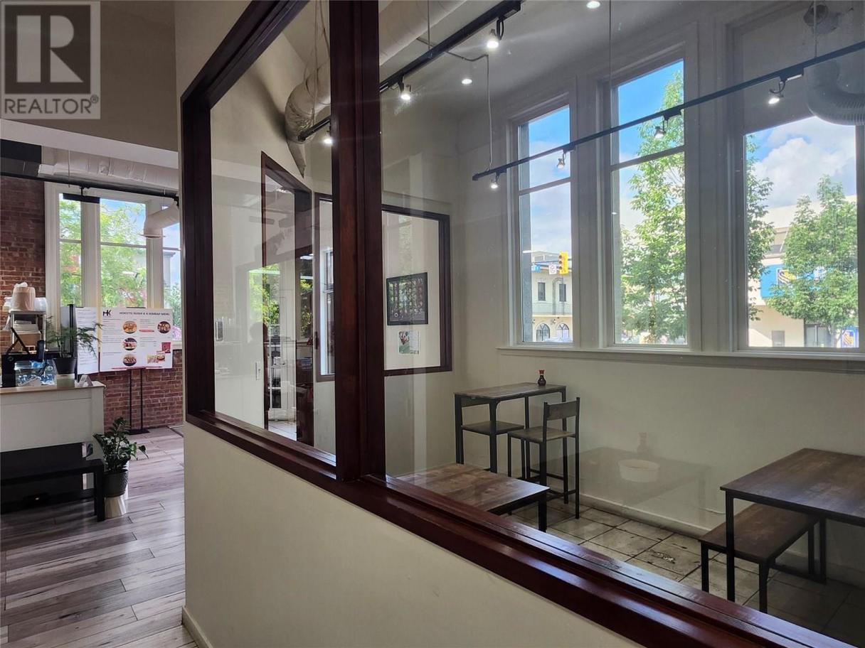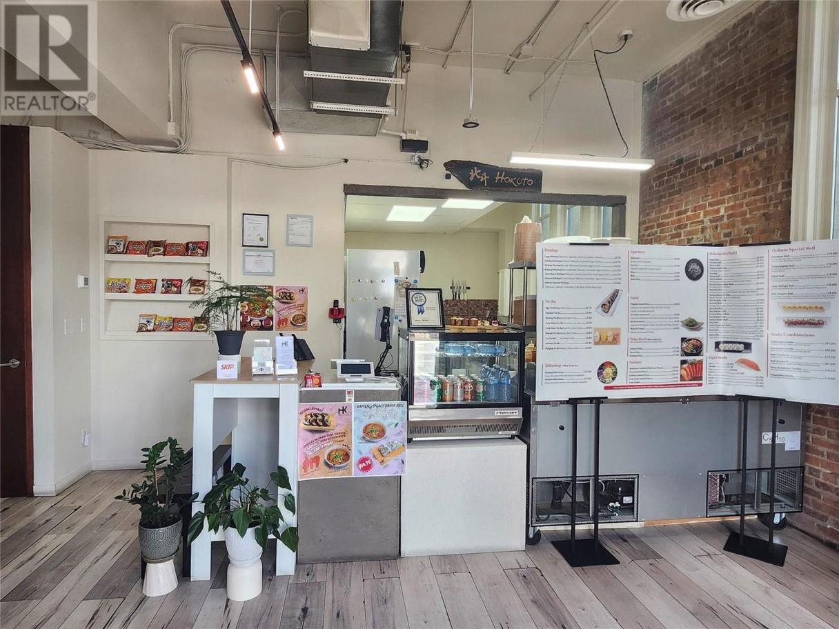 A unique opportunity to secure a new restaurant/cafe located in the heart of Penticton. Arguably the most beatiful city located in the Southern end of the Okanagan Lake, Pentiction is a growing city that offers endless opportunities with growing number of tourists and locals. This corner restaurant is right in the center of the busiest street surrounded by top businesses such as CIBC, TD bank, etc. With the great street appeal, this Japanese/Korean Fusion restaurant offers unique tastes of quick menus, instant Ramen, and snacks that is becoming popular everywhere. Equiped with Residential Hood & Electric stove along with a one of a kind intant Ramen machine, this restaurant is easy to run and versitile in responding to the customer demand. Since opening in 2024, this restaurant has been growing and should grow further. All the equipment is new and worth. New accessible washroom just installed. 1,200sf offers additional room to expand either kitchen and/or dining hall. Versatile layout offers even more possible servies such as Icecream, outdoor BBQ, and even Cafe business. There is also beautiful outdoor patio space included in the lease. Gross lease is just over $3,000 per month and secured until 2029. (id:6769)