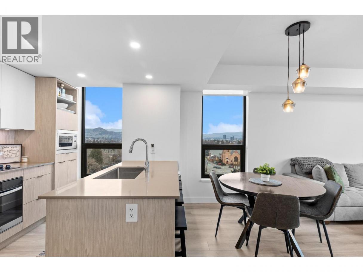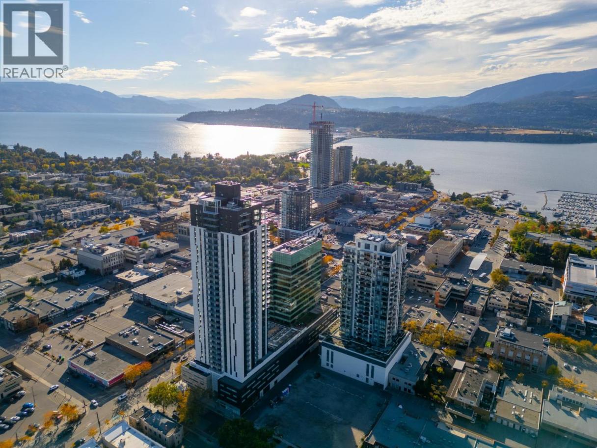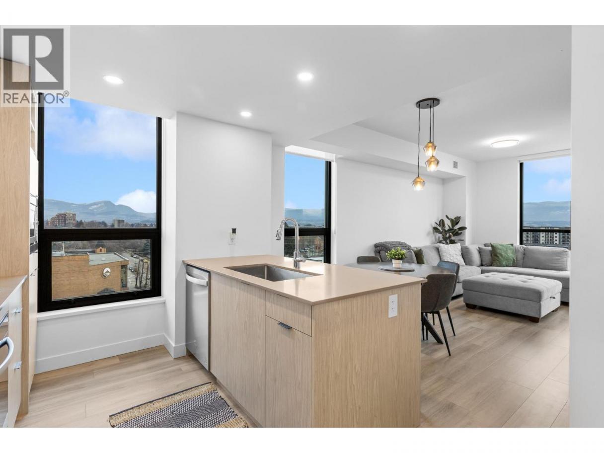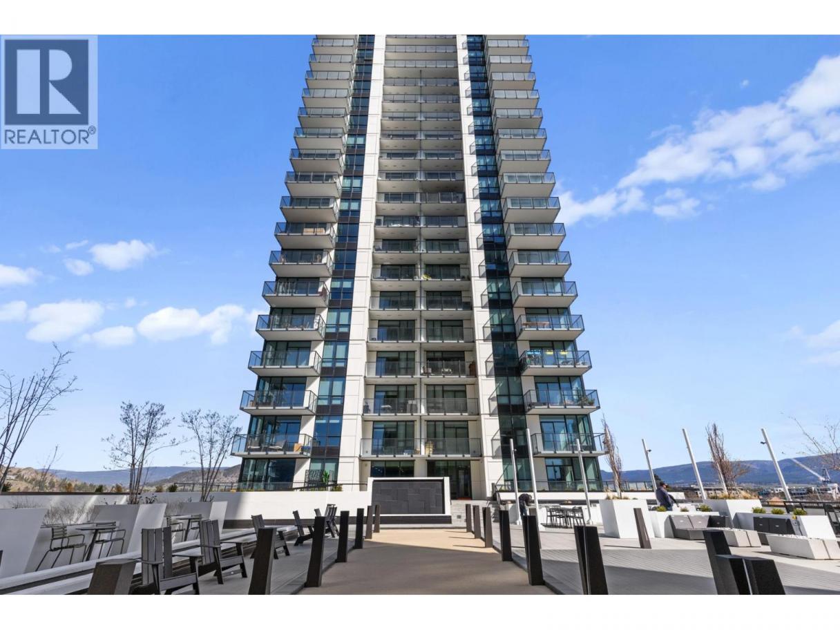 Welcome to Bertram, where elevated living meets an effortless lakeside lifestyle. This beautifully appointed corner unit offers two bedrooms and two bathrooms and is ideally positioned to capture sweeping lake views, abundant natural daylight, and stunning sunsets. Completed in 2024, this residence is wrapped in expansive windows that fill the home with sunshine throughout the day while showcasing views of Lake Okanagan, the city skyline, and surrounding valley. The thoughtfully designed split-bedroom layout provides excellent privacy, while the open-concept living and dining areas create a seamless flow for both everyday living and entertaining. The contemporary kitchen features quartz countertops, stainless steel appliances, and clean modern cabinetry, delivering a timeless and functional design. Step out onto the covered balcony to enjoy morning coffee or unwind in the evening as the sun sets over the lake. Residents of Bertram enjoy an impressive collection of resort-style amenities, including a rooftop heated pool and spacious hot tub with panoramic 360-degree views, outdoor BBQ and lounge areas, bocce ball court, community gardens, fully equipped fitness centre, dog run and dog wash station, secure bike room, and multiple indoor lounges and work-from-home spaces. This home includes one secure parking stall and a private bike locker. (id:6769)