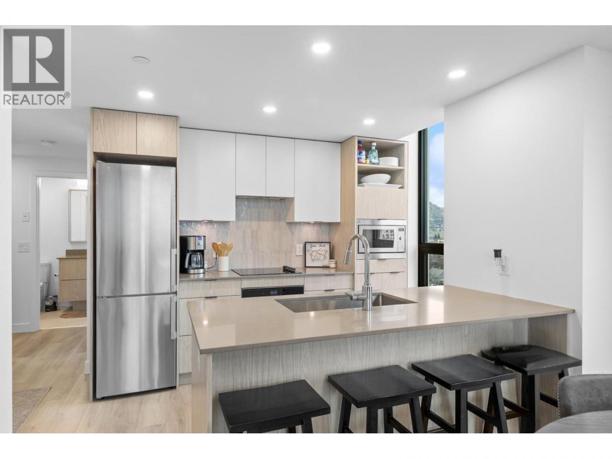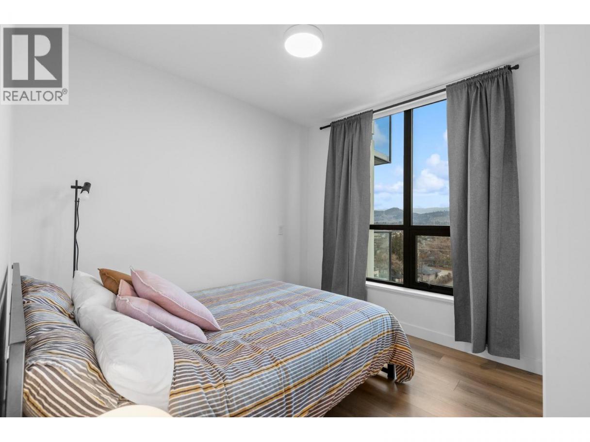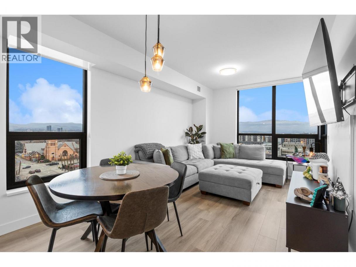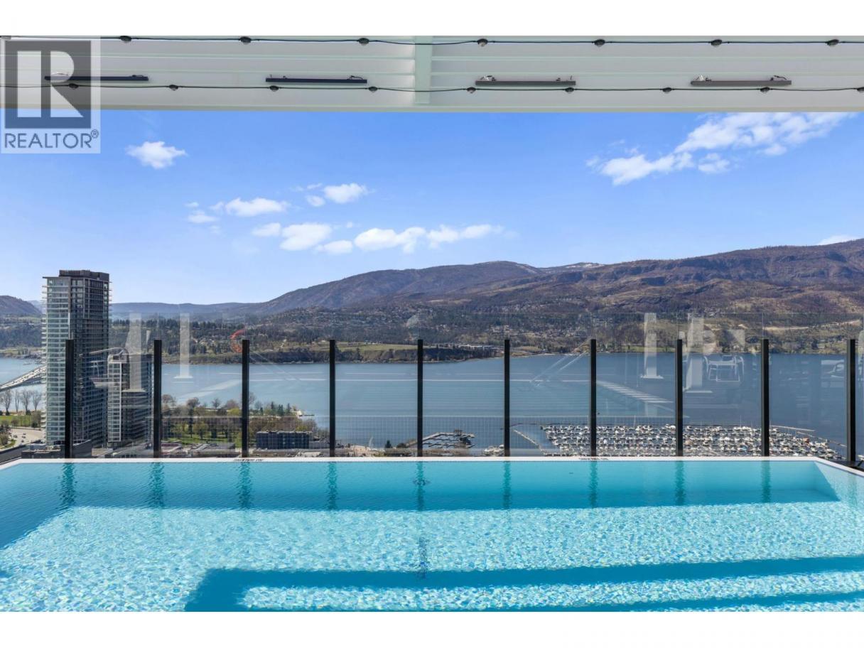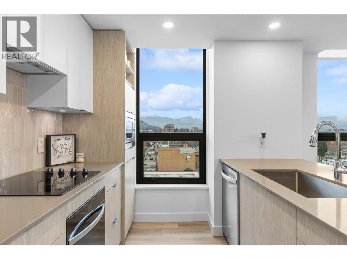 Welcome to Bertram, where elevated living meets an effortless lakeside lifestyle. This beautifully appointed corner unit offers two bedrooms and two bathrooms and is ideally positioned to capture sweeping lake views, abundant natural daylight, and stunning sunsets. Completed in 2024, this residence is wrapped in expansive windows that fill the home with sunshine throughout the day while showcasing views of Lake Okanagan, the city skyline, and surrounding valley. The thoughtfully designed split-bedroom layout provides excellent privacy, while the open-concept living and dining areas create a seamless flow for both everyday living and entertaining. The contemporary kitchen features quartz countertops, stainless steel appliances, and clean modern cabinetry, delivering a timeless and functional design. Step out onto the covered balcony to enjoy morning coffee or unwind in the evening as the sun sets over the lake. Residents of Bertram enjoy an impressive collection of resort-style amenities, including a rooftop heated pool and spacious hot tub with panoramic 360-degree views, outdoor BBQ and lounge areas, bocce ball court, community gardens, fully equipped fitness centre, dog run and dog wash station, secure bike room, and multiple indoor lounges and work-from-home spaces. This home includes one secure parking stall and a private bike locker. (id:6769)