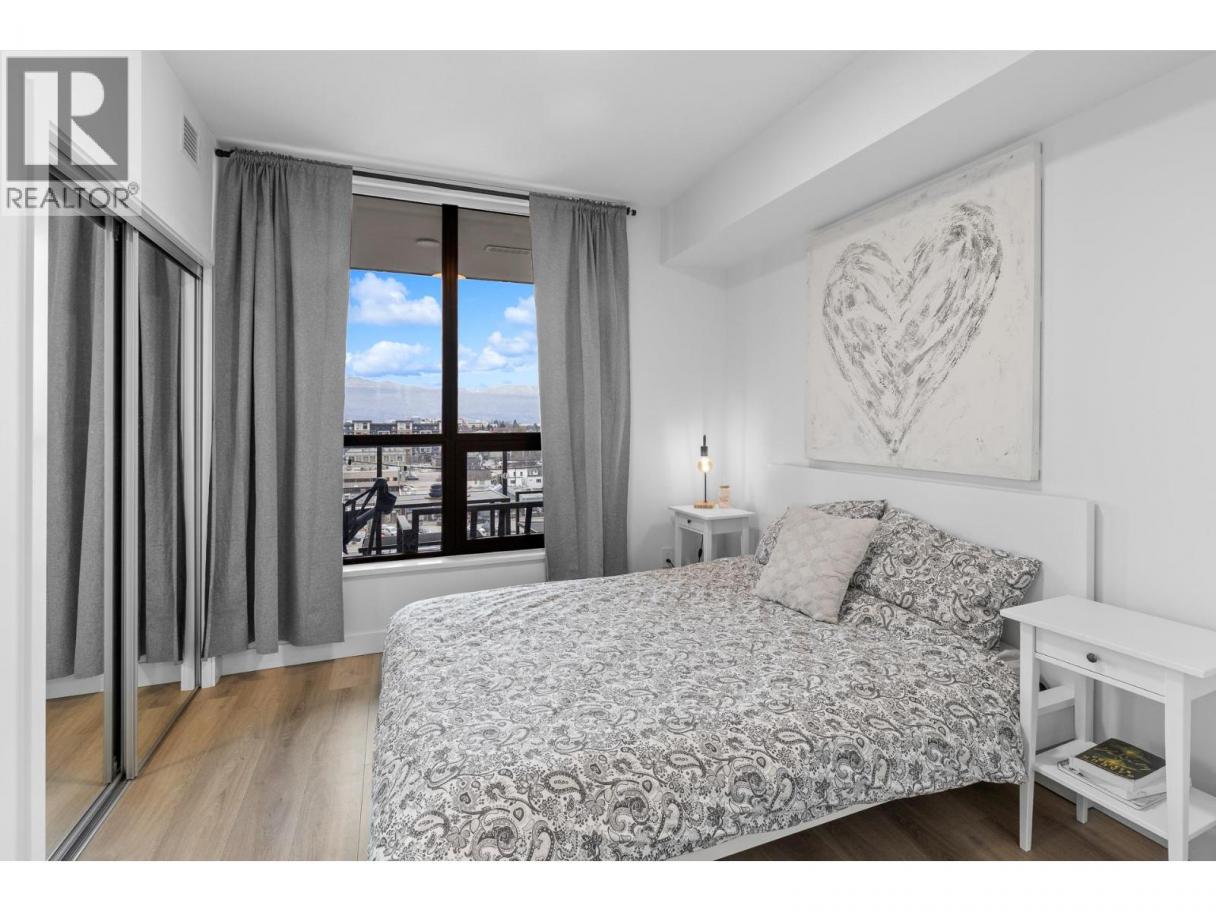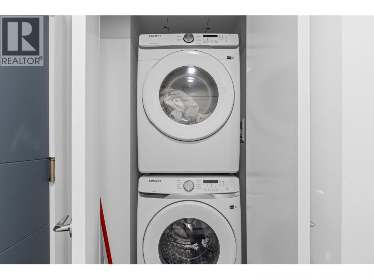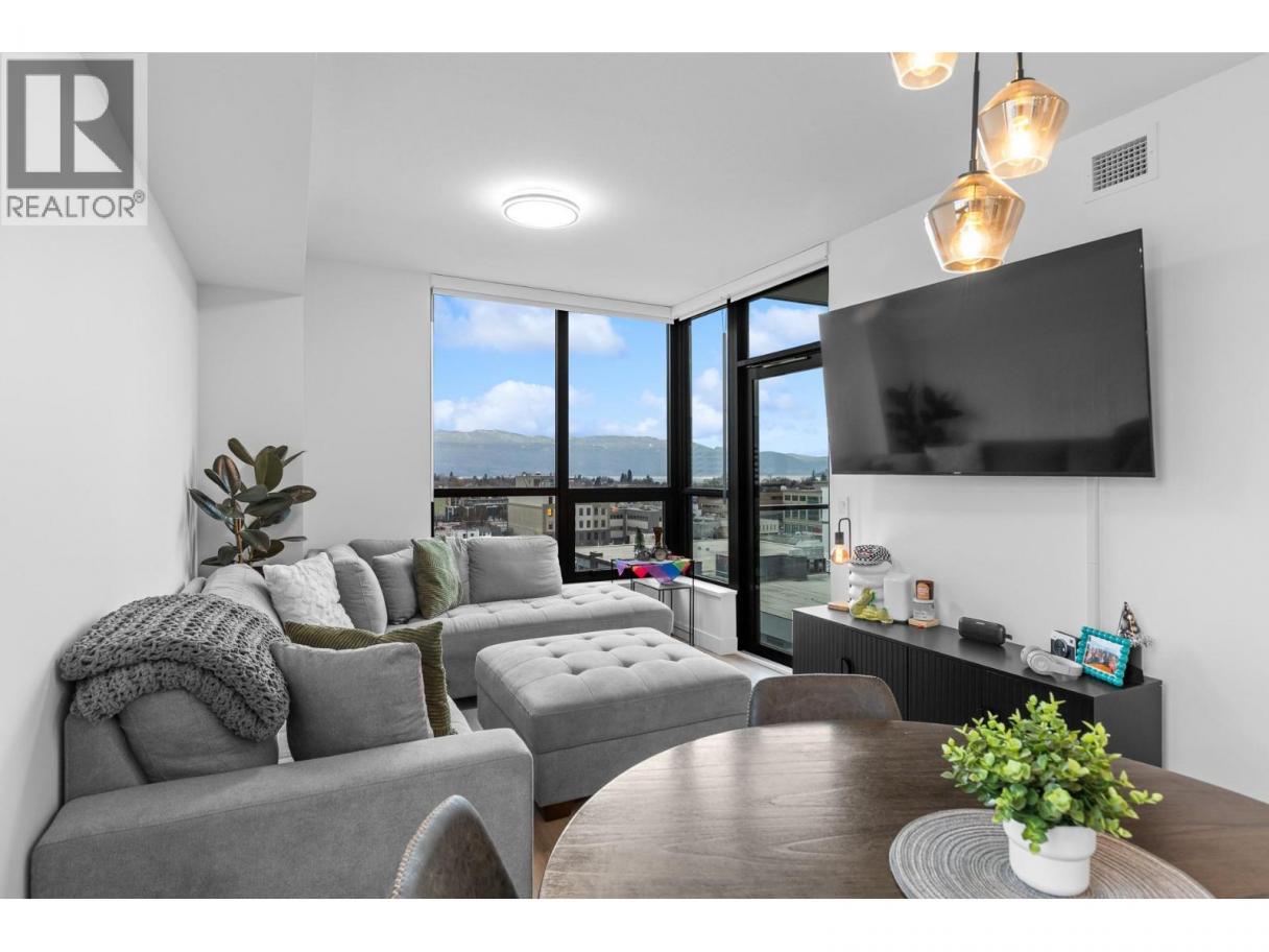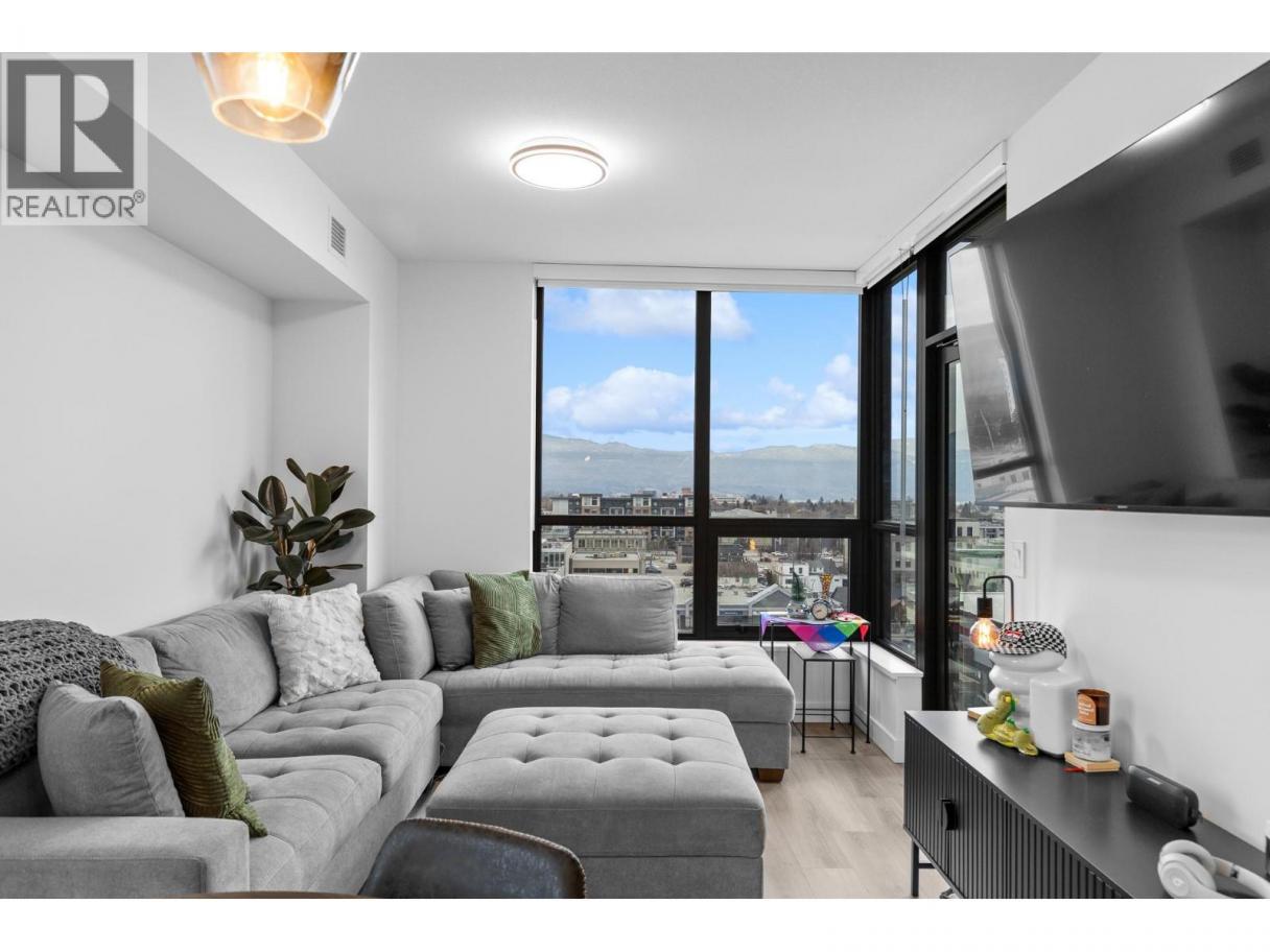 Welcome to Bertram, where elevated living meets an effortless lakeside lifestyle. This beautifully appointed corner unit offers two bedrooms and two bathrooms and is ideally positioned to capture sweeping lake views, abundant natural daylight, and stunning sunsets. Completed in 2024, this residence is wrapped in expansive windows that fill the home with sunshine throughout the day while showcasing views of Lake Okanagan, the city skyline, and surrounding valley. The thoughtfully designed split-bedroom layout provides excellent privacy, while the open-concept living and dining areas create a seamless flow for both everyday living and entertaining. The contemporary kitchen features quartz countertops, stainless steel appliances, and clean modern cabinetry, delivering a timeless and functional design. Step out onto the covered balcony to enjoy morning coffee or unwind in the evening as the sun sets over the lake. Residents of Bertram enjoy an impressive collection of resort-style amenities, including a rooftop heated pool and spacious hot tub with panoramic 360-degree views, outdoor BBQ and lounge areas, bocce ball court, community gardens, fully equipped fitness centre, dog run and dog wash station, secure bike room, and multiple indoor lounges and work-from-home spaces. This home includes one secure parking stall and a private bike locker. (id:6769)
