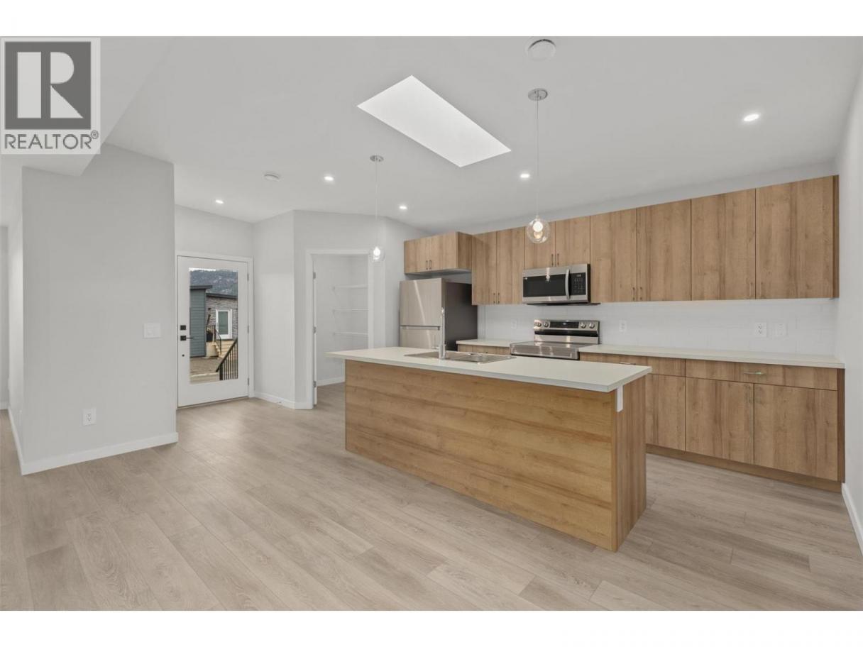 Welcome to Deer Meadows, a vibrant and well-connected neighbourhood just steps from the Rail Trail, offering direct access to Wood Lake and the crystal-blue waters of Kalamalka Lake. Enjoy miles of scenic trail systems stretching from Vernon to Kelowna, all while being only a quick 10-minute drive to Kelowna International Airport and UBCO. This thoughtfully designed Monarch home, built by Woodland Crafted Homes, features a modern layout and distinctive exterior appeal. Offering 3 bedrooms and 2 bathrooms, the design is ideal for those seeking both style and functionality. Enter through the bright front patio into an open-concept kitchen and highly sought-after seamless living and dining space—perfect for everyday living and entertaining. The guest bedroom and spacious primary suite are positioned at the rear of the home, creating optimal space distribution and added privacy. Unlike other models, this home includes a full garage, providing secure parking and additional storage. The secluded, fully fenced backyard is designed to capture maximum sunshine, allowing homeowners to fully enjoy the Okanagan lifestyle. Rentals and pets are permitted, and short-term rentals are allowed, making this an excellent opportunity for both homeowners and investors alike. (id:6769)
