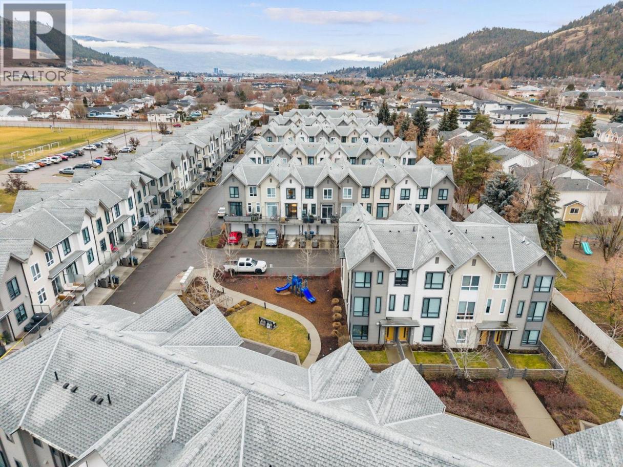 Welcome to Drysdale Row. OPEN HOUSE Feb 7 and Feb 8, 10 am-12 pm. This family-friendly 3-bedroom plus den townhome is the heart of Glenmore and is perfectly located directly across from Knox Mountain Middle School. Designed for easy living, the open-concept main floor is bright and inviting, with a patio that overlooks the central park, ideal for morning coffee or keeping an eye on the kids at play. A rare front yard adds even more outdoor space to enjoy. Do you have pets? No worries about size here and you can have 2 dogs or 2 cats! Upstairs, the spacious primary bedroom features a walk-through closet (with doors) leading to a private 4-piece ensuite, while two additional bedrooms, a third bathroom and stacked laundry can be found. This home also has versatile den providing room to have a fourth bedroom, office, work out room. The ideas are endless. A tandem garage plus apron parking make coming and going simple. The apron is large enough for a F-150 to park on it. Set in one of Kelowna’s most sought-after family neighbourhoods, this home offers the perfect blend of lifestyle, location, and comfort. Call us today for a showing. This home is not going to last long. (id:6769)