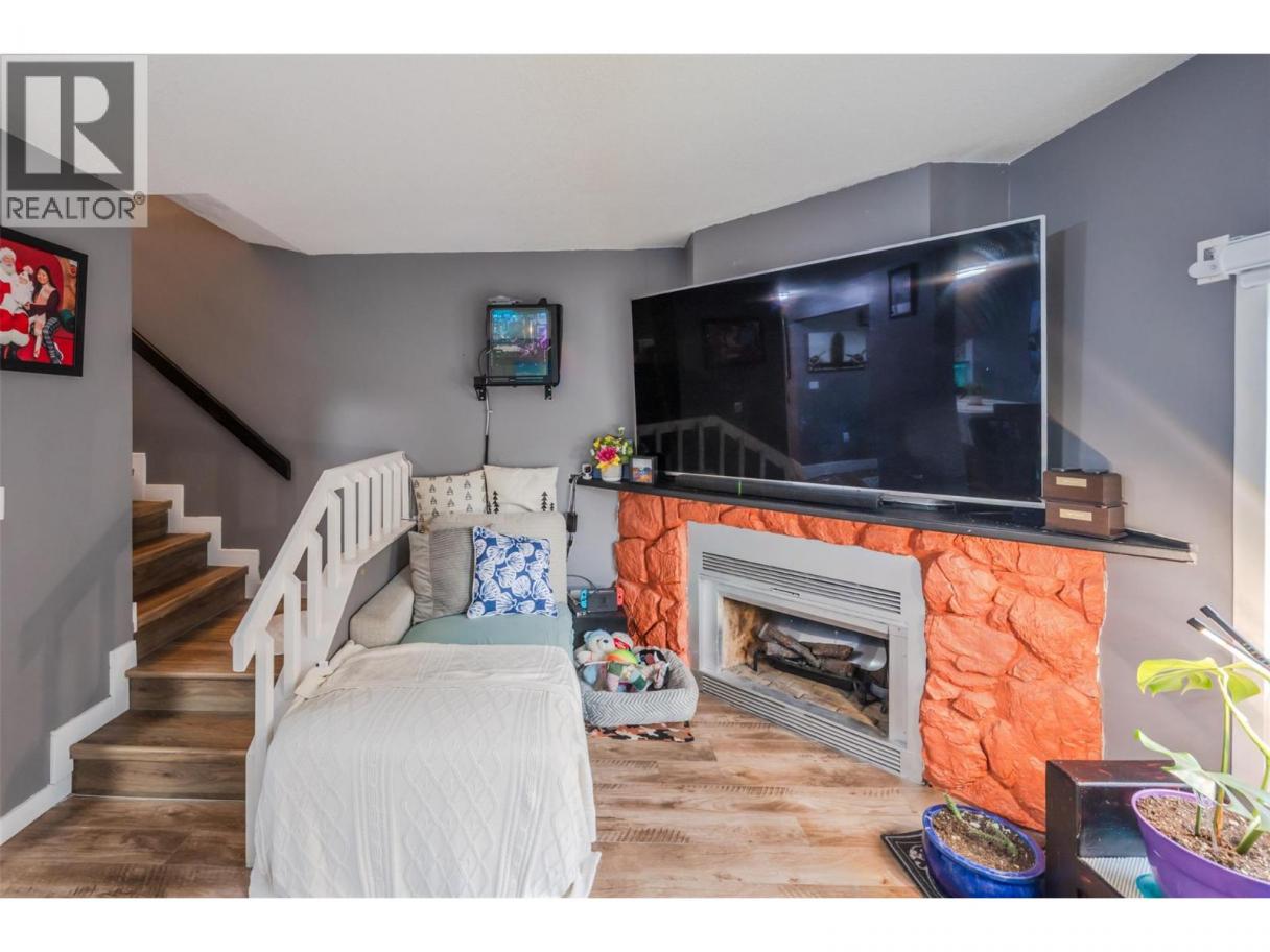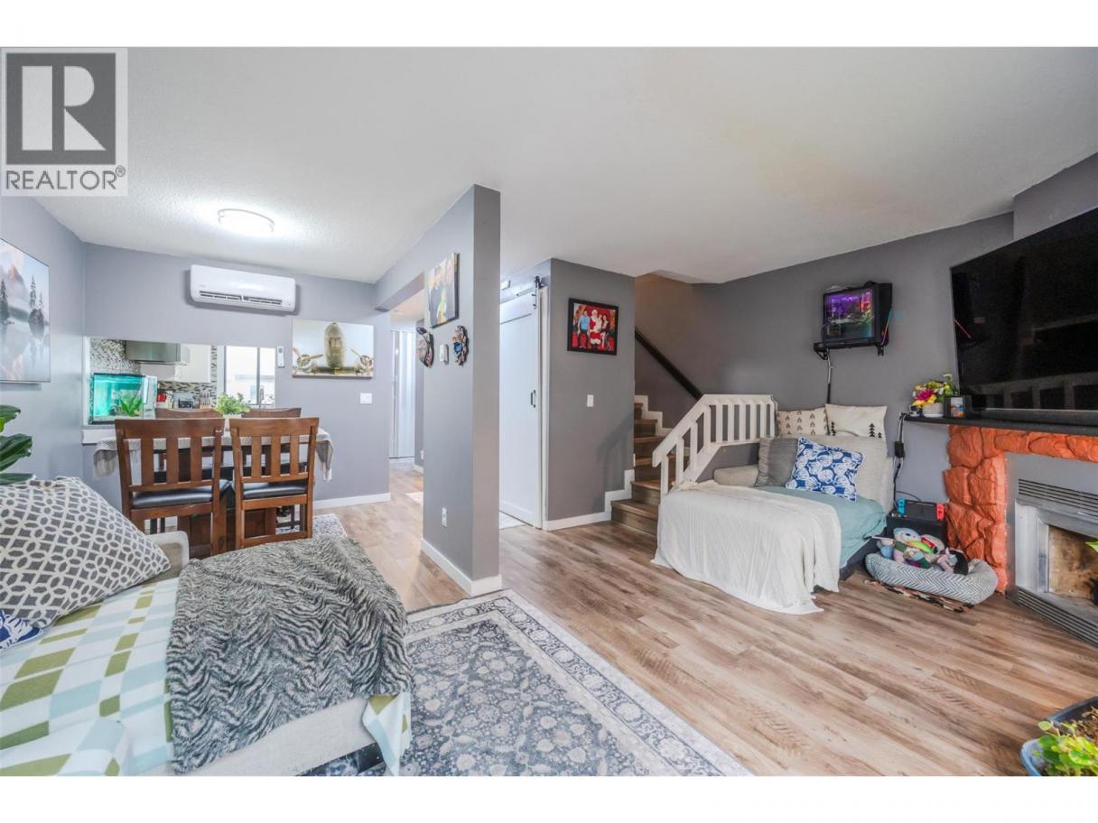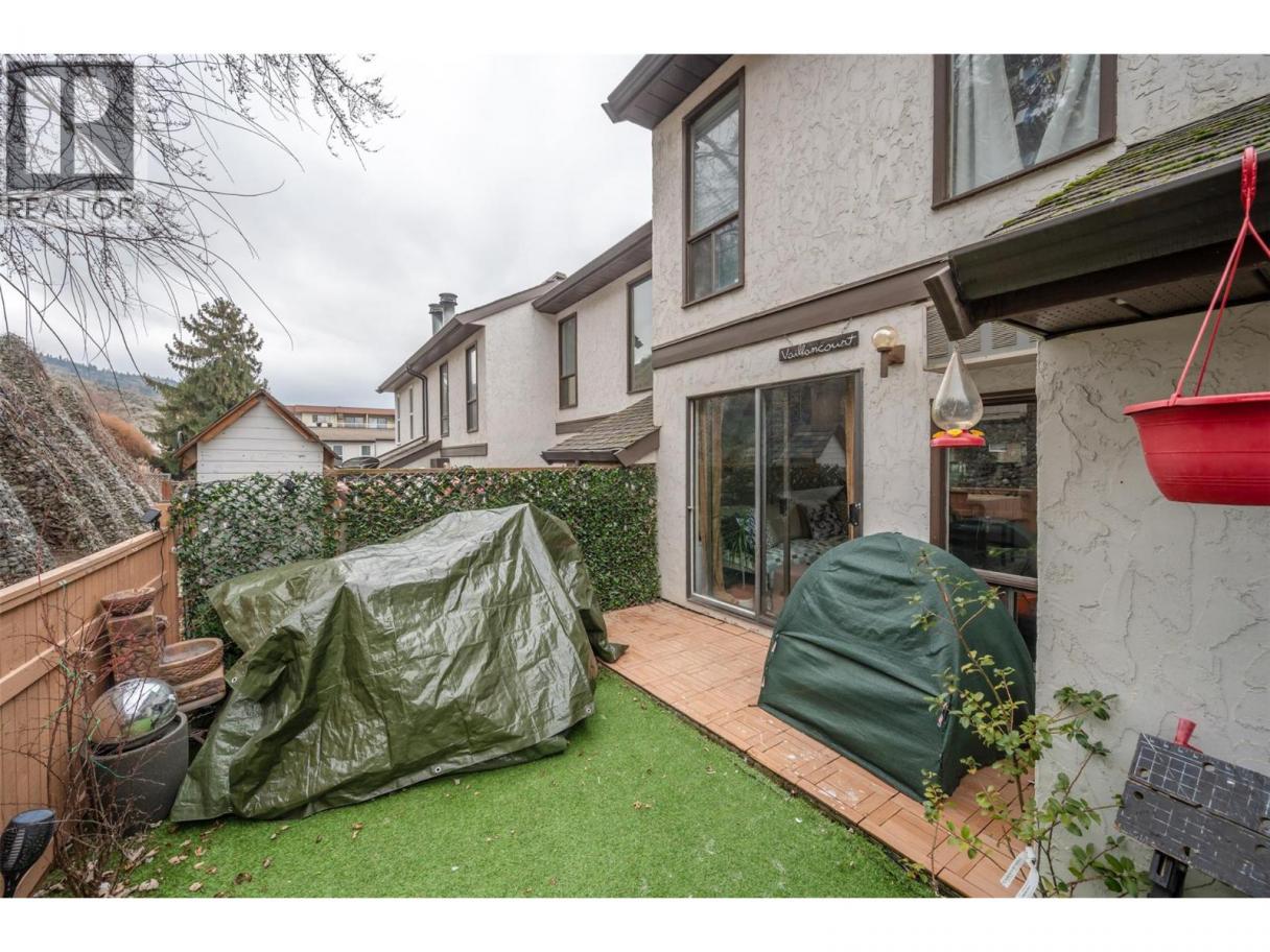Welcome to this charming two-storey townhome featuring a private backyard with patio and storage, perfect for easy outdoor living. The low-maintenance yard and partially remodeled interior make this home move-in ready. The main level offers convenient laundry, a 2-piece bath, and a bright living room with patio doors leading to your fenced outdoor space. The kitchen is equipped with stainless steel appliances, and upstairs you’ll find two comfortable bedrooms plus a den and a 4-piece bath. Located in a family-friendly strata complex that allows pets with restrictions, this home is close to schools, shopping, public transit, and just a few blocks from Skaha Lake and Park—an ideal starter home in a great location. Contact the listing agent to view! (id:6769)