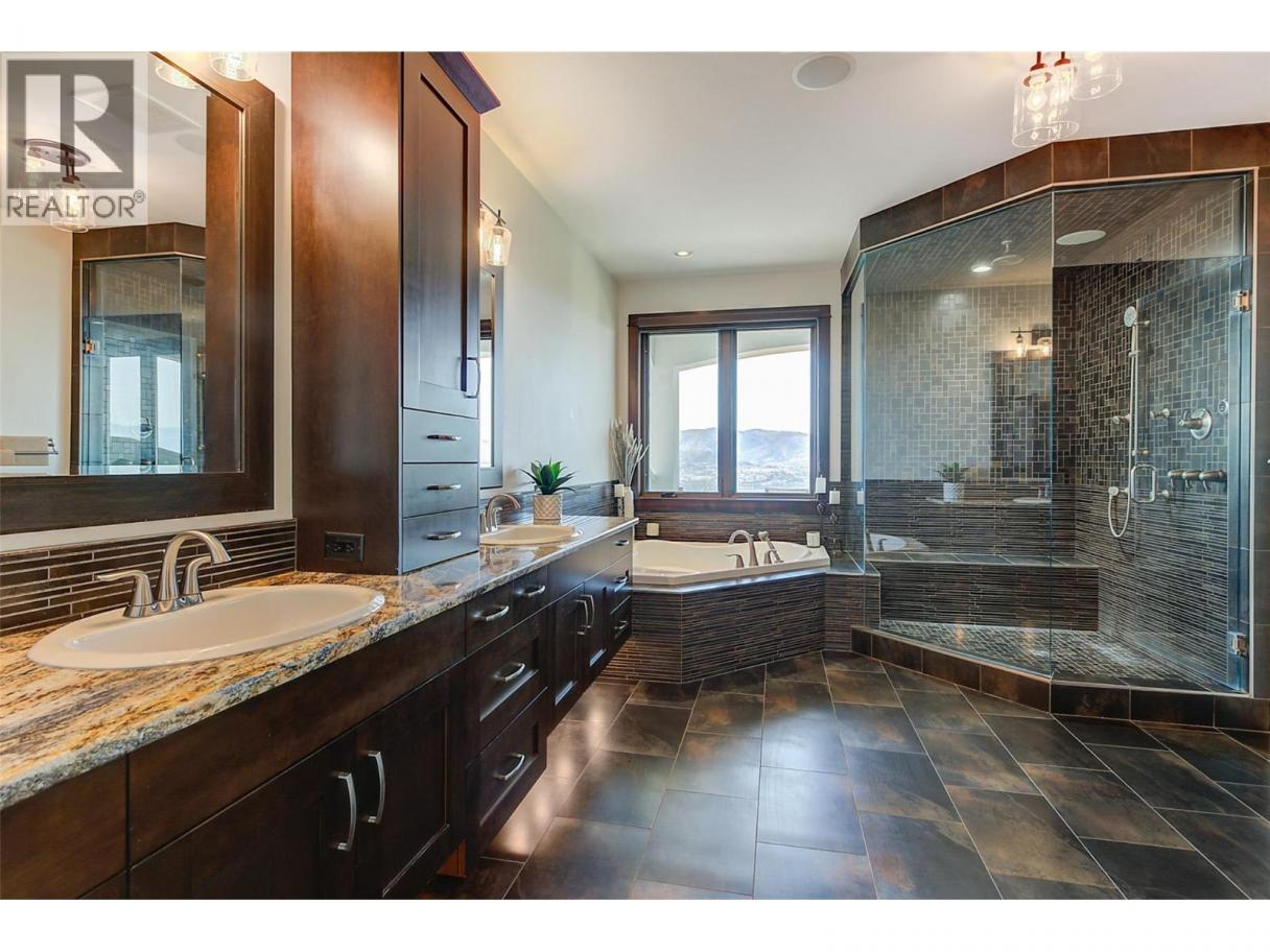 Former TOMMIE AWARD WINNING HOME, 180 degree unobstructed lake views, location, luxury, and low maintenance Synlawn. Extensively updated 5 bed executive home in Upper Mission with expansive lake views, designed to accommodate the active family and those who love to entertain. Over height ceilings, premium Kolbe wood windows, detailed finishes, hardwood floors, custom cabinetry, 2-sided stone fireplace in vaulted great room. Designer Kitchen with Thermador, Miele, and Sub-Zero appliances for those who like to cook and entertain. Generous room sizes, all 5 bedrooms have ensuites or adjacent bathrooms. Large master bedroom suite is situated on its own level for ultimate privacy with large walk in closet, and adjoining spa-like Ensuite, Thermasol Steam Shower, private balcony, and separate heat pump for ultimate comfort. On the lower level you'll find the ""Entertainment centre"", radiant in floor heat, Home Gym, massive stepped media room, king sized recreation room with high ceiling, full Bar, pool table area, access to inground salt water pool with key operated safety cover, and putting green. Control 4 home automation system with programable lighting, and sound system throughout. 3 car heated garage with suspended slab for all the toys, outside RV storage/parking with water, sewer, and power hook ups! New heat pump, furnace, and washer & dryer. Near schools, Mission Village shopping, parks, walking trails. Meas. approx. (id:6769)