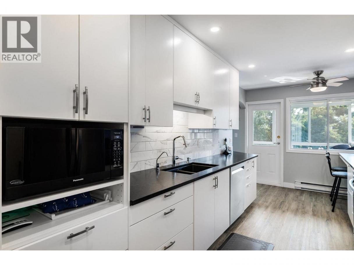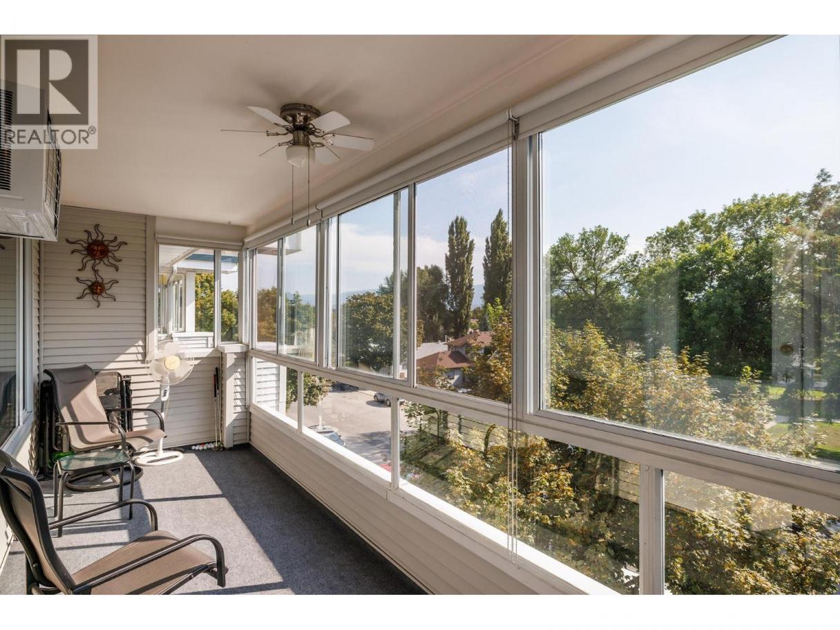 Visit REALTOR website for additional information. Welcome to Shaughnessy Green, beautiful condo complex located in central Kelowna on a quiet street with mature trees and park like setting. This top floor condo was COMPLETELY renovated in 2018, has a 180 degree southern view and shows in absolutely mint condition! You enter this bright condo because of the skylight over the Dining/Living area's! Foyer is tiled for convenience. Laundry room is to your left, including cupboards, shelving and room for a freezer. Living and Dining area's feature fresh laminate flooring and crown moldings. Sun Room is completely enclosed in glass and includes UV blinds and marine grade carpeting for year round usage. Kitchen was redesigned with fresh cabinetry, granite countertops, Pantry and built in features. Primary Bedroom has a Walk-In closet and redesigned Ensuite. Features 2 sinks, granite countertop, walk in shower and hidden storage areas. Ask your hosts to show you! Second Bedroom is HUGE and located on the opposite side of condo for privacy. It includes a Bathroom/Ensuite which is 4 piece and has a clever entrance through the Walk-In closet. Unit includes 1 underground, secured parking and storage unit. Shaughnessy Green includes hot water in your strata fee, a Guest Suite right next door to this unit, clubhouse area with meeting & games, gym, BBQ, car wash bay and garden boxes. Pets allowed with restrictions. (id:6769)