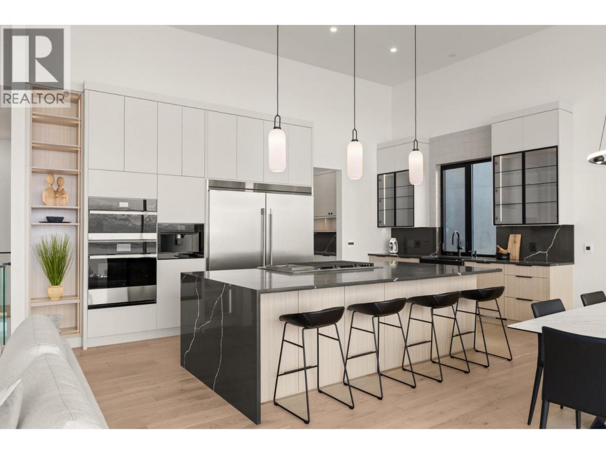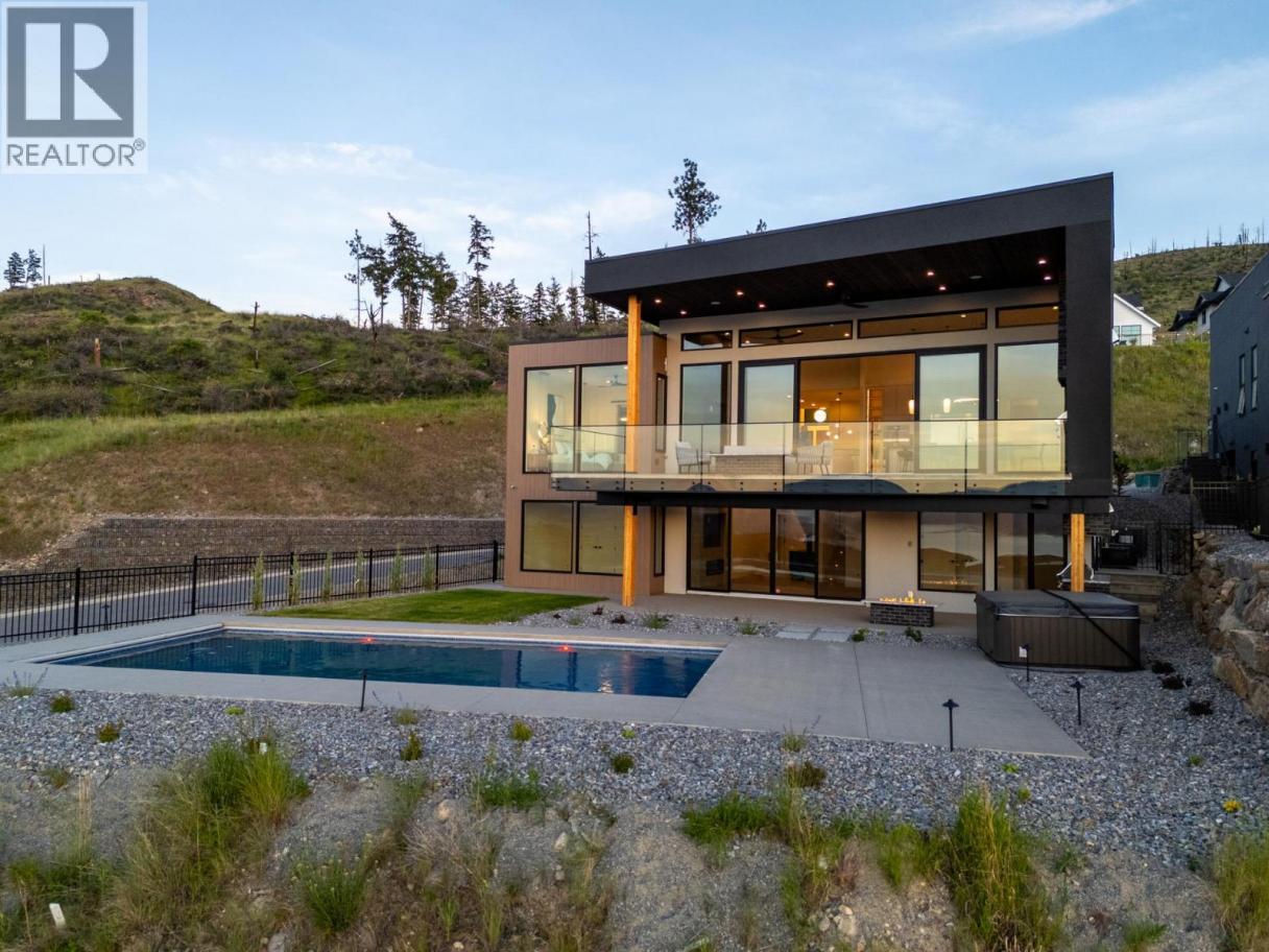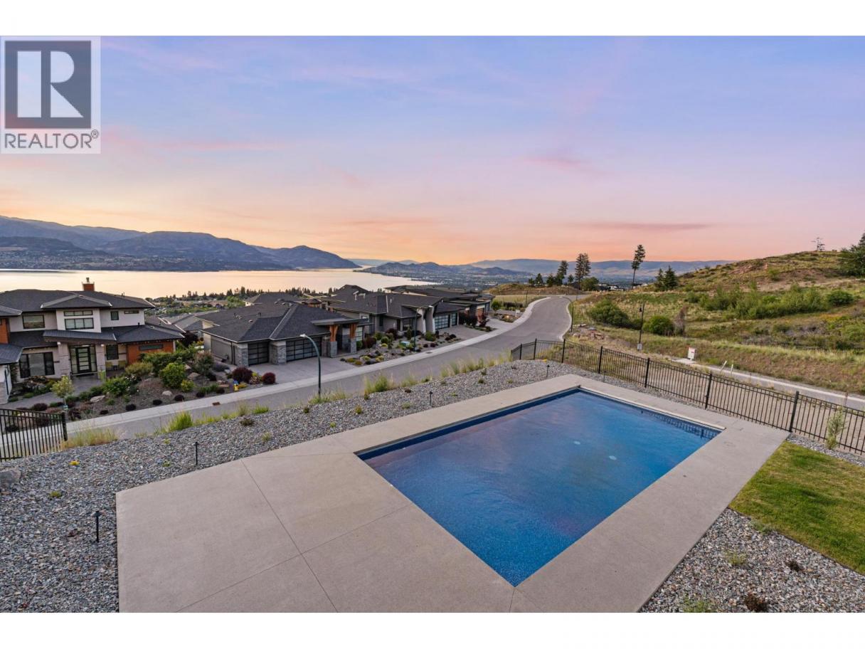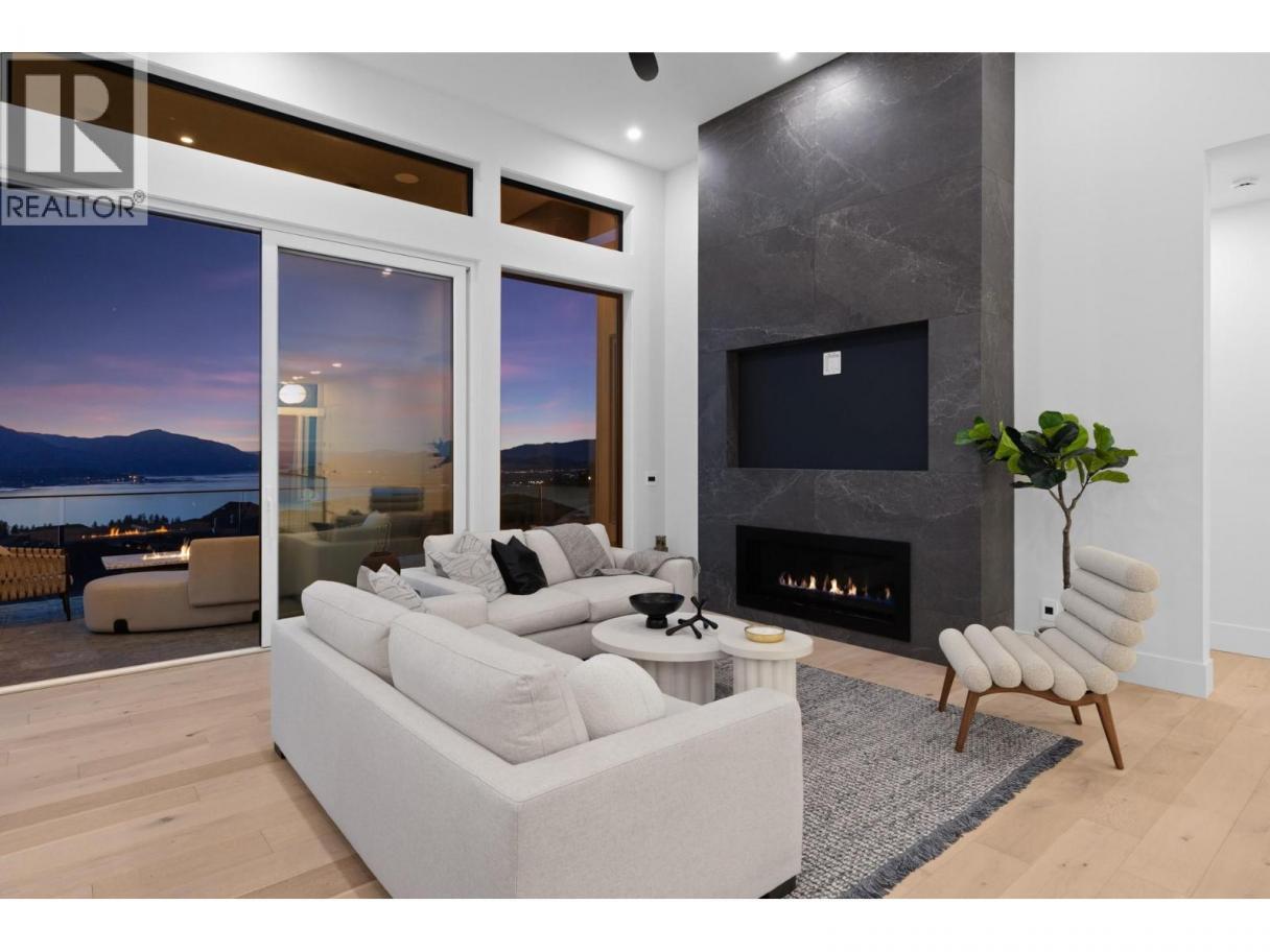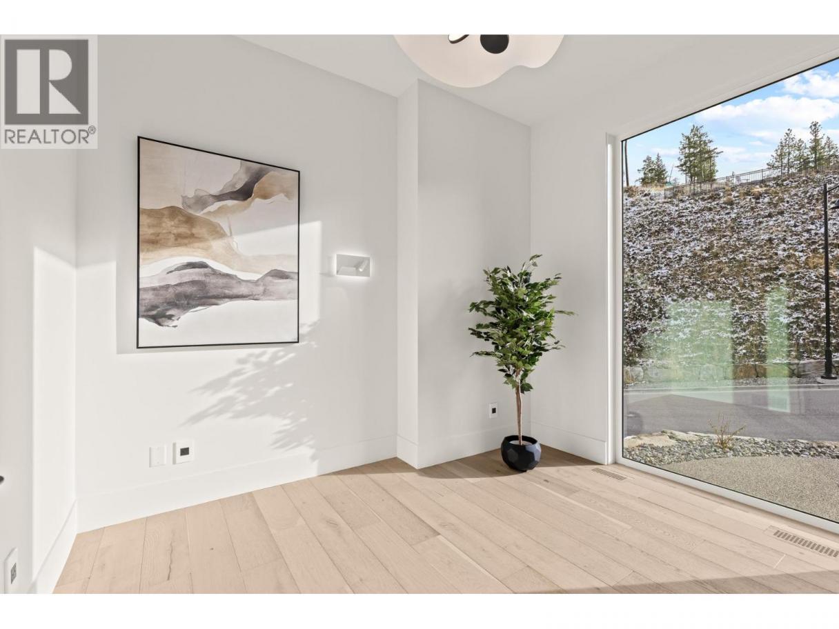 Experience modern Okanagan luxury in this brand-new custom-built walkout rancher, designed to impress with striking architecture, high-end finishings, and breathtaking lake, sunset, and city views. This home seamlessly blends contemporary elegance with functional design, delivering an unmatched indoor-outdoor lifestyle. The open-concept main level is highlighted by floor-to-ceiling sliding doors that expand to a spacious covered patio, complete with built-in BBQ, fire table, and panoramic views. The chef’s kitchen is a showstopper with premium Jennair appliances including a 6-burner gas cooktop, built-in oven, full-size fridge/freezer, double dishwashers, and built-in coffee station. A walk-through pantry connects directly to the laundry room and heated garage for everyday convenience. The luxurious primary bedroom features spa-inspired ensuite with fluted freestanding tub, steam shower, and large walk-in closet. A private office and a designer guest powder room with preserved moss wall and onyx sink complete the main level. Downstairs is designed for entertaining, opening directly to your backyard oasis with 16x32 pool (with auto cover), hot tub, and a second built-in BBQ area. Inside, enjoy the wet bar, theater room, gym with sports flooring, and ample storage. The legal 1-bedroom suite (option for a 2nd bdrm) offers flexibility for guests or rental income. Oversized heated garage features epoxy floors, an 11-foot door for RV or boat access, and roughed-in A/C. (id:6769)