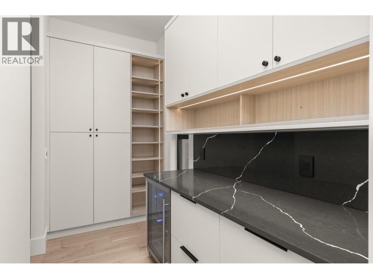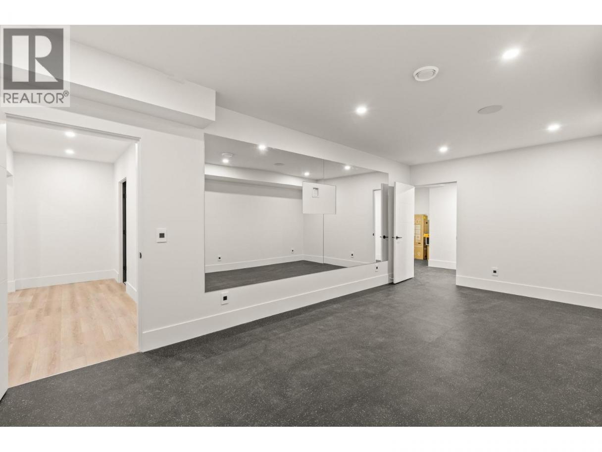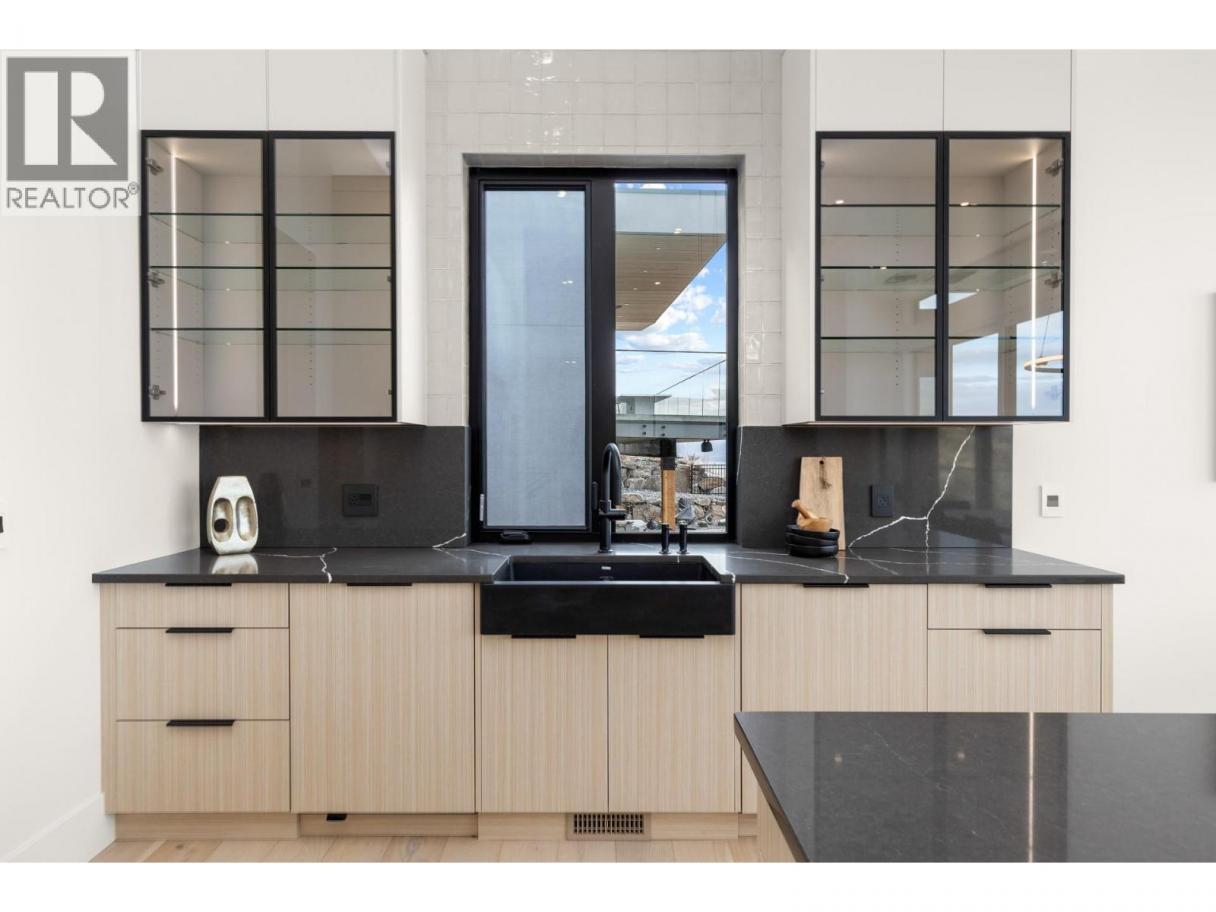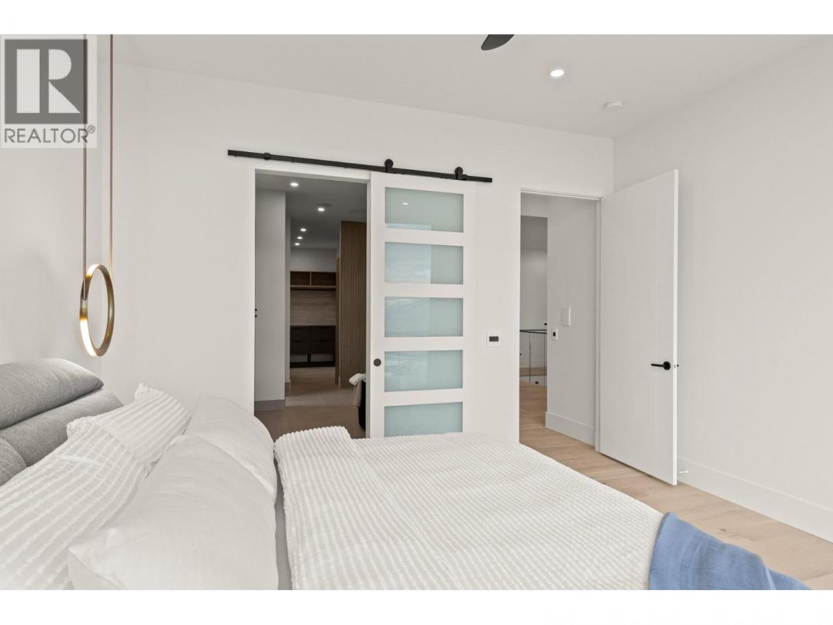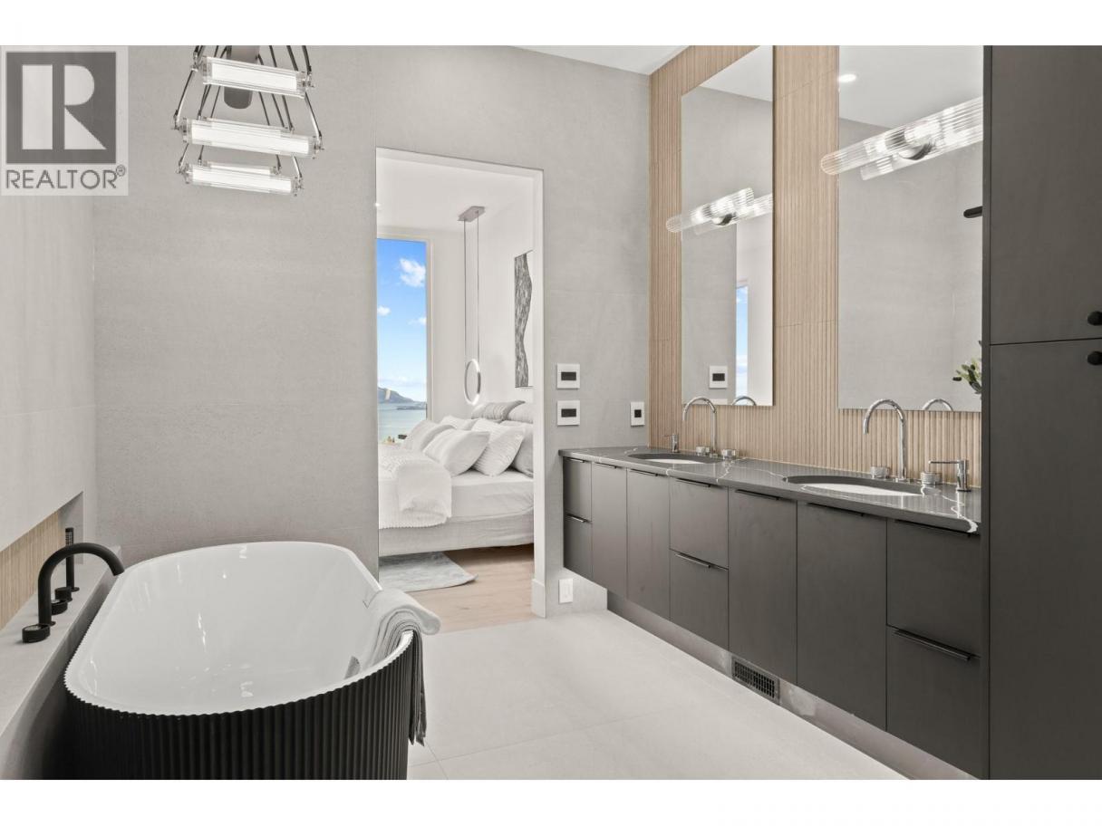 Experience modern Okanagan luxury in this brand-new custom-built walkout rancher, designed to impress with striking architecture, high-end finishings, and breathtaking lake, sunset, and city views. This home seamlessly blends contemporary elegance with functional design, delivering an unmatched indoor-outdoor lifestyle. The open-concept main level is highlighted by floor-to-ceiling sliding doors that expand to a spacious covered patio, complete with built-in BBQ, fire table, and panoramic views. The chef’s kitchen is a showstopper with premium Jennair appliances including a 6-burner gas cooktop, built-in oven, full-size fridge/freezer, double dishwashers, and built-in coffee station. A walk-through pantry connects directly to the laundry room and heated garage for everyday convenience. The luxurious primary bedroom features spa-inspired ensuite with fluted freestanding tub, steam shower, and large walk-in closet. A private office and a designer guest powder room with preserved moss wall and onyx sink complete the main level. Downstairs is designed for entertaining, opening directly to your backyard oasis with 16x32 pool (with auto cover), hot tub, and a second built-in BBQ area. Inside, enjoy the wet bar, theater room, gym with sports flooring, and ample storage. The legal 1-bedroom suite (option for a 2nd bdrm) offers flexibility for guests or rental income. Oversized heated garage features epoxy floors, an 11-foot door for RV or boat access, and roughed-in A/C. (id:6769)