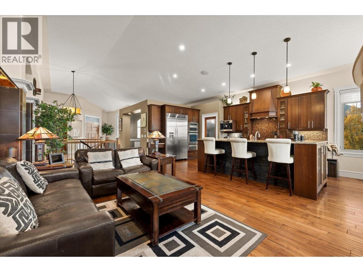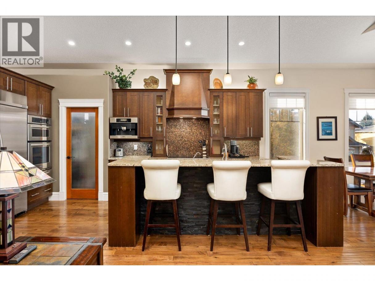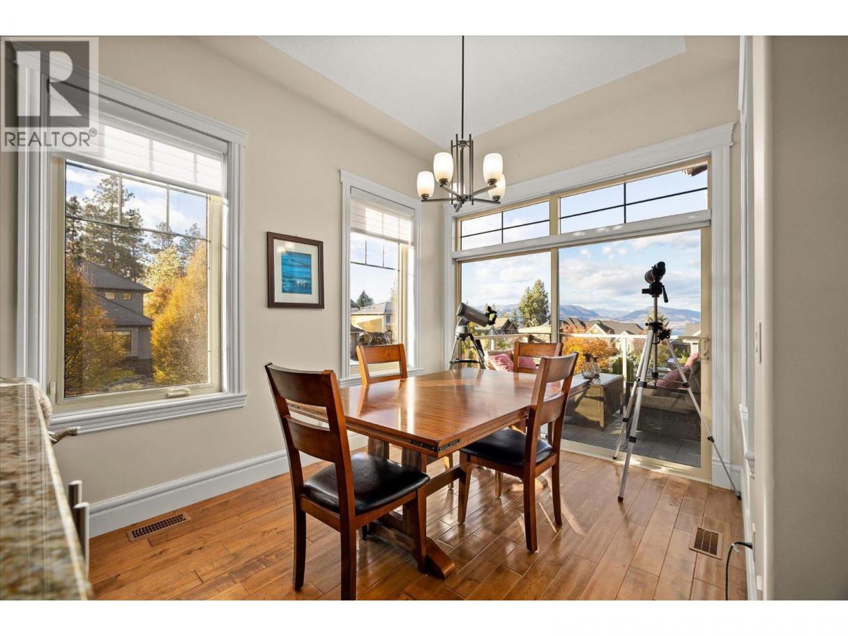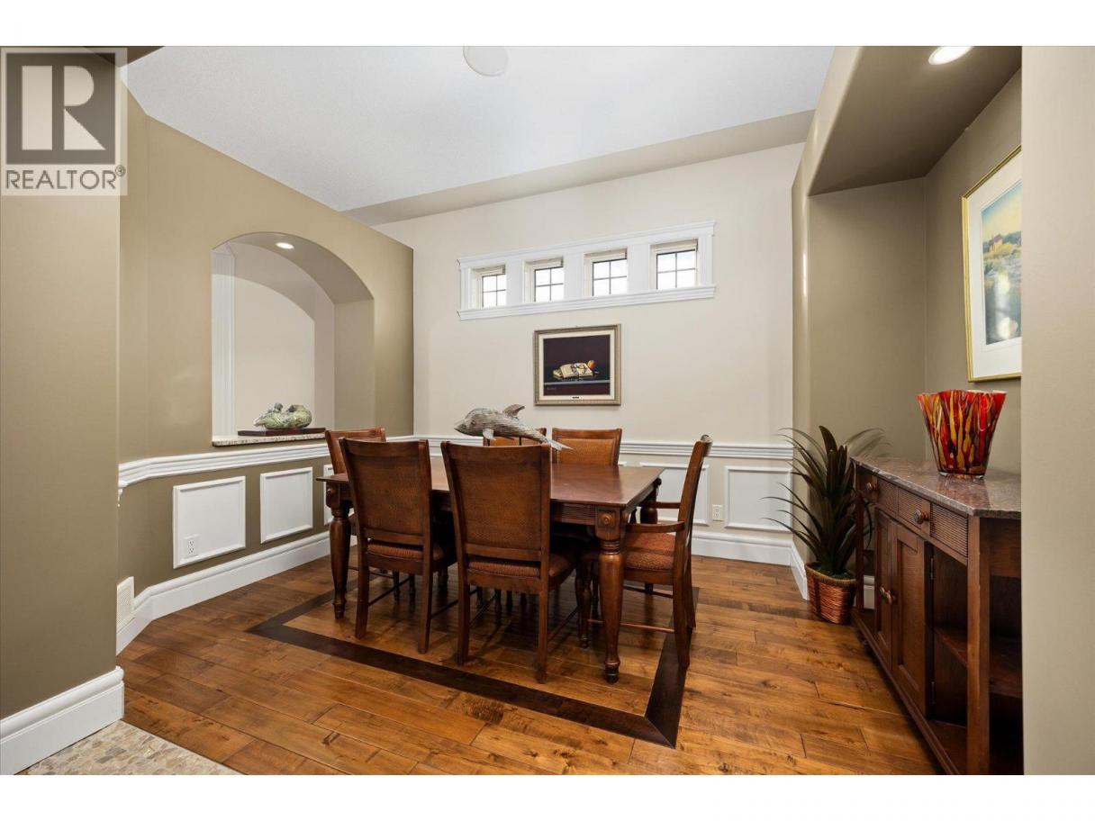 Located in the coveted Quarry community, this beautifully crafted home offers timeless design, exceptional light, and outstanding livability. Soaring ceilings, expansive windows, and an open-concept main level create a bright, welcoming atmosphere, with an elegantly defined formal dining area that remains visually connected. The kitchen and great room flow seamlessly to a spacious deck, ideal for entertaining or relaxing in peaceful surroundings. The main-level primary suite features a spa-inspired ensuite with heated tile floors, jacuzzi tub, walk-in shower, and a generous walk-in closet. The lower level includes three additional bedrooms, a large family room with wet bar, and flexible space suitable for a home office, fitness room, or storage. A built-in sound system with over 20 speakers enhances both indoor and outdoor living. Enjoy a fully fenced backyard, luxury hot tub, and heated garage—perfect for a workshop or hobbies. Conveniently located near Canyon Falls Middle School and The Ponds amenities, this home is an excellent fit for families or downsizers seeking quality and comfort in a premier Kelowna neighbourhood. (id:6769)