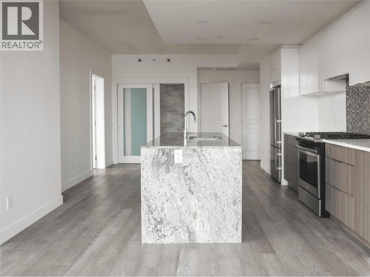 A premier corner location on Sunset Drive with southwest exposure that fills the home with natural light from morning onward. This 2 bedroom plus den, 2.5 bathroom residence showcases sweeping views of downtown, the Water Street entertainment district, local festivals, surrounding mountains, and expansive 180 degree lakeviews including the Bennett Bridge. Situated on the 15th floor, the spacious 180+ sq ft wraparound balcony offers multiple vantage points and ample room for a sectional and gas BBQ, ideal for taking in parasailers, seaplanes, passing boats, concerts at Prospera Place, and even the ospreys nesting at the nearby bird sanctuary. Inside, the home is finished with an oversized island featuring waterfall granite countertops, complementary cabinetry with quartz surfaces, and wood laminate flooring throughout. Floor to ceiling windows in the main living areas ensure the views are always front and center. Additional highlights include two secure heated parking stalls and a storage locker. Residents enjoy access to resort-style amenities including a hot and cold plunge pool, fitness centre, shared kitchen and lounge, BBQ area, meeting room, and bike storage. Pet-friendly living allows 2 dogs, 2 cats, or one of each, with no size restrictions. (id:6769)