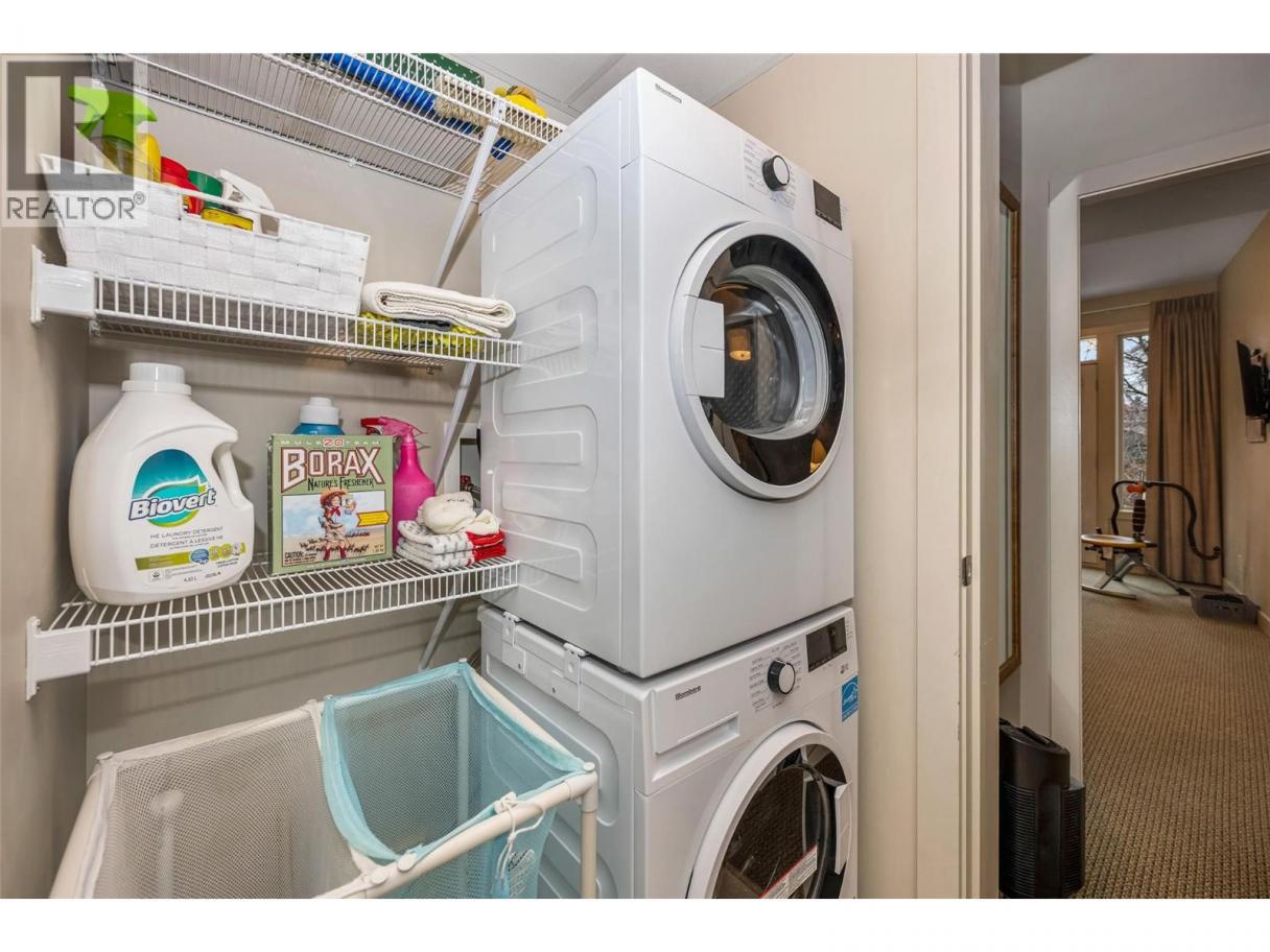 Lifestyle or Your Okanagan Getaway Awaits! Enjoy the ease of condo living combined with a resort-style setting at the Strand Lakeside Resort! This bright 2-bedroom, 2-bathroom residence features high ceilings, a functional open-concept layout, warm inviting colours, an in-unit laundry - designed for comfort and simplicity. The second-floor location provides privacy and easy access, while the spacious balcony offers calming views of the lake, wharf, and mountains. Spend your days walking the beach, relaxing by the pool, or enjoying the hot tub year-around. With secured underground parking, storage, and close proximity to shopping, golf, tennis, pickleball, this home offers a lock and leave lifestyle in one of the Okanagan's most desirable waterfront communities. (id:6769)