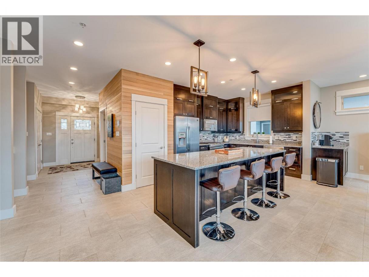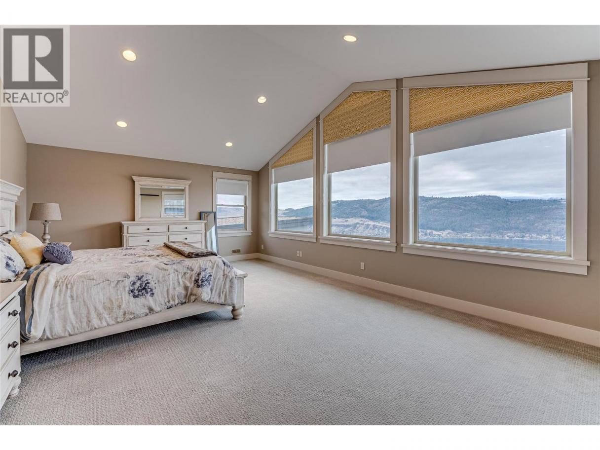 Unobstructed views. Architectural design. Elevated Okanagan living. This architect-designed residence showcases exceptional open-concept living, dining, and kitchen spaces, all oriented to capture sweeping, unobstructed panoramic views of Okanagan Lake, including the sparkling evening lights of Sparkling Hill. Expansive windows and a generous viewing sundeck create seamless indoor-outdoor living, ideal for entertaining or quiet relaxation above the lake. Offering approximately 3,900 sq.ft., this impressive home features 3 primary-style bedrooms plus a den and 3.5 bathrooms. In-floor heating and surround sound wiring enhance comfort and modern functionality. The private second-level primary retreat delivers a luxurious escape with a spa-inspired ensuite and walk-in closet. The fully finished walk-out basement provides a large media room and two additional primary-style suites, ideal for guests or multi-generational living, with direct patio access and continued lake views. (id:6769)