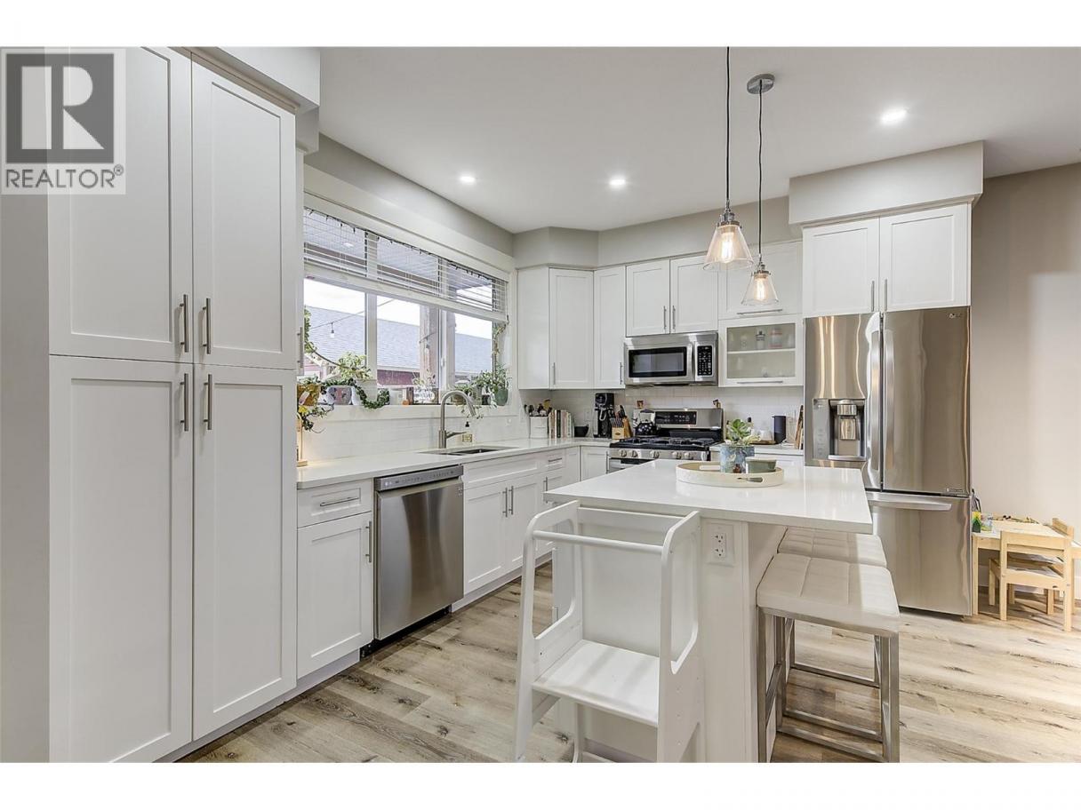 Experience relaxed, connected Kelowna living in this beautifully maintained townhome crafted by Maraine Construction. Thoughtfully designed with a warm, modern aesthetic, the home offers an inviting atmosphere from the moment you step inside. Sunlit living spaces create an easy flow for daily life—perfect for quiet mornings, relaxed evenings, or hosting friends in comfort. The kitchen’s quartz surfaces, stainless steel appliances, and gas range set the stage for effortless cooking and gathering. Upstairs, two bright bedrooms—primary with its own ensuite—provide privacy and comfort for homeowners, guests, or renters. A rare advantage in this category, the generous yard offers room to unwind outdoors, garden, or simply enjoy your own slice of city space. With covered garage parking, extra storage (including above-garage storage accessed by pull-down stairs), and efficient heating and cooling, the home delivers convenience without compromise. Situated near transit, schools, and essential amenities—and within a five-minute walk to three different parks with playgrounds—the location unlocks a genuinely walkable lifestyle. Bike or stroll to Pandosy Village or Downtown with ease, supported by direct access to the Ethel biking corridor. Offering style, comfort, and long-term value, this thoughtfully kept two-story townhome is an appealing alternative to condo living—ideal for a first home, investment, or those seeking a vibrant urban-adjacent community. (id:6769)