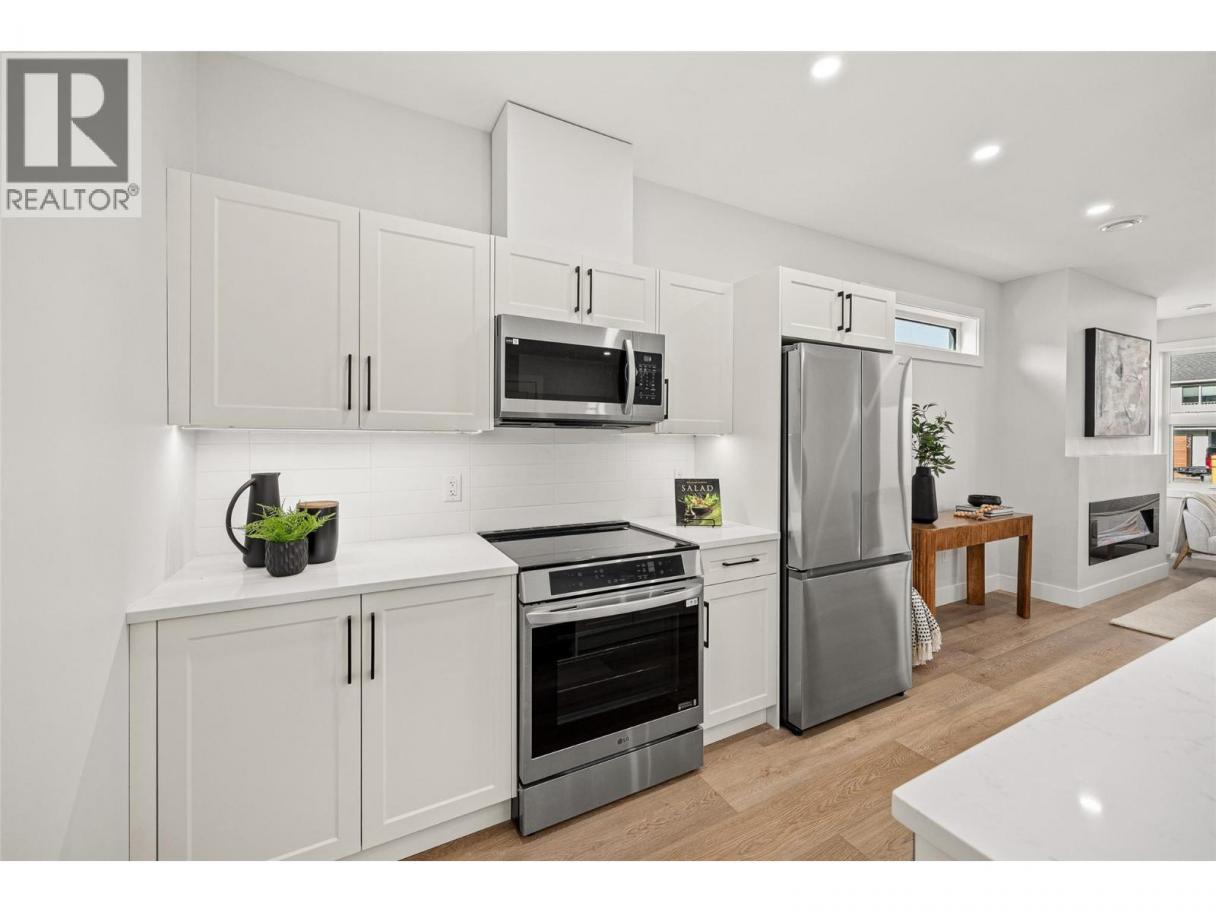 Be the first to own in this brand-new 2026 boutique fourplex! Showcasing 3 bed/3 bath townhomes, the units are tucked into a peaceful pocket of Kelowna’s downtown core - just outside the bustle, yet steps from everything you love. Designed with families and urban professionals in mind, each home features all three bedrooms conveniently located on the upper level while the main floor offers an open-concept living layout complete with a cozy electric fireplace and stainless steel appliances throughout. Outdoor living is a standout here with two distinct outdoor areas. Enjoy over 500 sqft of private rooftop patio space, divided into two zones with astroturf and concrete tile with natural gas BBQ hookups and a soon-to-be fully fenced, irrigated, low-maintenance yard. Each residence includes direct access to its own separate parking stall in a detached garage, plus the peace of mind of a brand-new build with 2-5-10 home warranty, no pet restrictions, and a self-managed strata. Located in desirable Kelowna North, you’re moments from Okanagan Lake, beaches, parks, Prospera Place, the North End Brewery District, and more - with Kelowna General Hospital, Orchard Park, and the Landmark District just a short drive away. Interested in learning more about this stunning development? Contact our team today to find out more and book your private showing today! (id:6769)