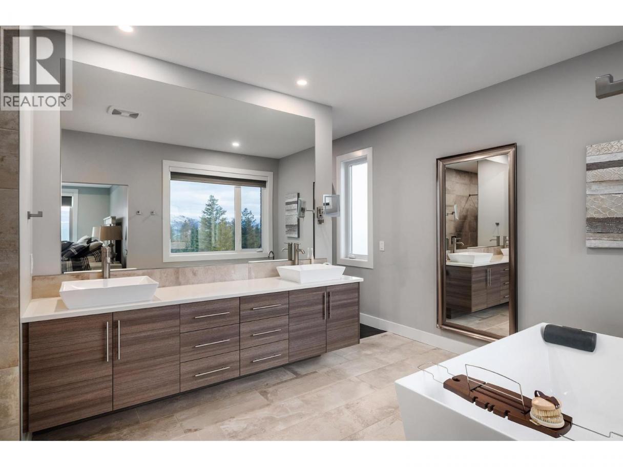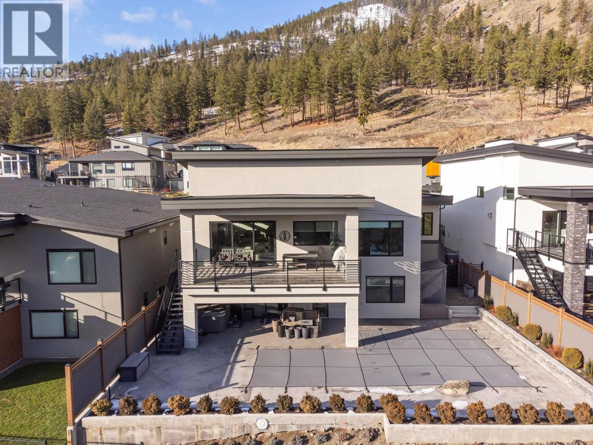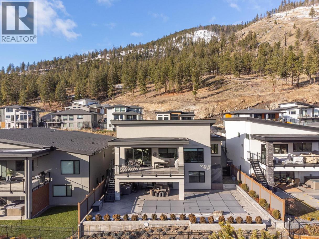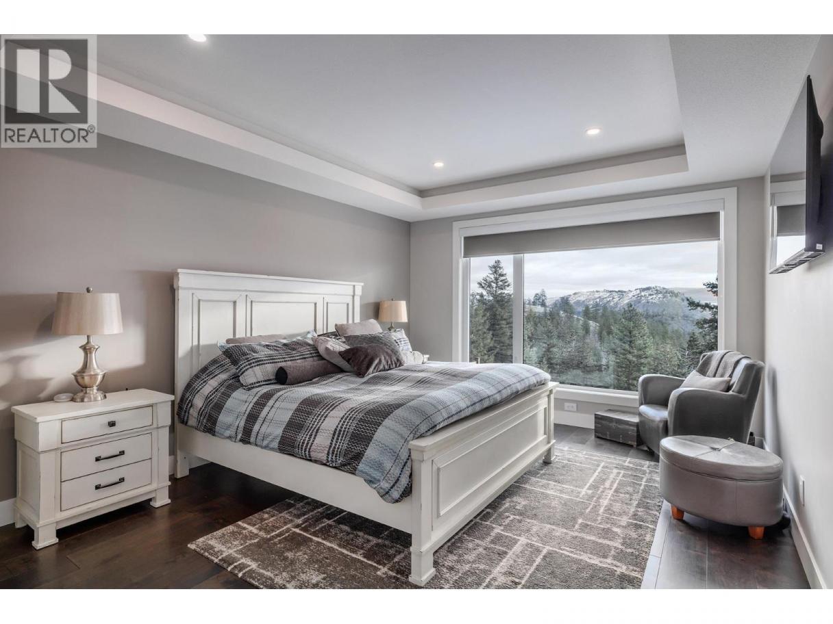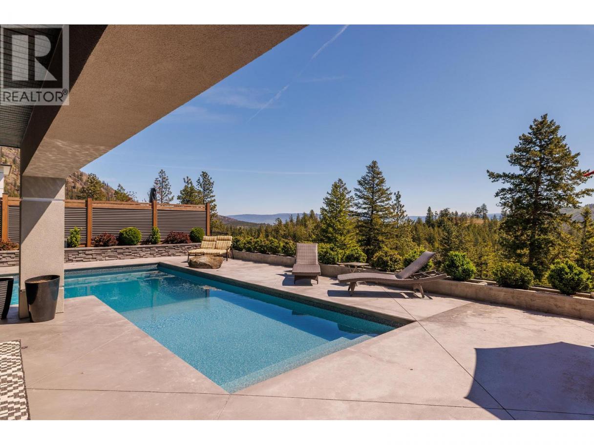 Luxurious and elegant custom build home (2020) featuring a stunning 4,400 sf home with impressive mountain, lake, and valley views. This 4-bedroom, 4-bathroom showstopper boasts high ceilings, large windows, a floor-to-ceiling gas fireplace. The chef's kitchen includes high-end appliances, an induction cooktop and quartz countertops and is complemented by a butler's pantry with a fridge/freezer. The open concept main floor opens to a large deck and offers the ideal indoor/outdoor living experience. The primary bedroom is conveniently located on the main floor and boasts a spacious ensuite with large shower, heated floor and an impressive walk-in closet complete with laundry chute. On the lower floor there are 3 bedrooms, 2 of which share a Jack and Jill washroom. An additional washroom provides access to the lower deck and pool. Added features include a media room, family room, gym. Enjoy the convenience of a triple garage with an EV plug and hot water tap, as well as smart home features, security system, underground sprinklers and radiant heat in the basement. The outdoor oasis includes an in-ground pool with a diving tank and dive rock, hot tub, and large decks for entertainment. This peaceful cul-de-sac has golf, fishing, walking trails, and ATV trails all at your doorstep, don't miss it! (id:6769)