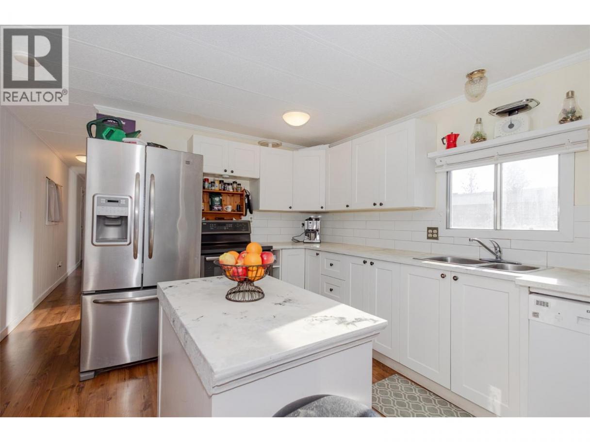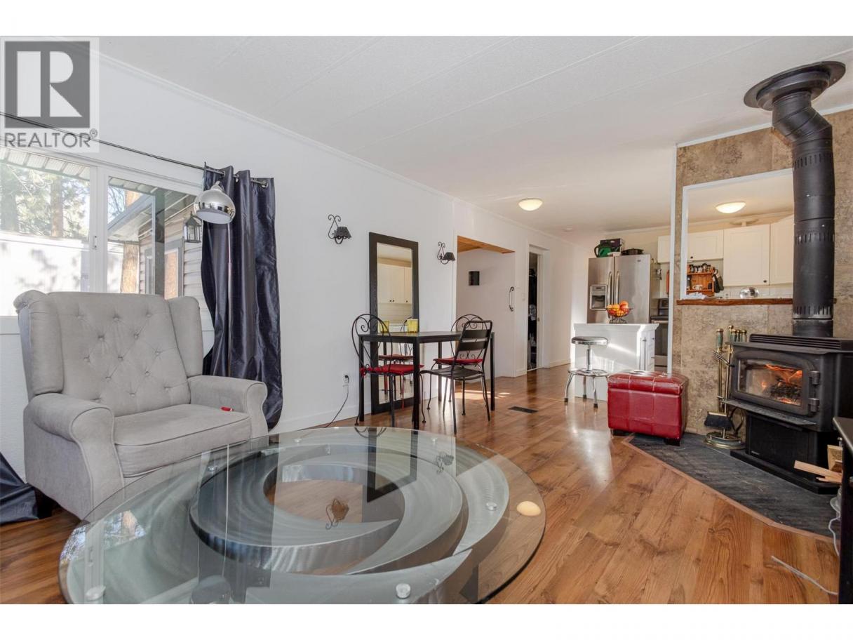 This beautifully maintained 3 bedroom, 2 bathroom home offers the perfect blend of comfort, functionality, and outdoor living — all set against scenic mountain views and exceptional privacy. Step inside to an inviting layout featuring a cozy living space centered around a brand new WET-certified wood-burning stove, creating warmth and ambiance throughout the cooler months. The kitchen has been thoughtfully upgraded with a brand new GE Profile 6-burner convection oven and a stainless steel GE refrigerator, offering both performance and style for those who love to cook and entertain. Major updates provide peace of mind, including a 6-year-old roof and hot water tank. Where this property truly shines is outdoors. The private yard has been transformed into a functional oasis complete with: A covered deck with a brand new 12 ft gazebo Raised garden beds Two storage sheds — one equipped with 100 amp power, ideal for a workshop, hobby space, or additional storage No rear neighbours, backing onto a quiet gravel area with gated access Mature trees adding natural privacy and character Westview Village remains one of West Kelowna’s most sought-after manufactured home communities due to its unbeatable central location — just minutes to schools, transit, golf, restaurants, shopping, beaches, and Okanagan wineries. (id:6769)