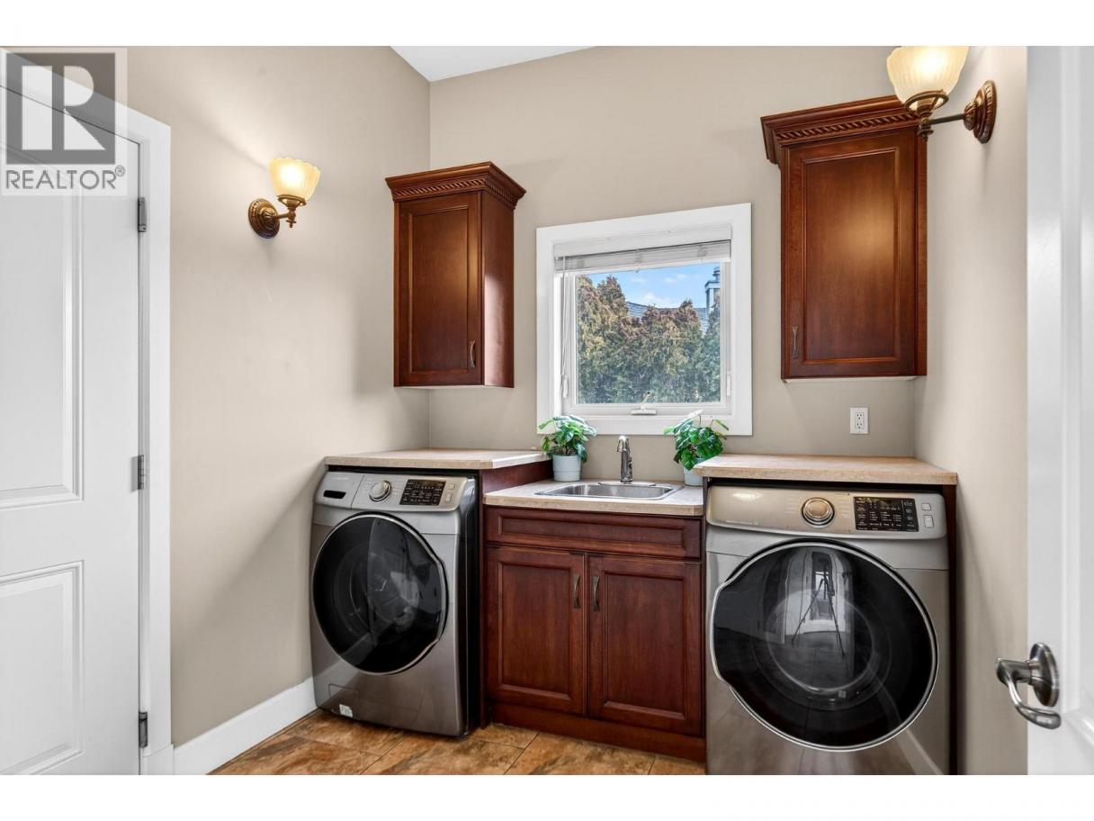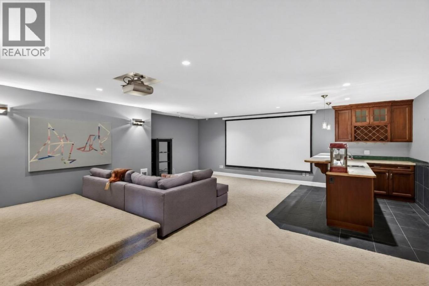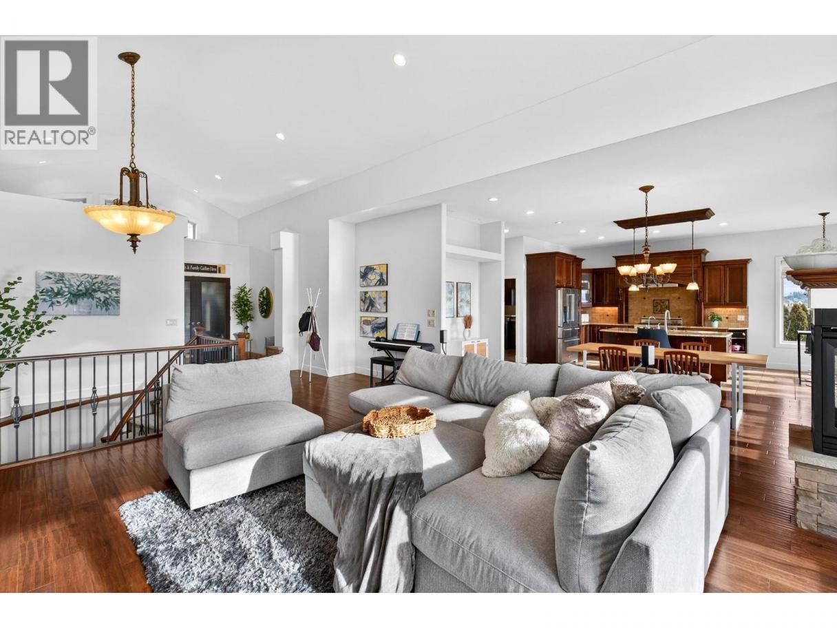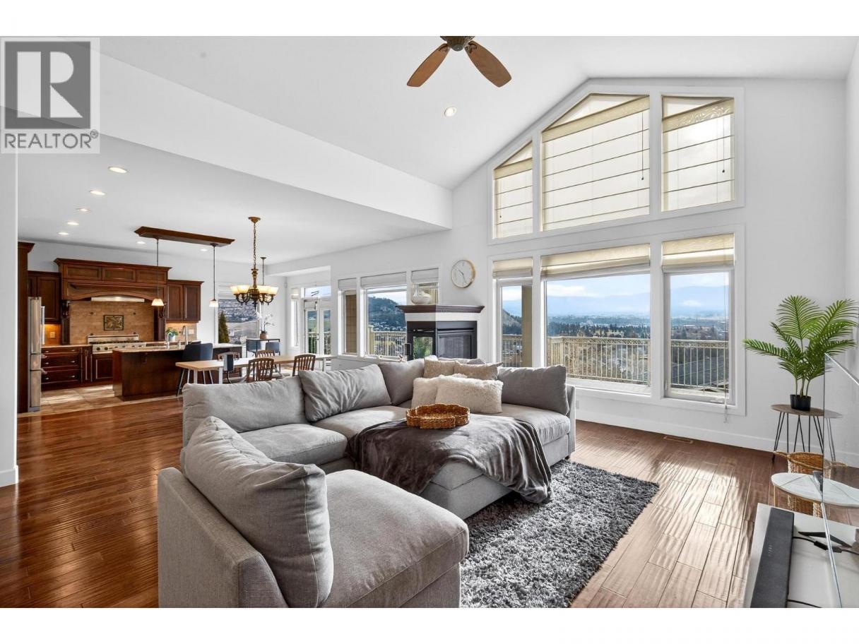 This stunning custom-built home in the Glenmore area offers the ultimate in luxury living and investment potential. Featuring 6 bedrooms, 5 bathrooms, and over 5,800 sq ft of meticulously designed living space with 2 separate suites, this property is perfect for multi-generational living or income generation. The open-concept main floor features soaring 18-foot vaulted ceilings and walls of windows that flood the space with natural light while showcasing unobstructed panoramic views of the lake, mountains, and city. The gourmet kitchen is a chef's dream with stainless steel appliances including a 6-burner gas range, massive island with granite countertops, and elegant cherrywood cabinetry. Entertain in style in the dining and living areas featuring a cozy gas fireplace, or step out onto the massive 40-foot deck to soak up the sun and savor the views. The oversized primary bedroom features a walk-in closet and a spa-like 5-piece ensuite with heated floors. In the basement, discover a full media room with wet bar, spacious family room, wine cellar, and ample additional storage. The lower level includes two separate suites, each with independent entrance and parking, a fully contained 2-bedroom suite in one wing and a 1-bedroom in-law suite in the other. Additional highlights include parking for 4+ vehicles plus RV/boat storage, steps to Knox Mountain hiking and biking trails, less than 5 minutes to downtown Kelowna, and close proximity to shops and restaurants. (id:6769)